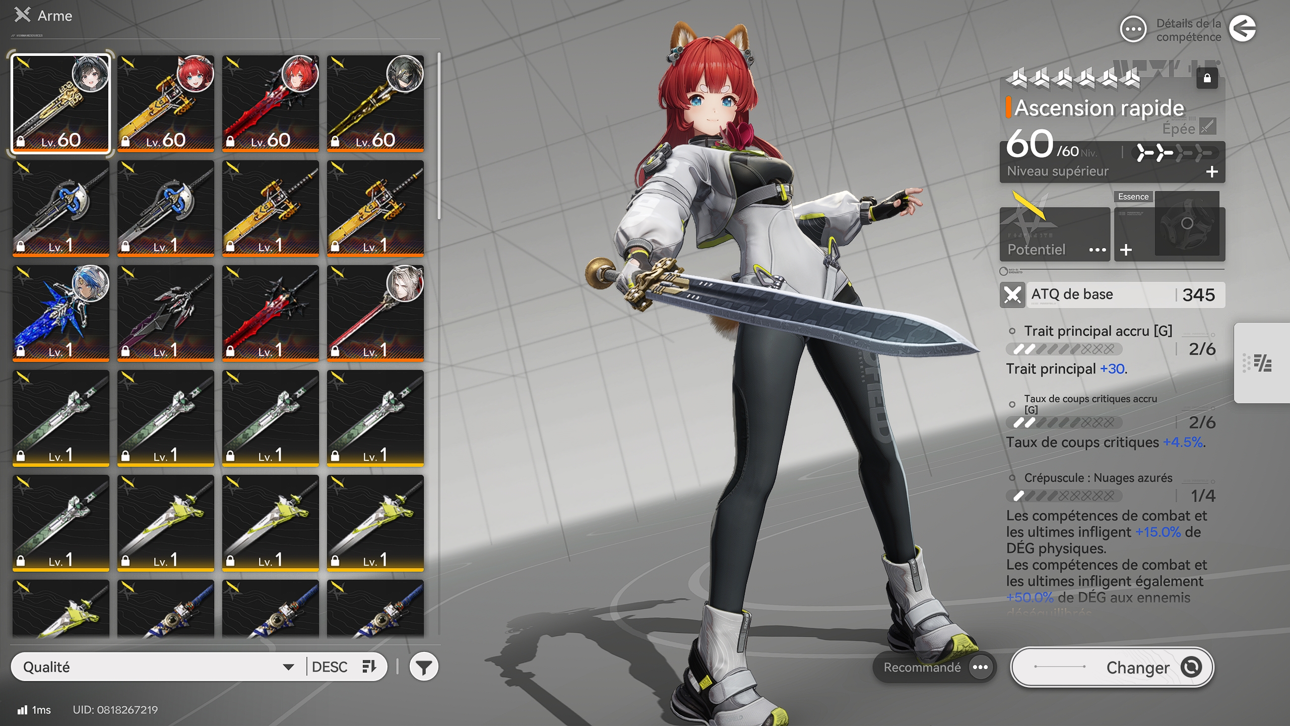 Concernant l’arme d’Akekuri, bien évidemment, vous devez lui équiper “Ascension rapide” qui est la meilleure arme que vous pouvez avoir pour elle. En revanche, au cas où vous n’auriez pas eu assez de chance, sachez qu’une autre arme peut faire l’affaire :