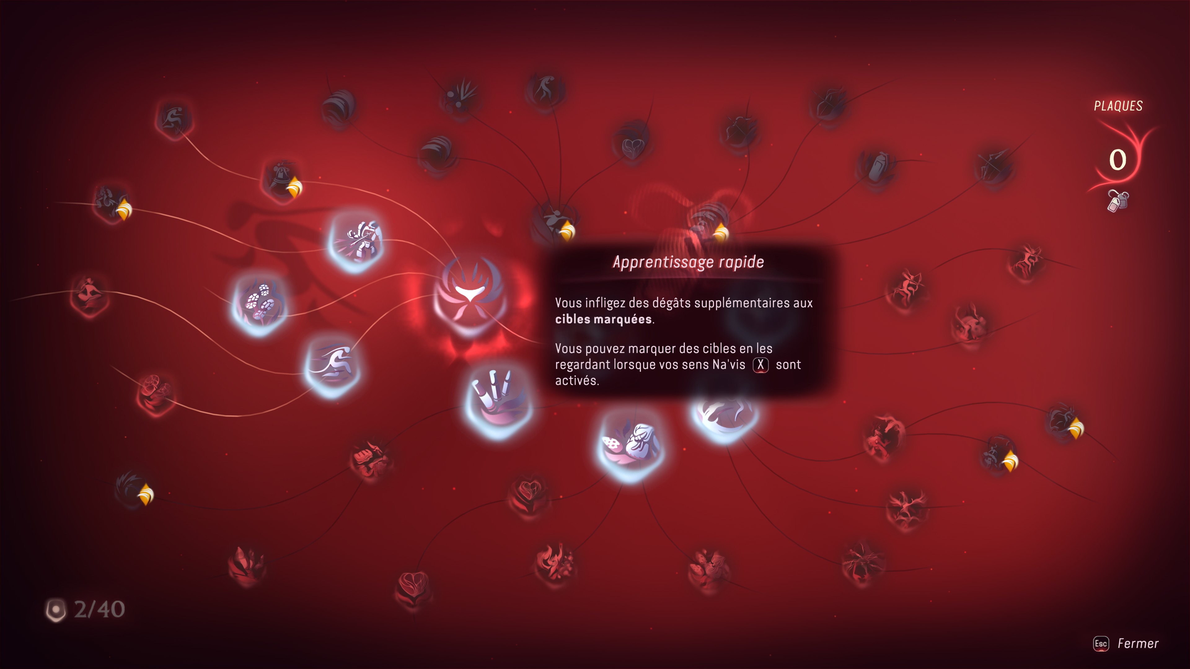 So’Lek aura également accès à son propre camp. Ici rien de transcendant, dans la mesure où vous pourrez changer le cycle jour/nuit si besoin, méditer pour récupérer de la santé, voire confectionner des plats qui vous octroieront au choix des bonus temporaires, ou de la santé. Il est aussi possible de voyager rapidement dans ce camp ou dans d’autres, avec assez peu d’interactions et les mêmes éléments que dans le camp de notre Héros. Tout y est très générique et peu intéressant au même titre que l’arbre à compétences de notre protagoniste. Celui-ci, très basique, remplace les points de compétences par des plaques à récolter ou à glaner en terminant des quêtes, afin de déverrouiller de nouvelles compétences pour l’infiltration ou le sens du guerrier de So’Lek. Tout ceci n’est pas inventif, au même titre que son monde ouvert, moins organique et vivant que le jeu de base. Des concessions ont été faites un peu trop à l’extrême sur cet aspect, et la chasse peut être finalement aisément mise de côté. Dommage, cette mécanique était mieux mise en avant sur le jeu de base.