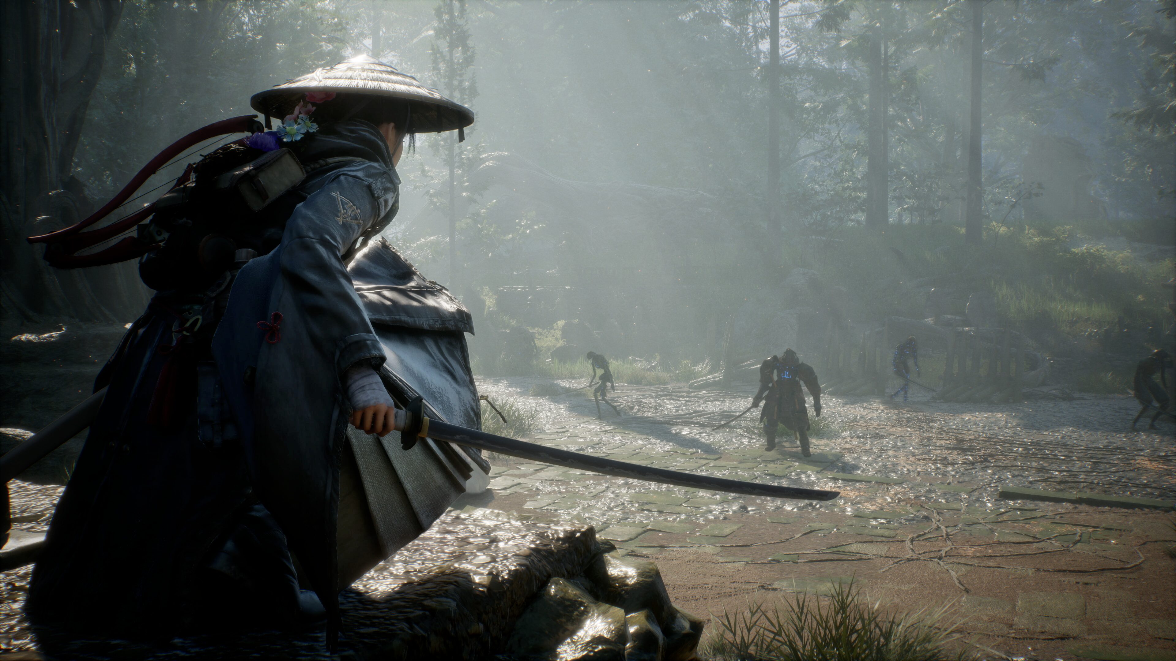 En ce qui concerne l’évolution de nos deux héros, des arbres de compétences propres à chacun offriront de plus en plus de possibilités de build, au même titre que les Pierres d’esprit, offrant divers effets en combat, ou encore les différents katanas à collecter pour Emma ainsi que les charmes que pourra porter Koo. La vidéo du Xbox Developer Direct a aussi insisté sur le fait de pouvoir opter pour des approches à distance ou bien furtives.