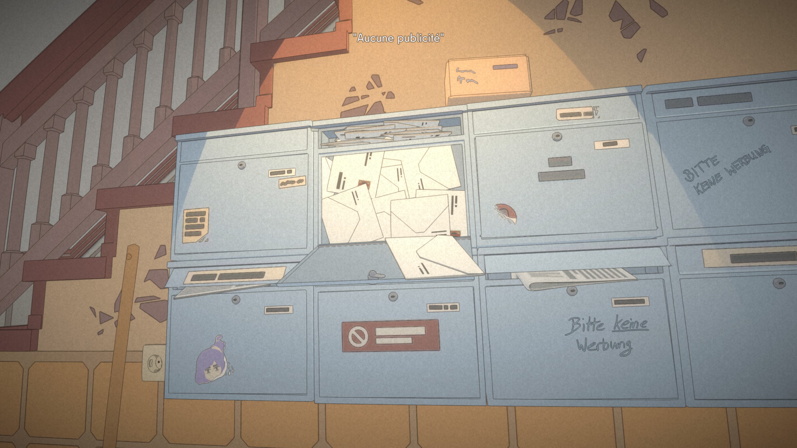 On finit avec la bande-son et les graphismes, deux réussites, ou quasiment. Hormis quelques bugs et une optimisation un peu douteuse, c’est le style graphique qui sauve le jeu. Dans une ambiance à mi-chemin entre le cel-shading et le cartoon, The Berlin Apartment dispose d’un cachet artistique réussi. Le jeu est très agréable pour la rétine, et nous permet de nous en mettre plein la vue avec son style graphique atypique. Concernant la bande-son, elle est plutôt chill, et avec un bel acting des comédiens de doublage. C’est plus qu’honnête, et l’ensemble sonore et graphique se marie bien.