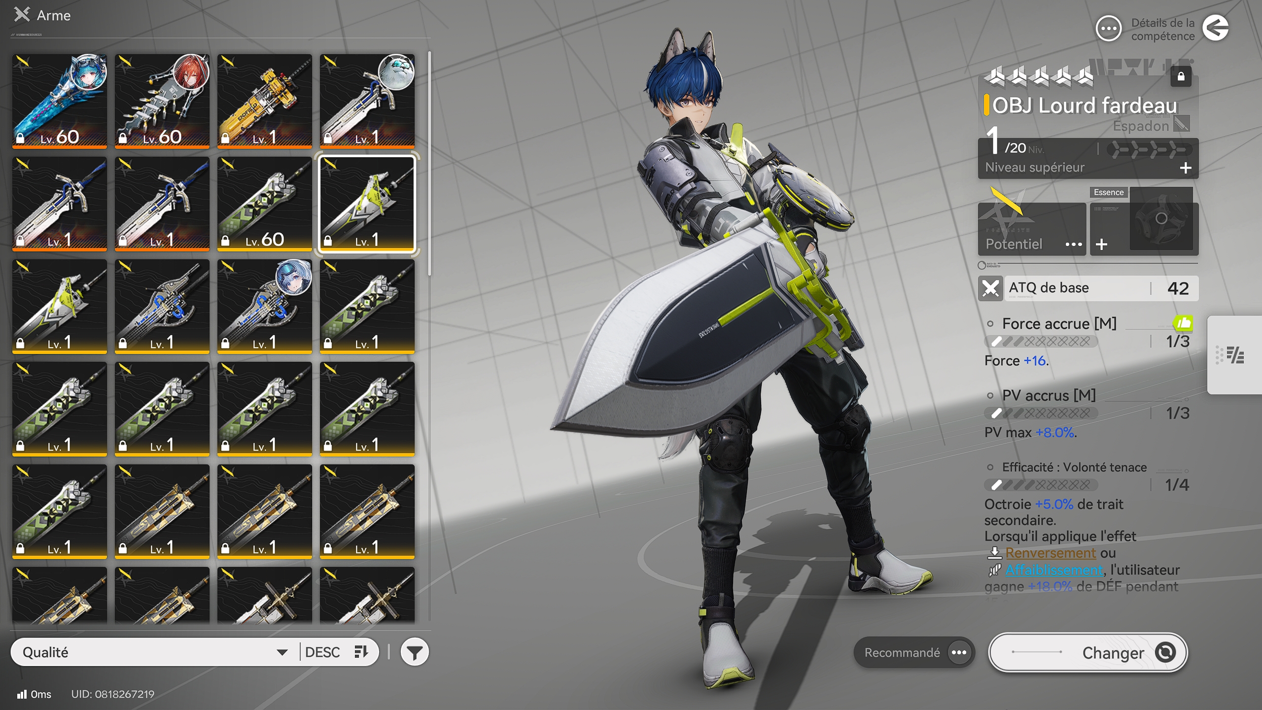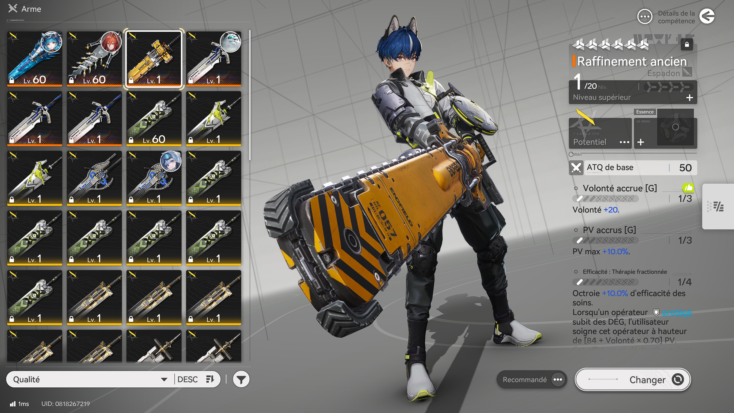 Contrairement à d’autres jeux où il faut farmer des donjons de manière répétitive, les équipements possèdent des statistiques fixes et doivent exclusivement être fabriqués via le menu d’équipement grâce aux ressources produites par vos usines dans Arknights Endfield. Le tout est d’équiper des pièces qui augmentent spécifiquement leur attribut principal (indiqué en jaune) et leur attribut secondaire, offrant ainsi des bonus d’attaque exponentiels.