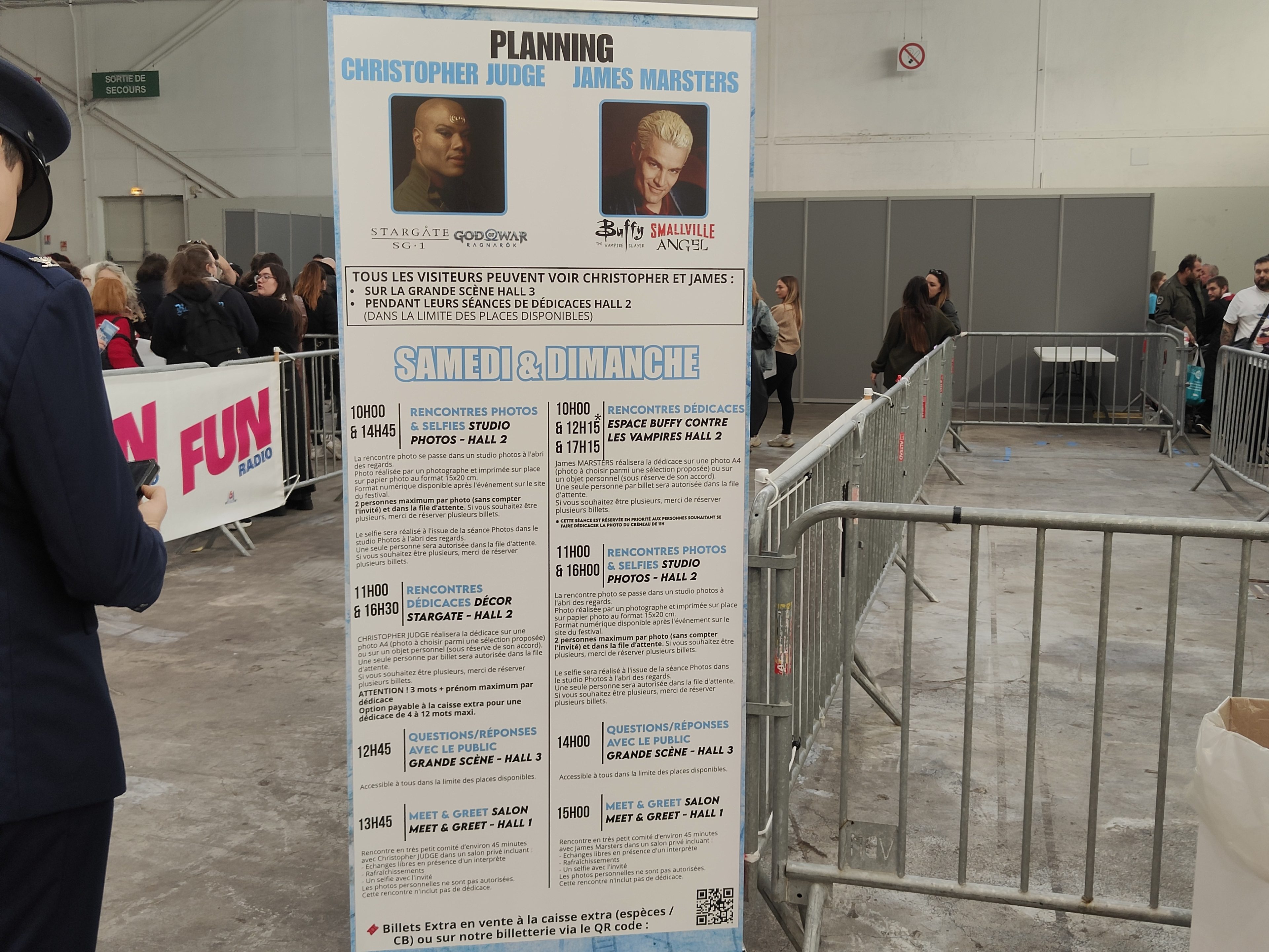 Évidemment, outre Christopher Judge, nous avions un autre acteur un peu sous-côté, avec James Marsters. L’acteur, connu particulièrement pour son rôle de Spike dans Buffy contre les vampires, s’est, lui aussi, prêté au même jeu de questions/réponses que le comédien jouant dans Stargate G-1. Dans les autres invités notables, nous avons eu Jacques Chambon, ou encore les comédiens de doublages avec Martin Faliu et Claire Guyot. Pour le reste, d’autres dédicaces étaient de la partie avec Jérôme Alquié, Jean-Pierre Savelli, et bien d’autres. Sachez également que ce Hall trois partageait de jolies expositions avec pas mal de véhicules de la pop culture (la voiture de James Bond, Flash Mcqueen, la moto de Daryl Dixon, etc.).