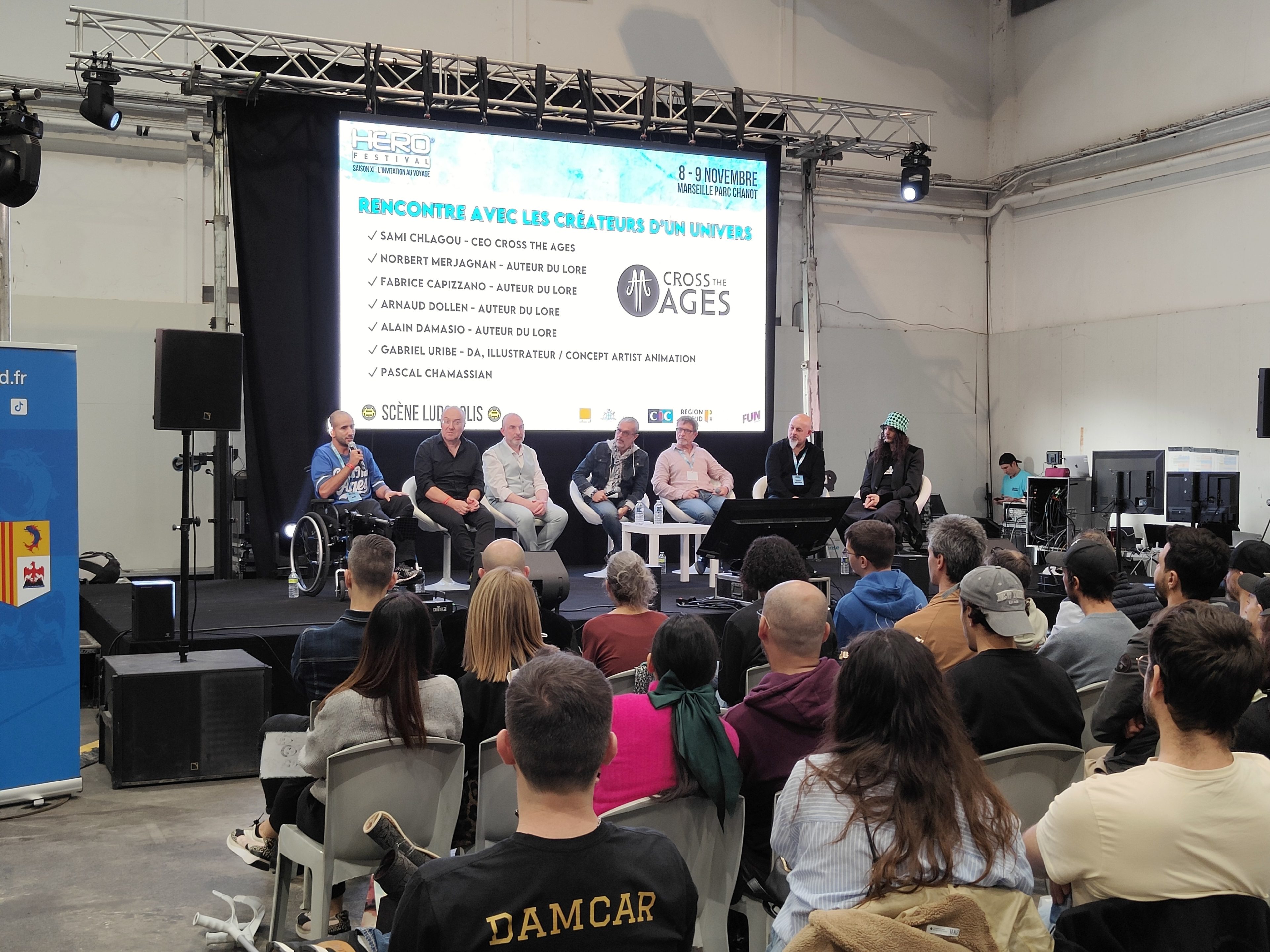 Le gros morceau de ce Hero Festival 2025, n’était autre que le stand Ludopolis. Avec surtout la présence des petits gars d’ATYPIQUE Studio avec Mixcity Swap en passant par quelques stands vendant quelques jeux vidéo ou des bornes de rétrograming, c’était en revanche le gros stand Cross The Ages qui a attiré notre attention. Ce dernier, en plus de proposer des tournois sur son prochain titre qui n’est autre que Cross The Ages: Arise, proposait également de s’essayer à son deck builder, Cross of Ages : Blast, via un autre stand plus petit.