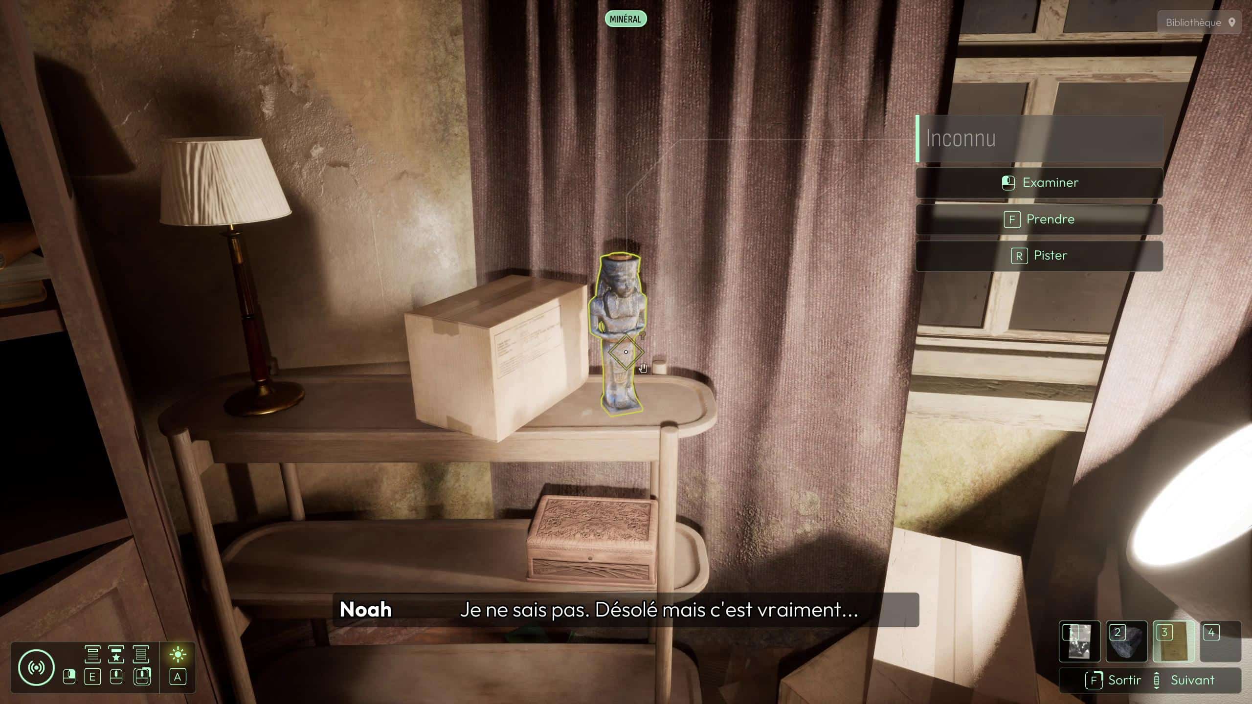 On précise d’ailleurs que nous avons joué sans les différentes aides que peut proposer le jeu dans les options pour les moins patients. nous trouvons le studio peut-être un peu trop permissif en ce qui concerne les associations d’indices. Une interface permet de naviguer entre tous les éléments collectés et de les relier selon ses propres déductions, ou en les insérant dans des emplacements prédéfinis. Il est ainsi possible d’essayer toutes les combinaisons, sans jamais être pénalisé pour une ou plusieurs erreurs successives. Cet outil n’est pas indispensable, mais peut devenir assez chaotique lorsque le nombre d’indices accumulés devient important.