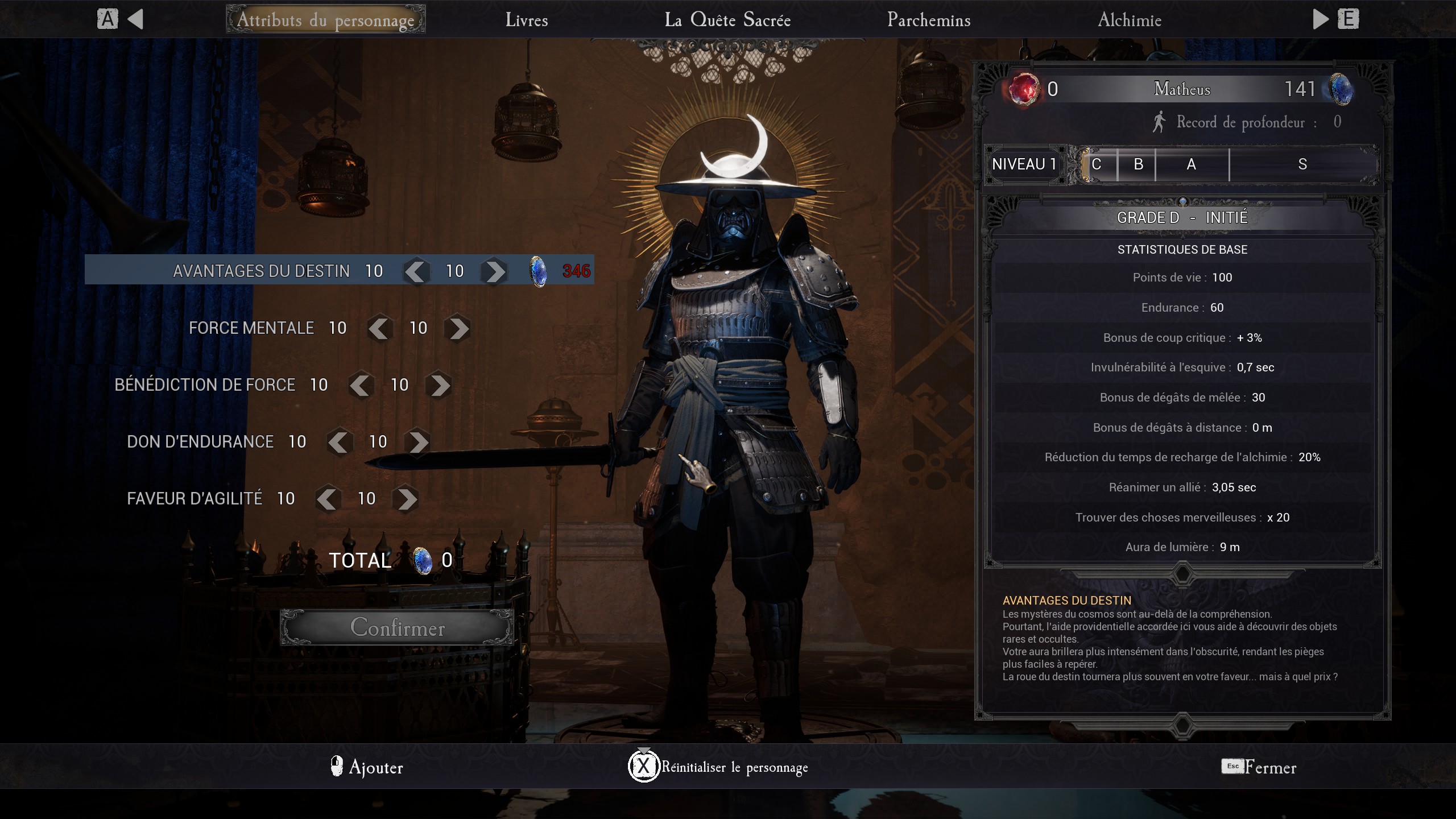 L’Awakening Guide sera aussi là pour vous autoriser à améliorer les attributs de votre personnage. Par des pierres célestes que vous récoltez lors de vos expéditions, vous pourrez donner un petit coup de boost aux statistiques de votre protagoniste en choissisant parmi cinq domaines (avantages du destin, force mentale, bénédiction de force, don d’endurance et faveur d’agilité). A chaque amélioration, vous prenez donc un niveau, et améliorez considérablement au choix vos bonus critiques, vos points de vie ou d’endurance, voire la chance de trouver un butin intéressant. Notez que vous aurez parfois la chance de dénicher des livres méta-occultes, octroyant des compétences passives.