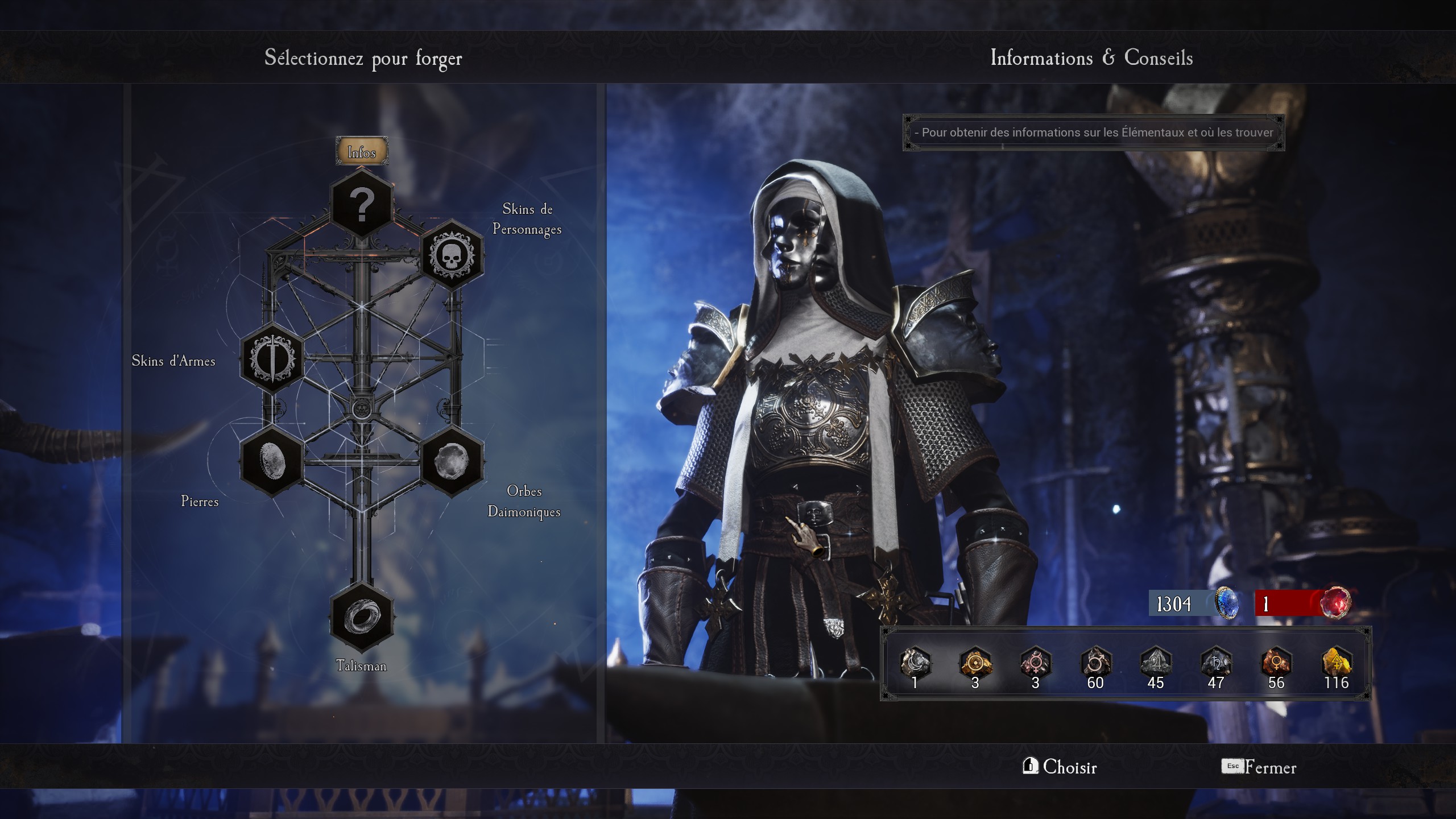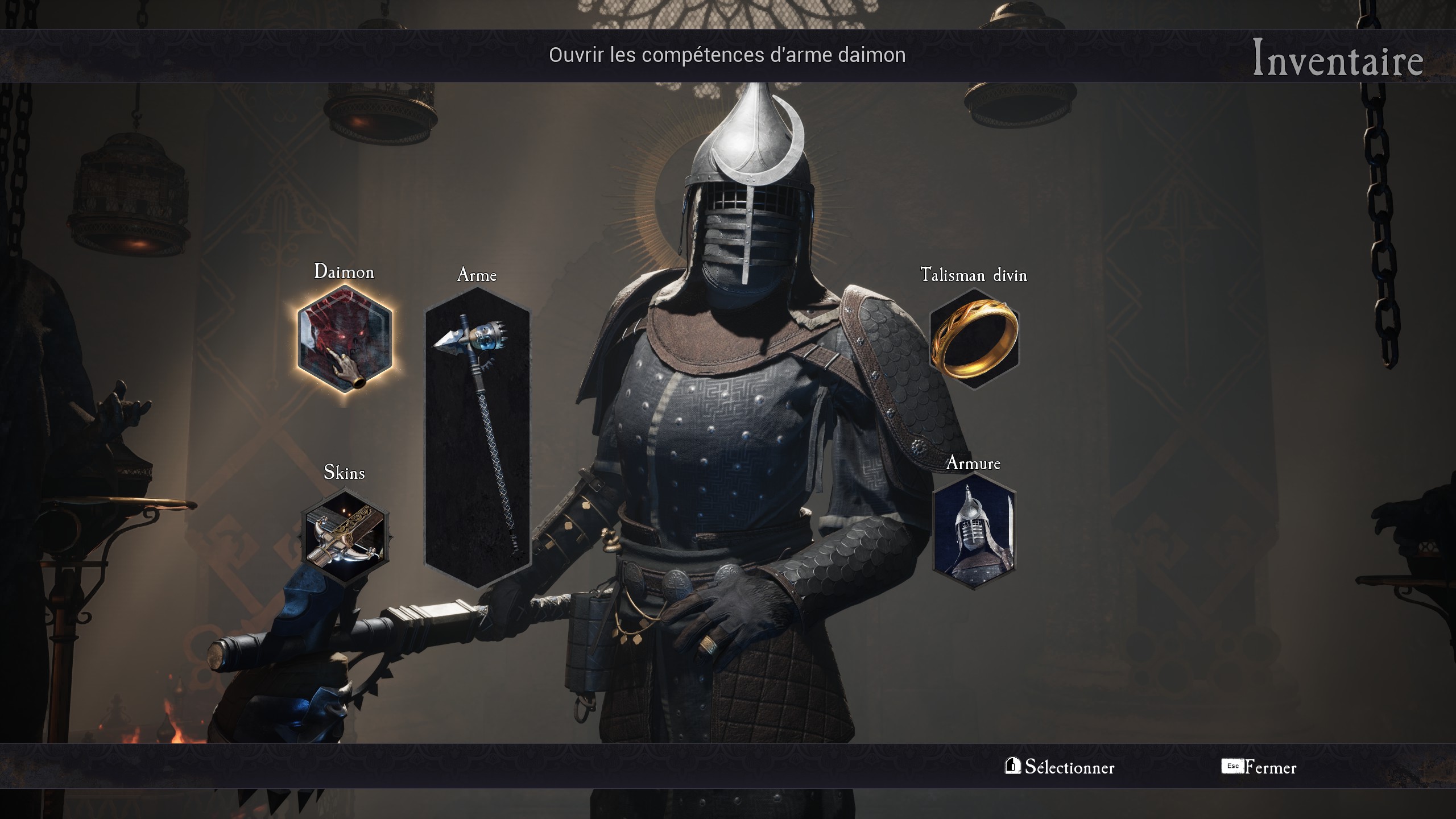 Une feature qui devra être bien exploitée sur la version 1.0 quand elle sortira. Par ailleurs, sachez que ce hub central va vous permettre de rencontrer d’autres membres de cette Secreta. Vous pourrez dans un premier temps personnaliser l’équipement de votre protagoniste via le Gear Keeper. En plus d’avoir la possibilité de choisir un type d’armure (juste cosmétique comme les skins d’armes), vous pourrez équiper votre arme Daimon. Il sera aussi possible d’endosser un talisman divin apportant des avantages (résistance au feu, à l’eau etc…), ou encore upgrader le daimon de votre arme blanche, via des orbes daimoniques que vous ramassez lors de vos runs.