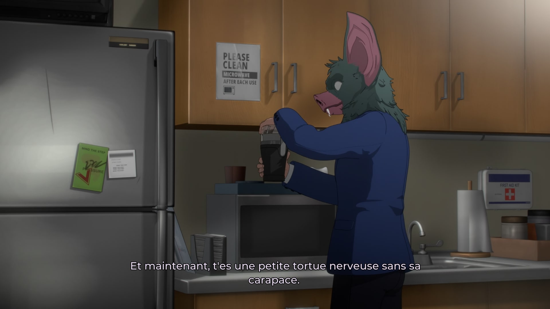 Car malgré tout ce contexte super-héroïque, Dispatch veut vous ancrer dans une vie de bureau. Entre les rencontres gênantes dans les toilettes, les engueulades dans la salle de repos, les vols de matériel, tout y est, super-humains ou non. Un moyen parfait pour rendre ces personnages plus terre-à-terre, et plus humains. Plus drôles aussi, ce que l’on doit à un timing des dialogues impeccables, ainsi qu’à un langage naturel et des répliques crues. Adhoc se limite dans la représentation de la violence, mais n’hésite pas à pousser le curseur de la grossièreté au maximum, sans que cela paraisse forcé.