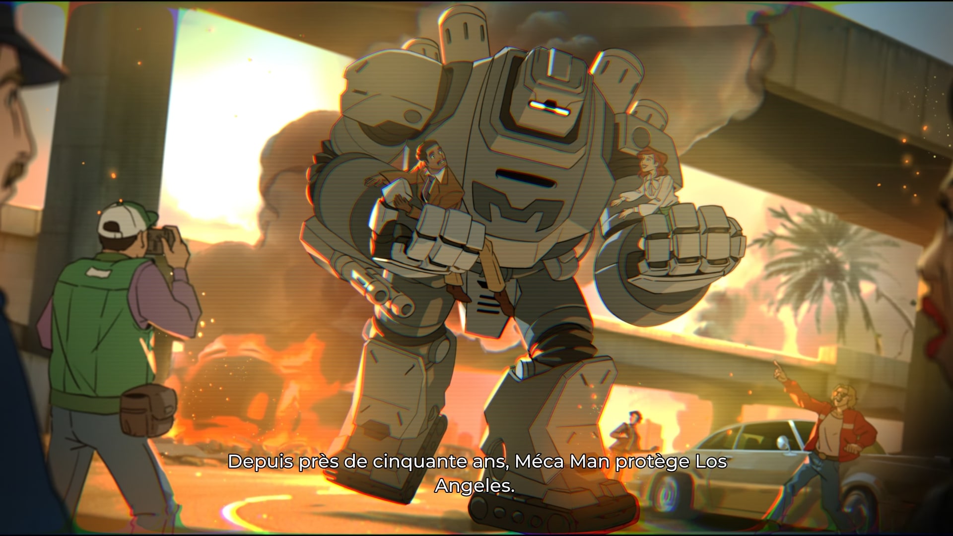 Vous incarnez ici Robert Robertson, qui, en plus de posséder un nom qui attire toutes les moqueries, est un super-héros tombé en disgrâce. Aussi connu sous le nom de Meca-Man, sorte d’Iron Man si Tony Stark avait gardé sa toute première armure, il se voit être contraint de partir à la retraite un peu plus tôt que prévu suite à une rencontre malchanceuse avec un super-vilain.