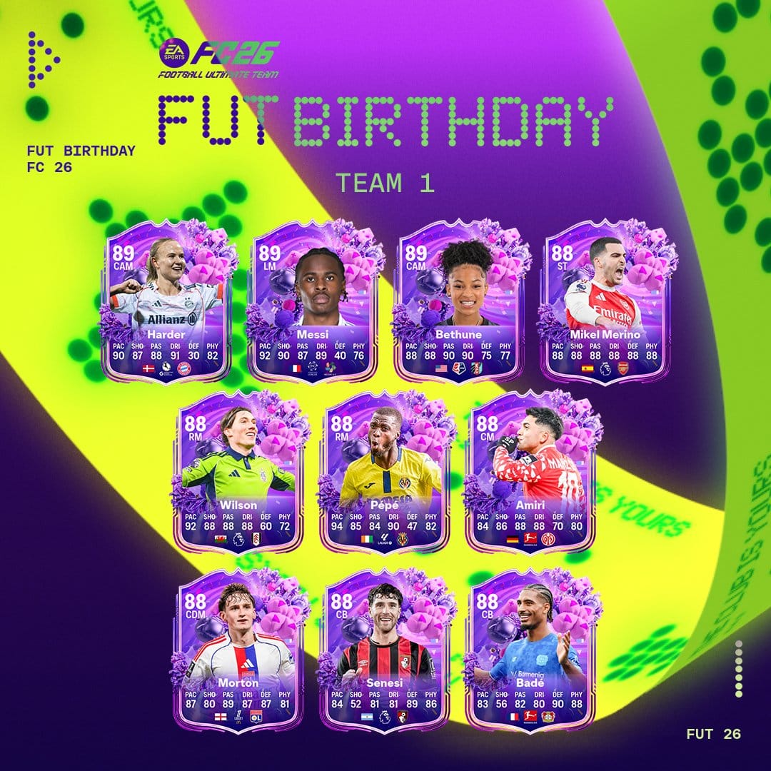 EA Sports FC 26 nous propose les joueurs et joueuses qui composent la première équipe FUT Birthday. Les joueurs et joueuses sont disponibles dans les packs pendant une semaine.