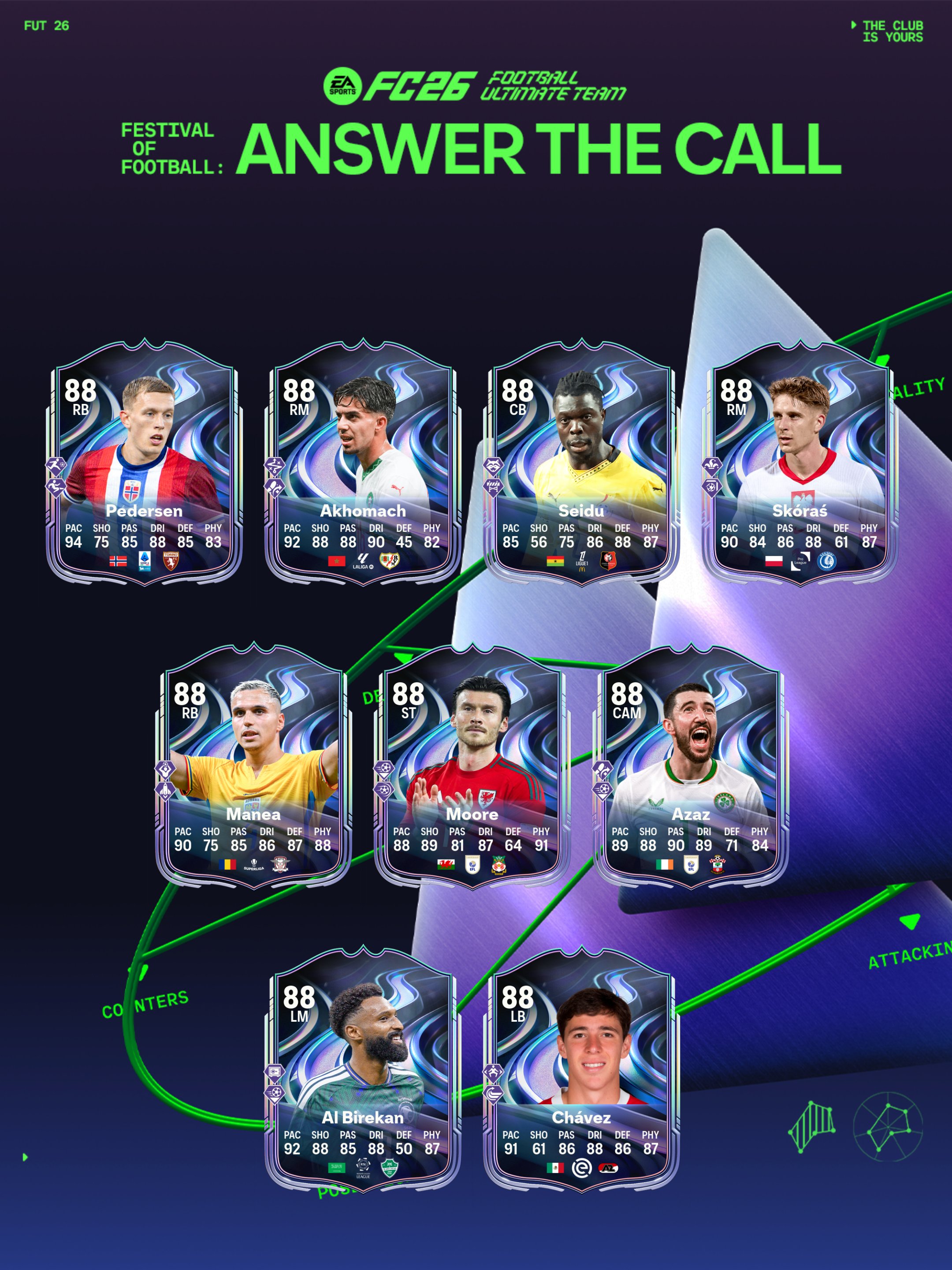 Après la Team Of The Week numéro 27 et la deuxième équipe FUT Birthday, EA Sports FC 26 dévoile l’évènement Answer The Call. La promotion met en lumières les joueurs qui sont sur le point de représenter leur nation, autant les vieux briscards, les stars affirmées que les nouveaux venus prêts à tout emporter sur leur passage. Les cartes auront un +1 au général, 1 PlayStyle + et tous les rôles ++ si et seulement s’ils sont sélectionnés.