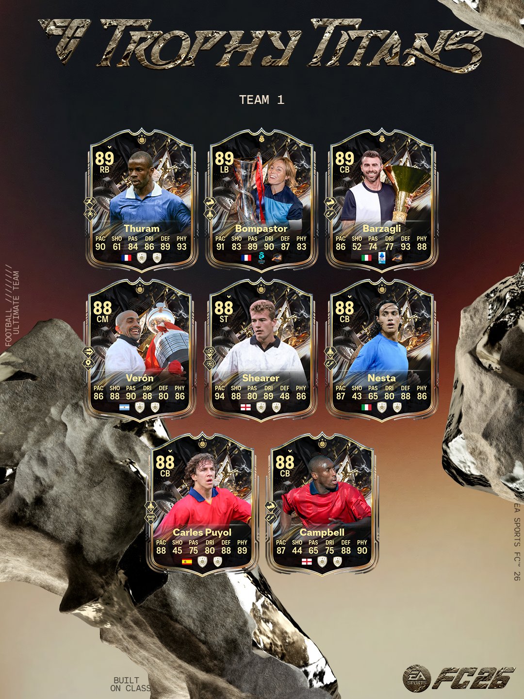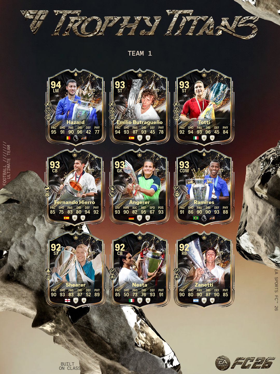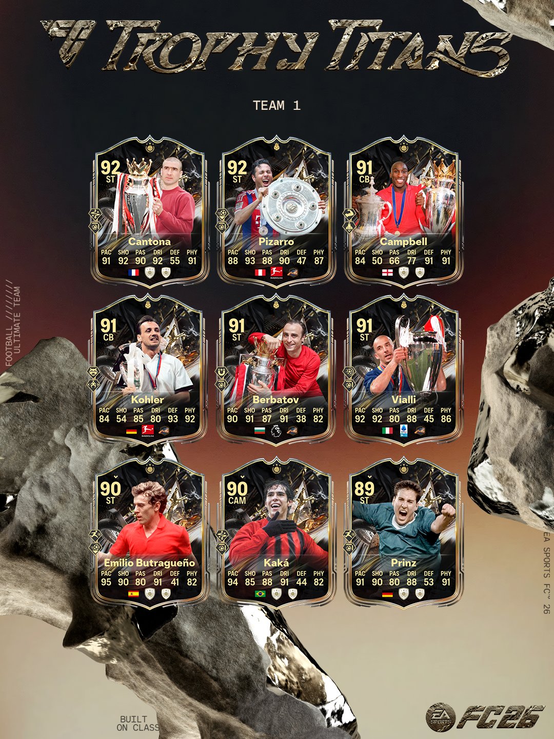 Après la Team Of The Week numéro 29 et l’équipe Road To The Final, EA Sports FC 26 dévoile l’évènement Trophy Titans. La promotion est dédiée aux légendes et aux héros/héroïnes, afin de leur rendre hommage pour l’ensemble de leur carrière et les trophées. Célébrons leur héritage à travers des clichés d’action immortalisant leurs moments les plus emblématiques.