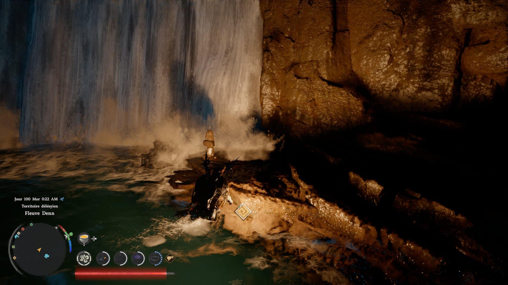 - Emplacement : sous une cascade (effectuez une manœuvre d’estoc pour passer sous l’eau).
