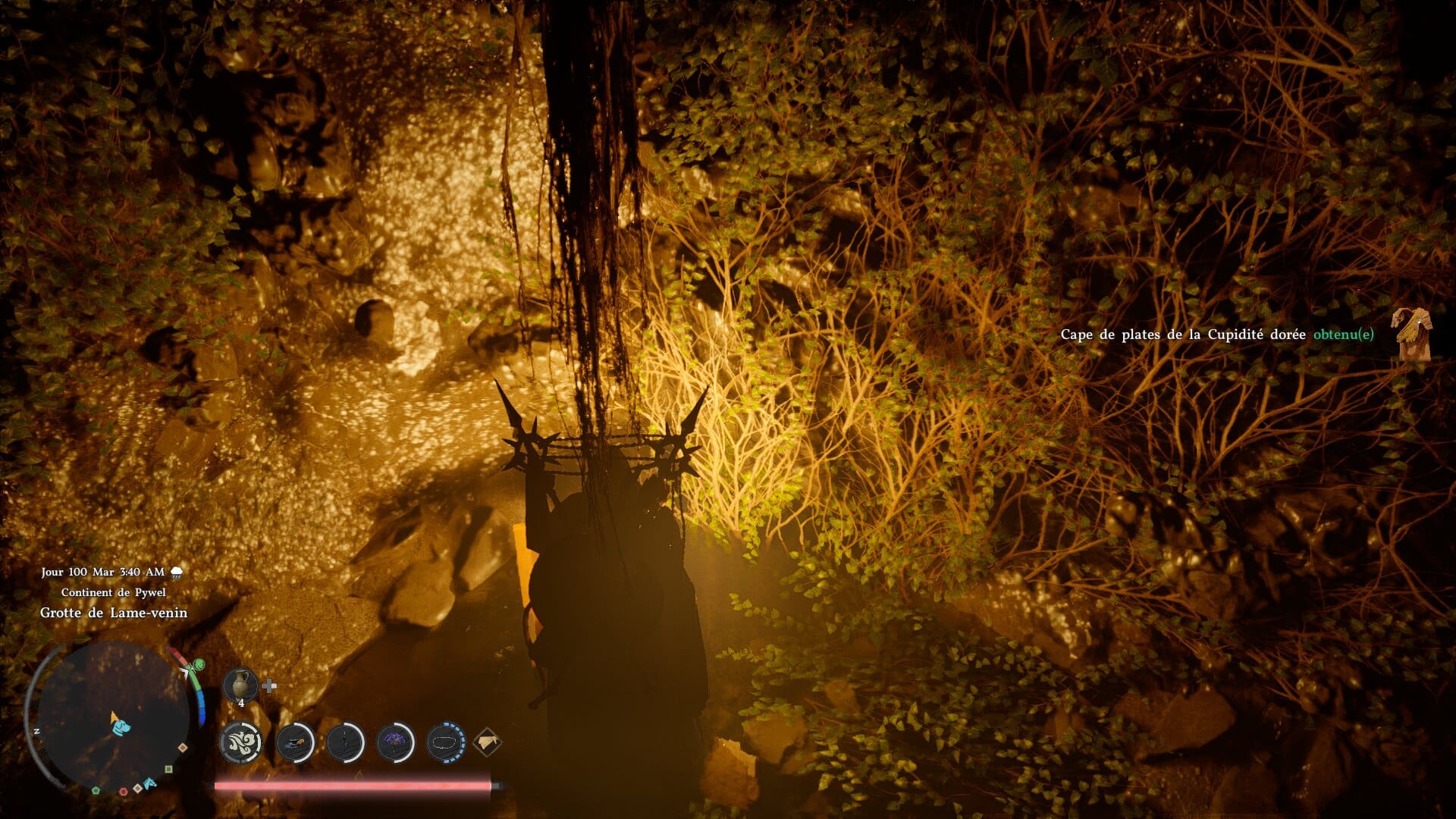 Pour trouver cet ensemble d’armure, il faudra s’aventurer très loin dans Pywel, continent de ce Crimson Desert. Tout à l’est même, dans la jungle du jeu qui se trouve au sud du Désert Pourpre. Cet ensemble est divisé en 6 pièces au total, qu’il faudra trouver indépendamment en fouillant cette zone dangereuse, et peu pratique à explorer. Vous trouverez ici l’emplacement de chaque pièce, avec l’emplacement de la carte associé à chaque équipement.