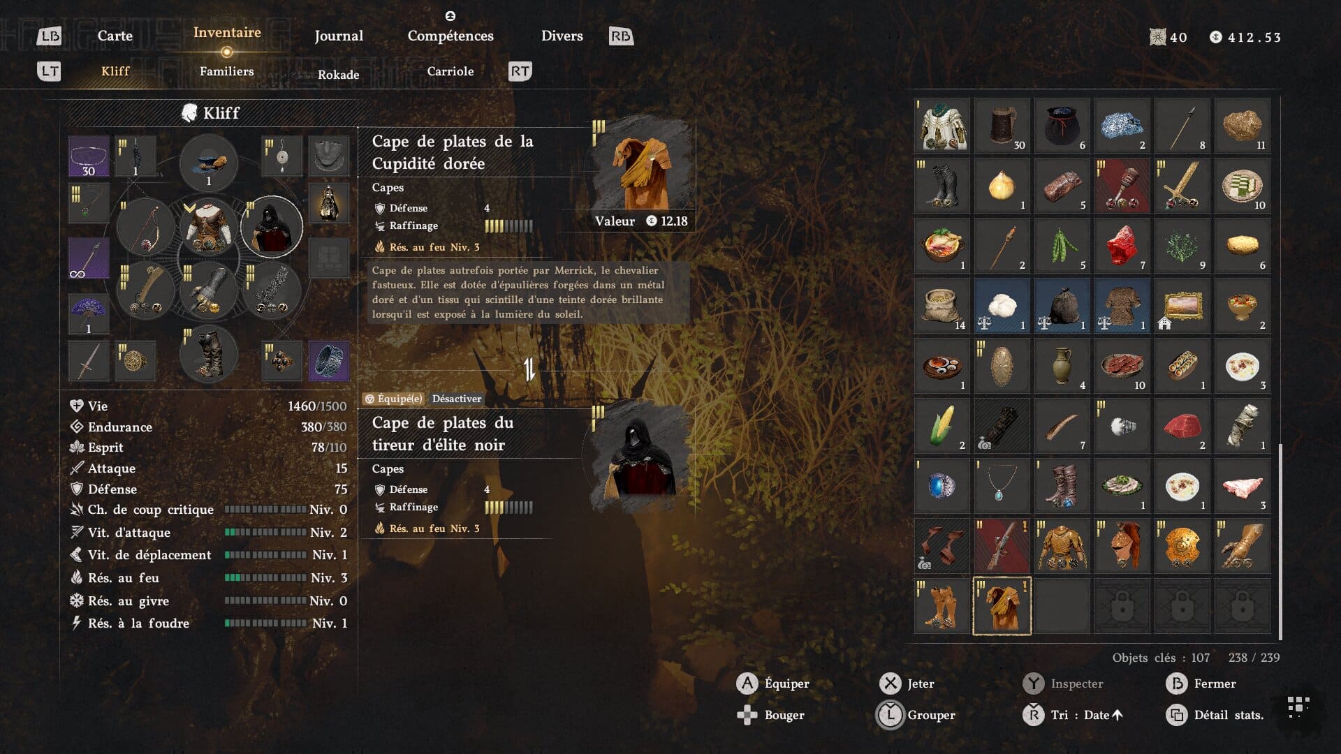 Kliff a la possibilité de trouver d’étonnantes armures durant son aventure dans Crimson Desert. Mais il faut bien dire que la plupart ont droit aux mêmes statistiques, en dehors des équipements abyssaux liés à chacune. Cela n’empêche pas pour autant de partir à la recherche d’une bonne armure qui impressionnera tous les bandits, comme l’ensemble de l’armure de plates de la Cupidité dorée.