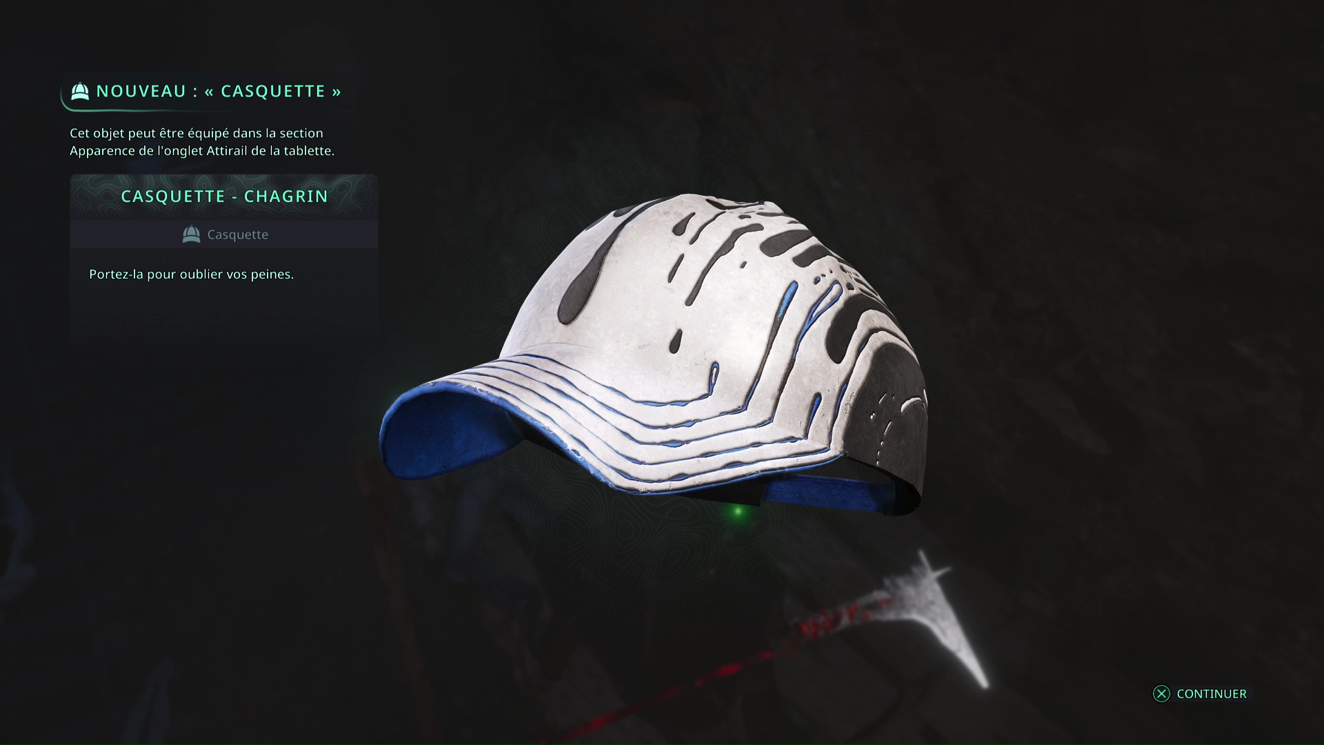 Cette casquette ne pourra être récupérée qu’une fois l’Acte 2 commencé et l’Evangile de Teâar récupéré dans le bureau de restauration de livre de Lethé – Bibliothèque nationale.
