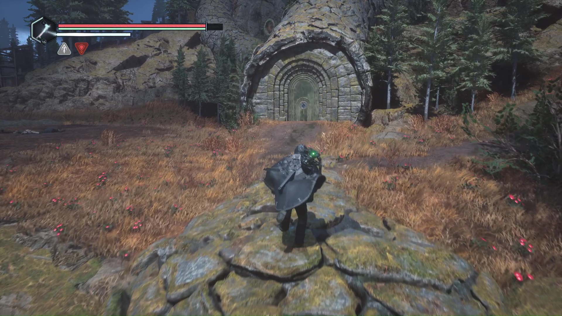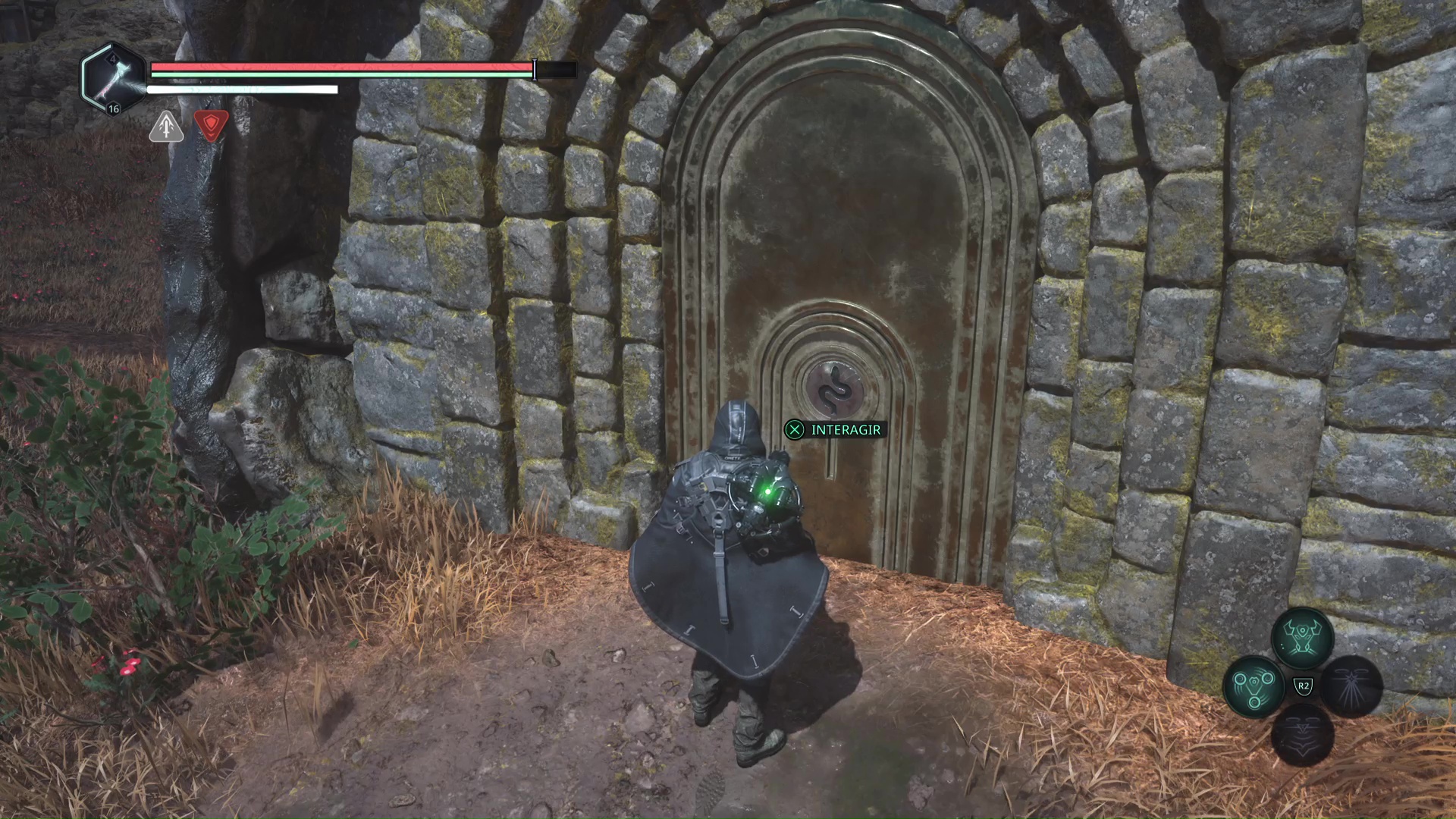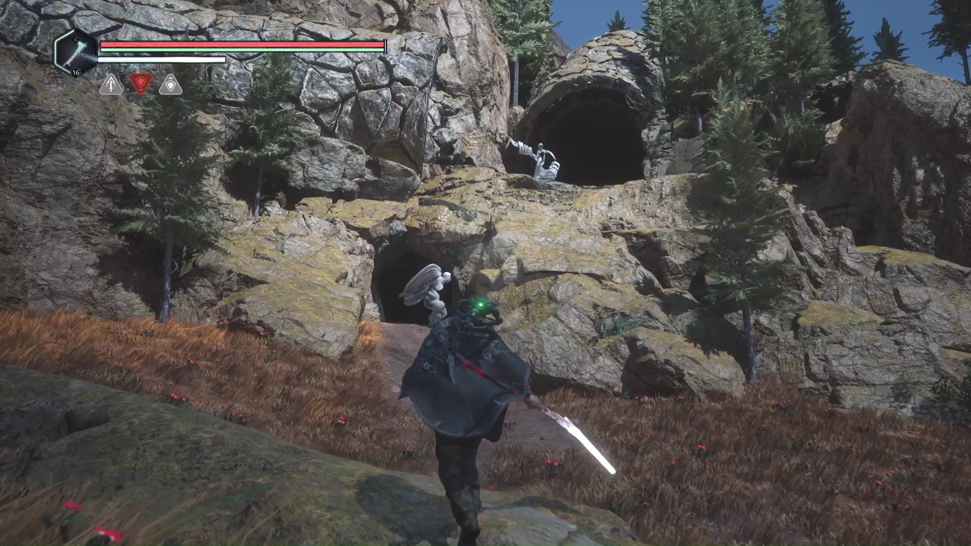 Rendez-vous dans les Collines Vyssa quand vous devrez atteindre le sommet des collines en suivant le chemin du serpent géant de pierre. Après avoir inséré le jeton du Serpent et être arrivé dans une nouvelle zone. Remarquez les deux Hollow Walkers présents devant les entrées d’un tunnel.