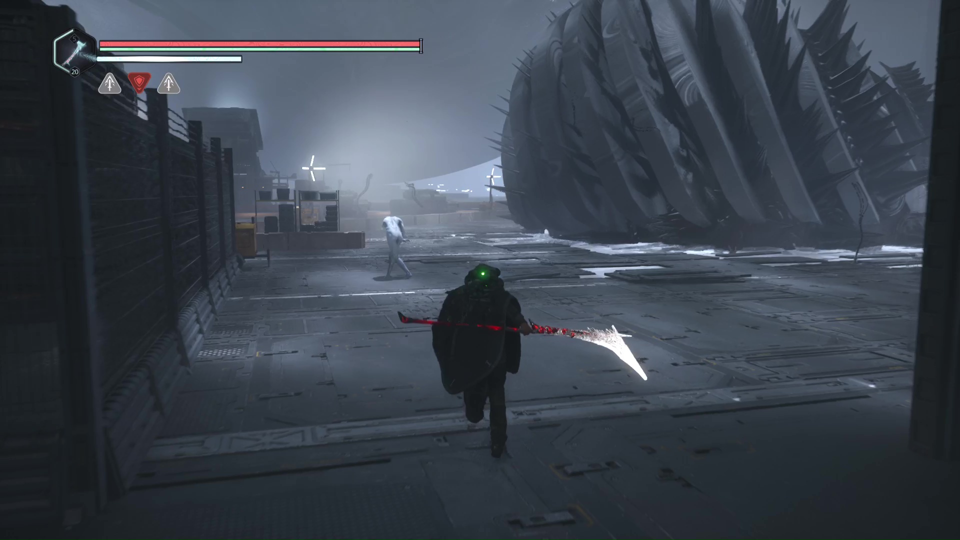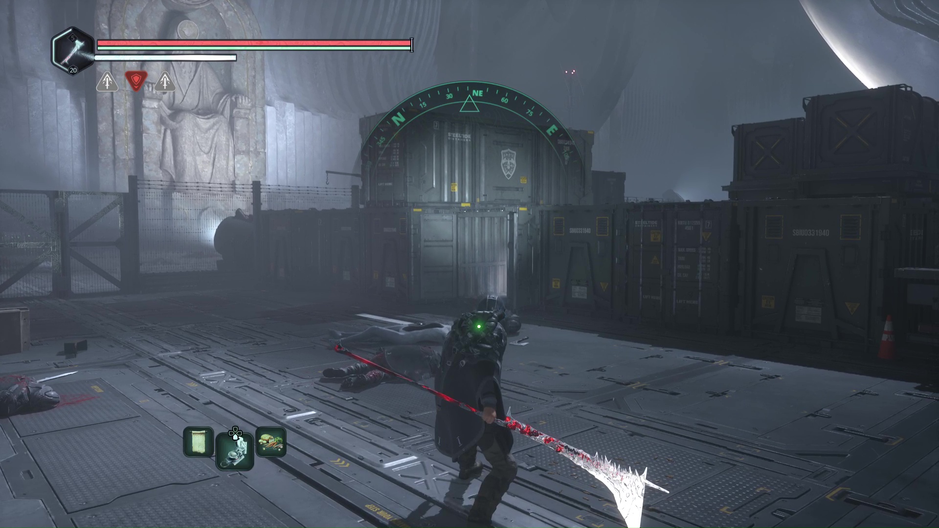 Depuis le centre de la zone, visez le nord-est pour passer à travers un container. Vous tomberez sur une vague d’Hollow Walkers. Combattez-les ou non, mais continuez toujours direction nord-est pour franchir un autre container. Vous voici dans la zone de la boucle.