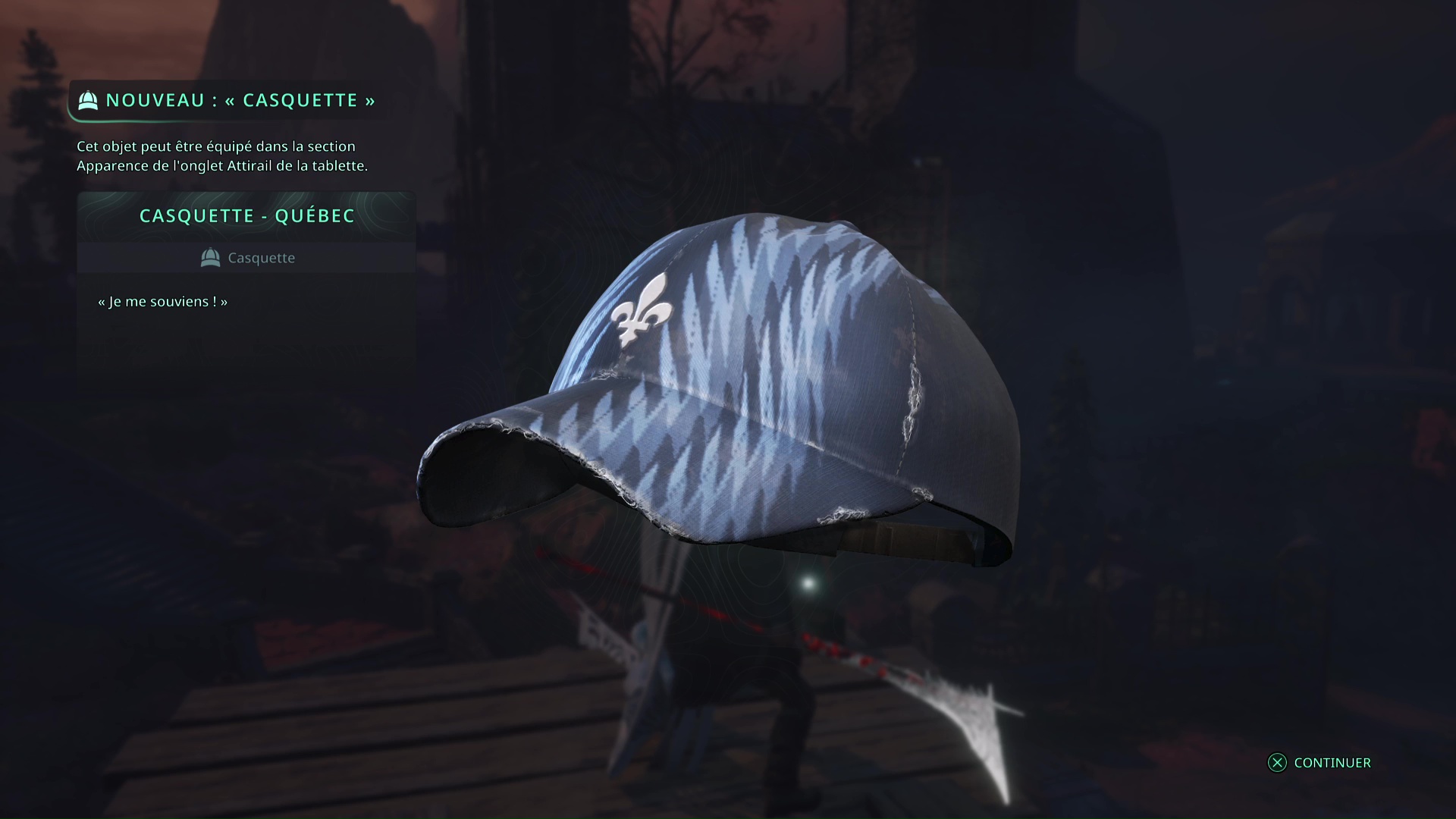 Rejoignez le tireur à distance en passant cette fois par la porte du mausolée. Une fois l’ennemi vaincu, ramassez la Casquette – Québec juste à ses pieds.
