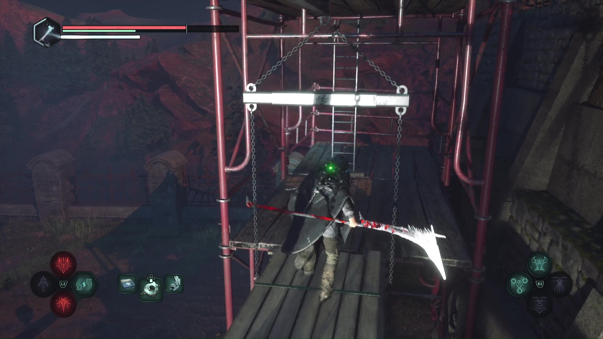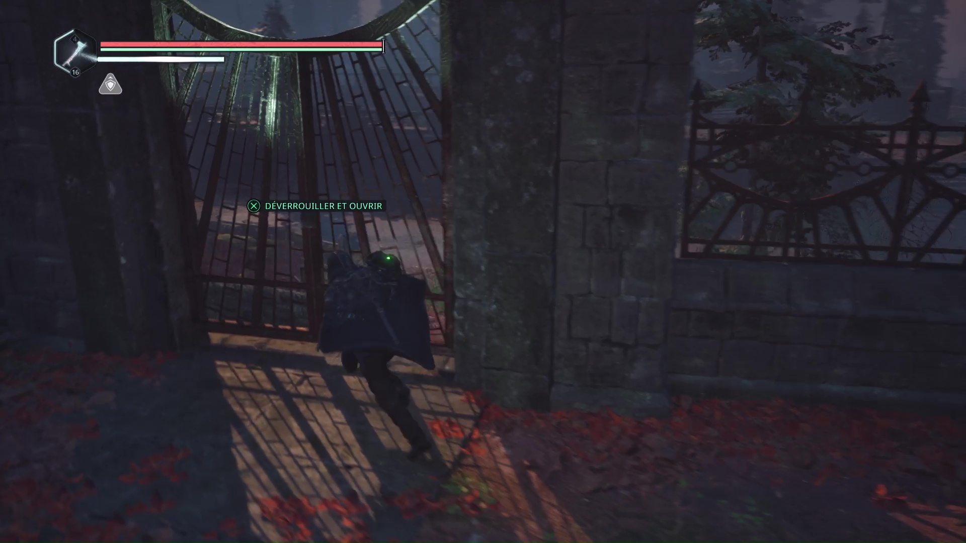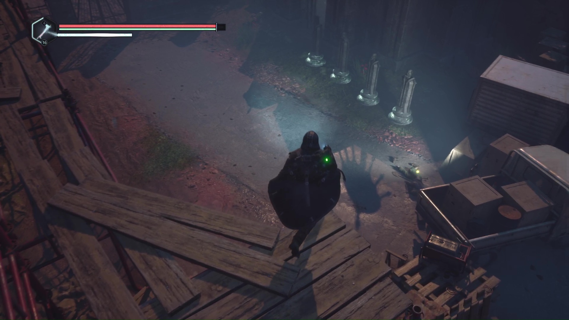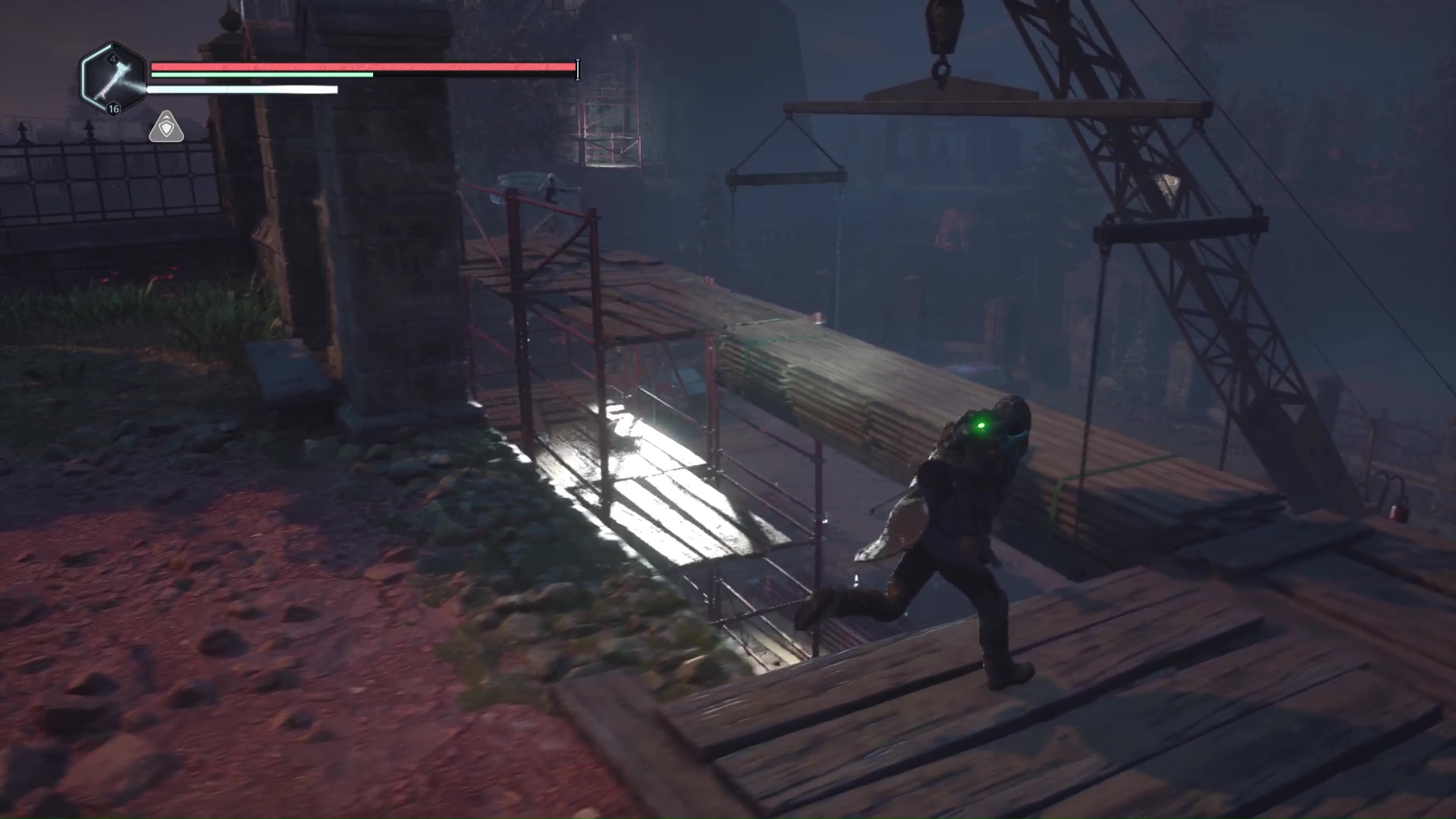 Montez ensuite sur l’échafaudage, battez les Hollow Walkers à côté d’un mausolée et déverrouillez la porte juste à côté. Retournez à la grue et remontez la plateforme.