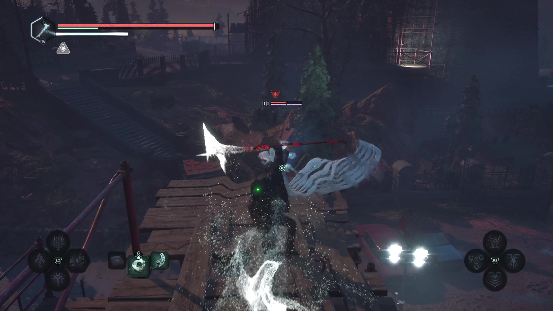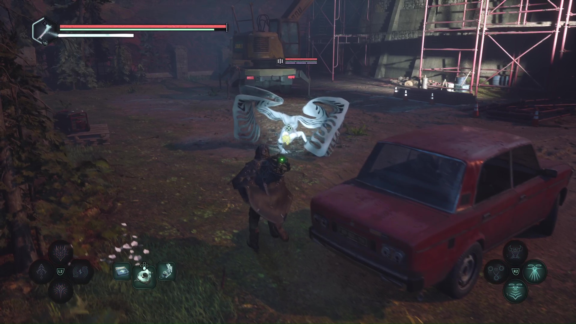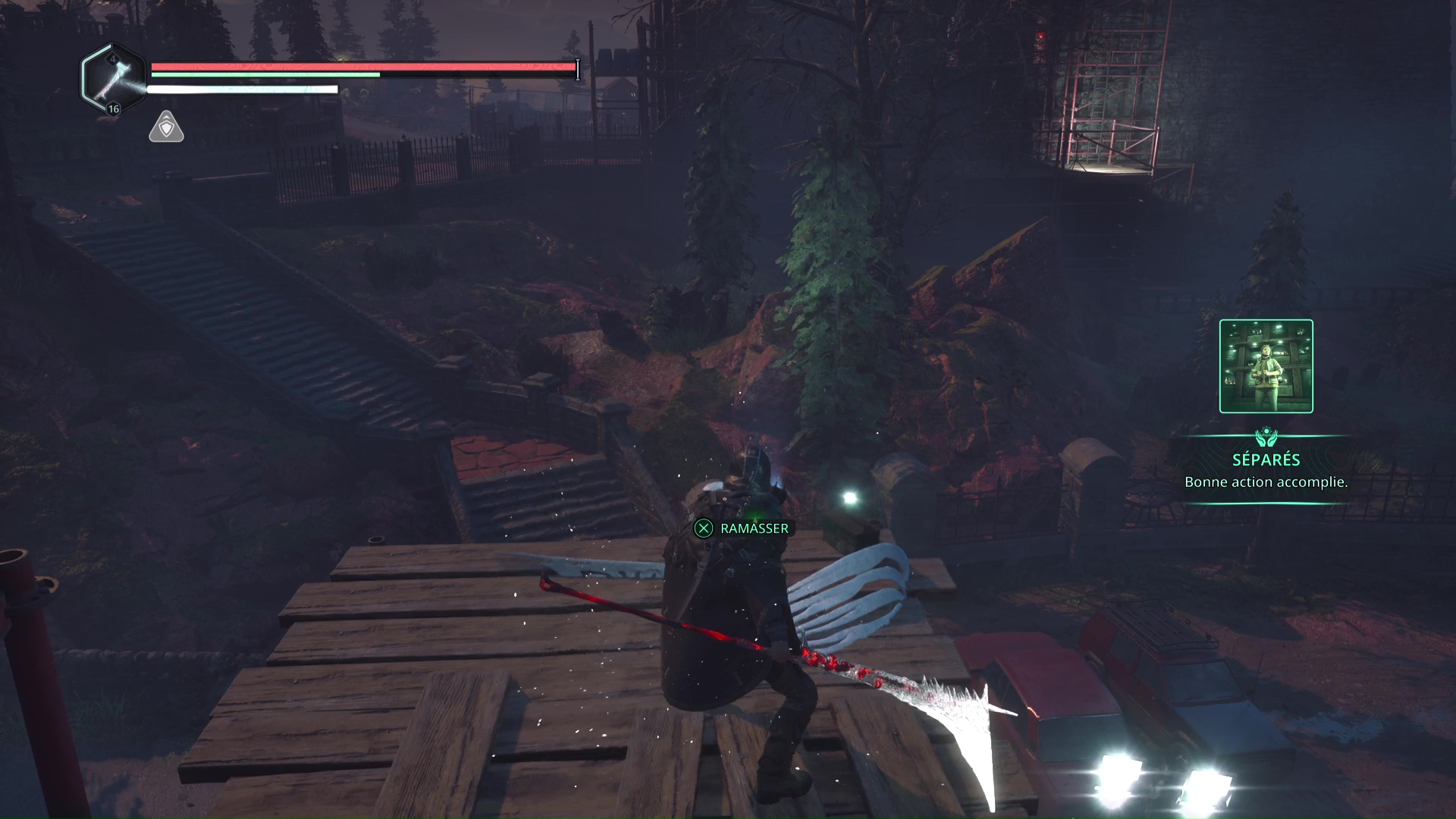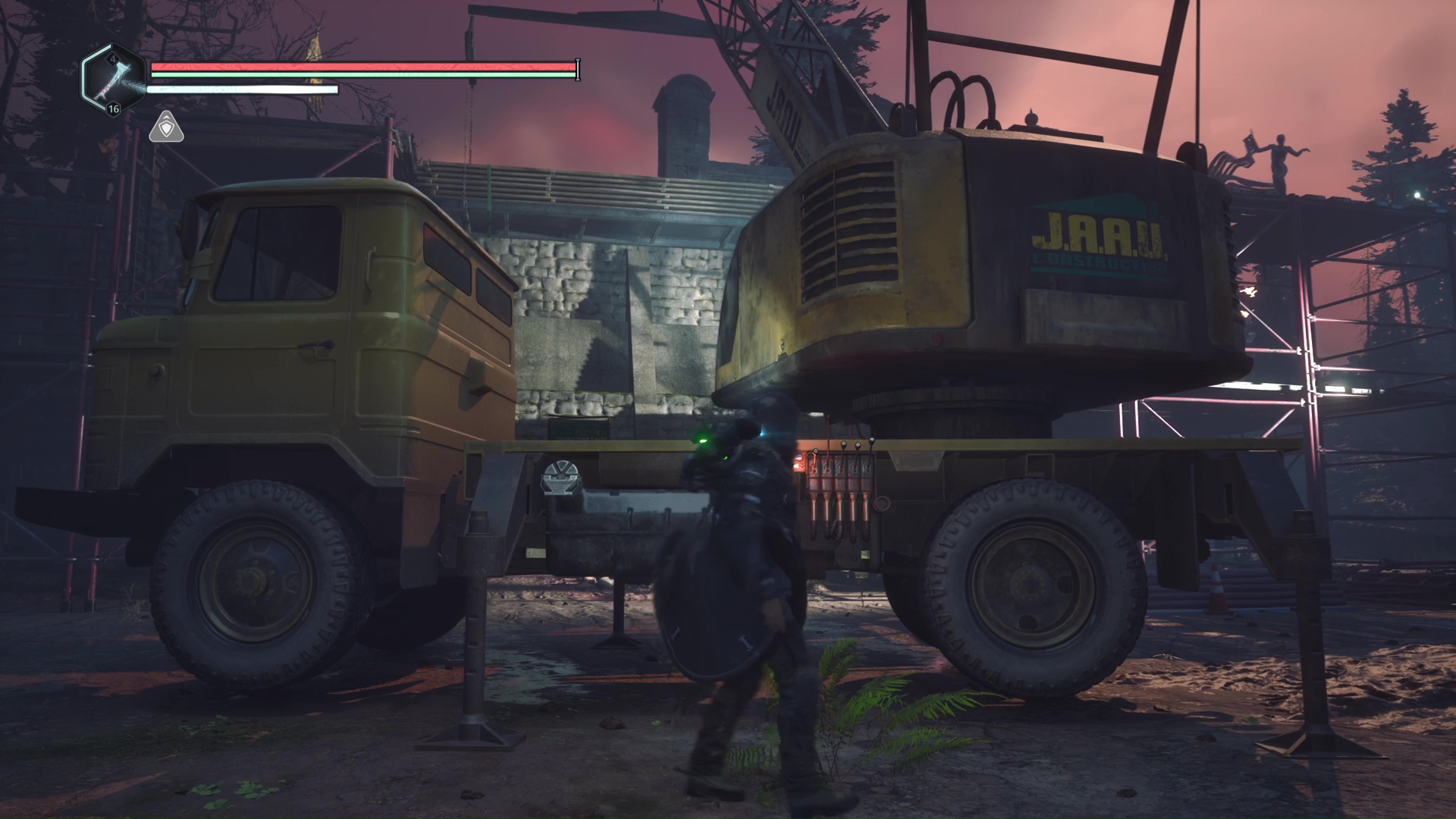 Montez ensuite sur l’échafaudage, battez les Hollow Walkers à côté d’un mausolée et déverrouillez la porte juste à côté. Retournez à la grue et remontez la plateforme.