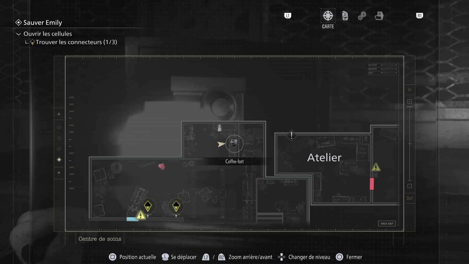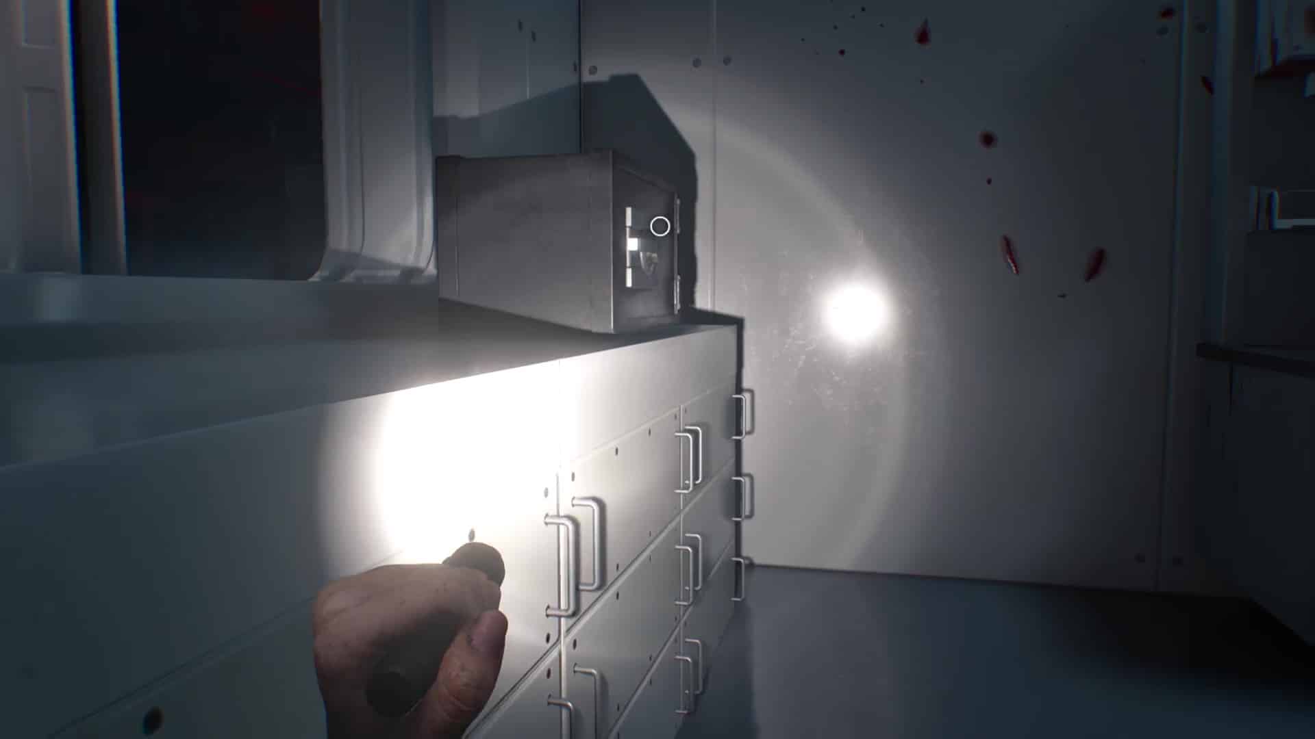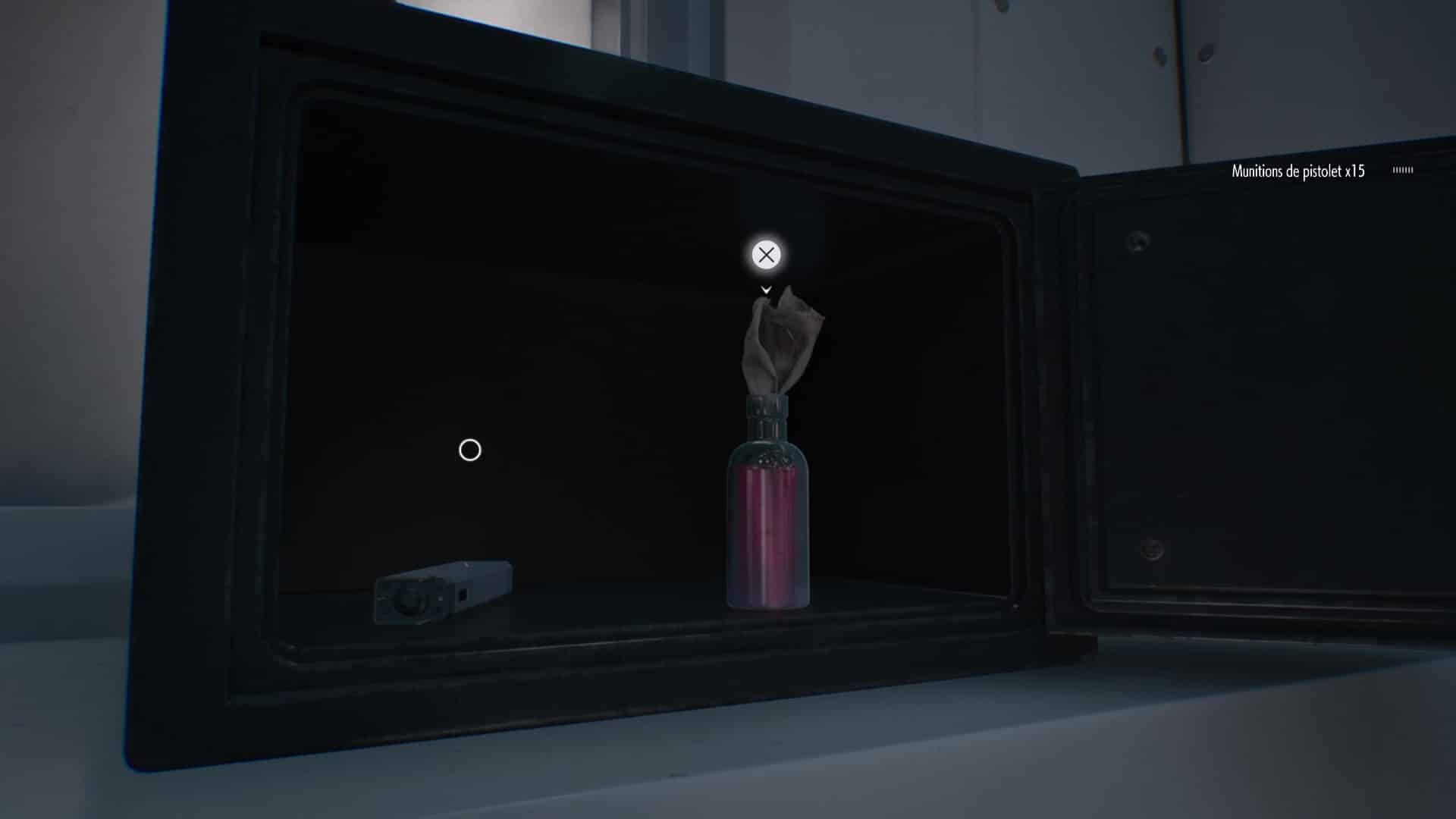 - Emplacement : Le coffre-fort se trouve sur un plan de travail au fond à droite de la Chambre de stérilisation quand vous entrez dedans pour la première fois. Attention au Licker qu’il va falloir contourner ou éliminer.