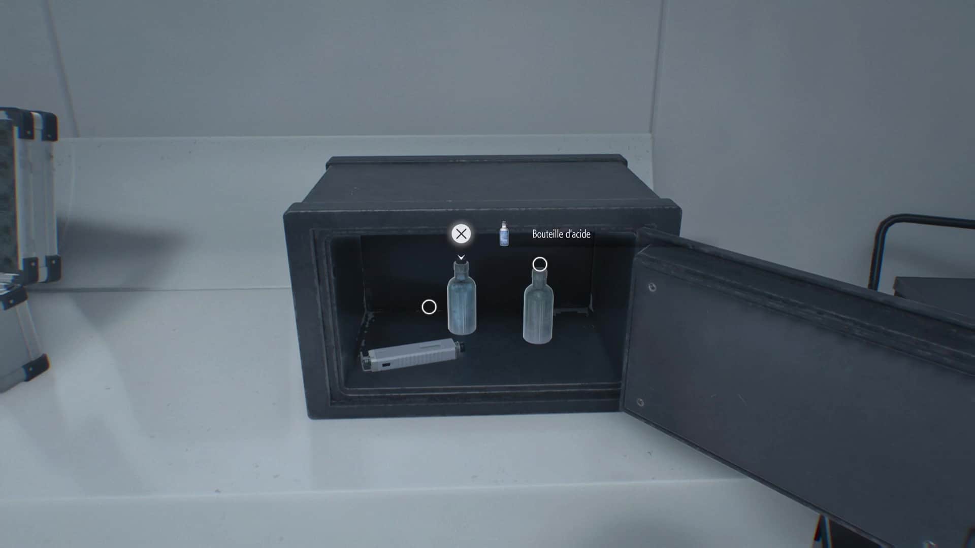 - Récompense : Remède injectable, Bouteille d’acide, Bouteille vide