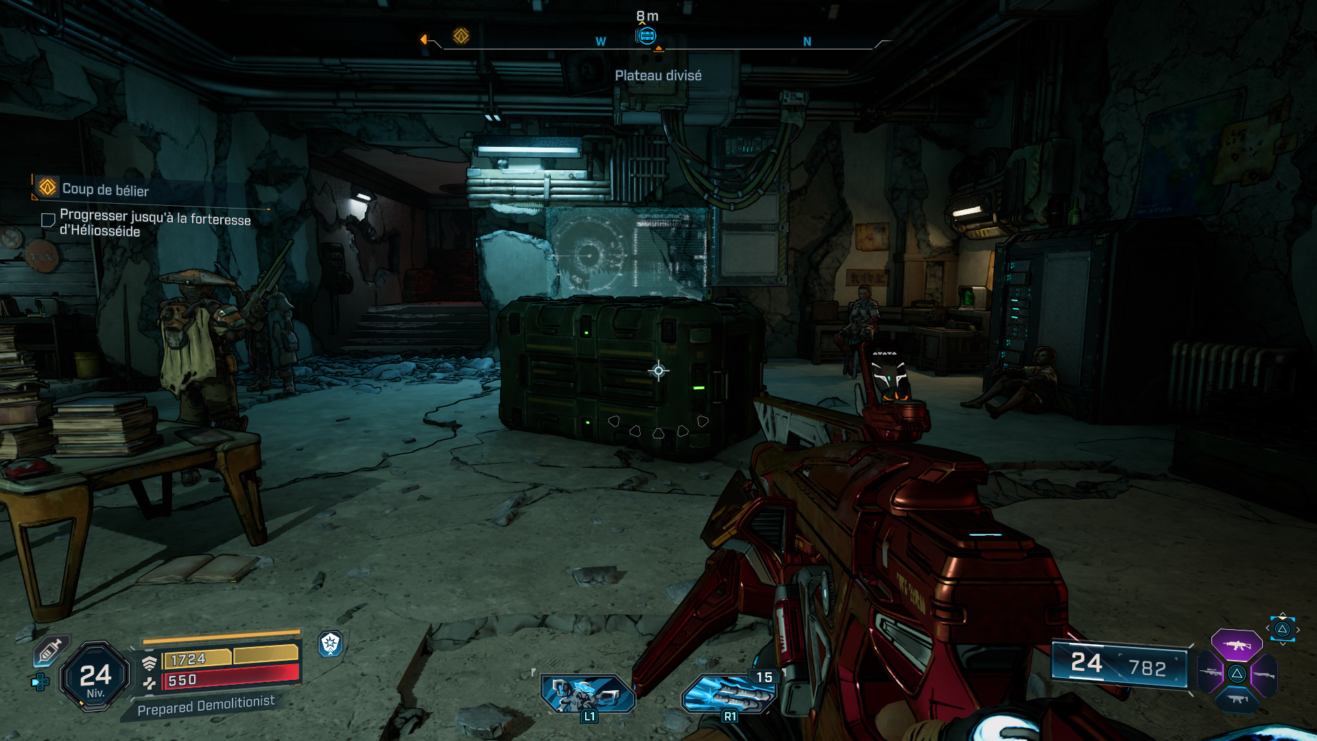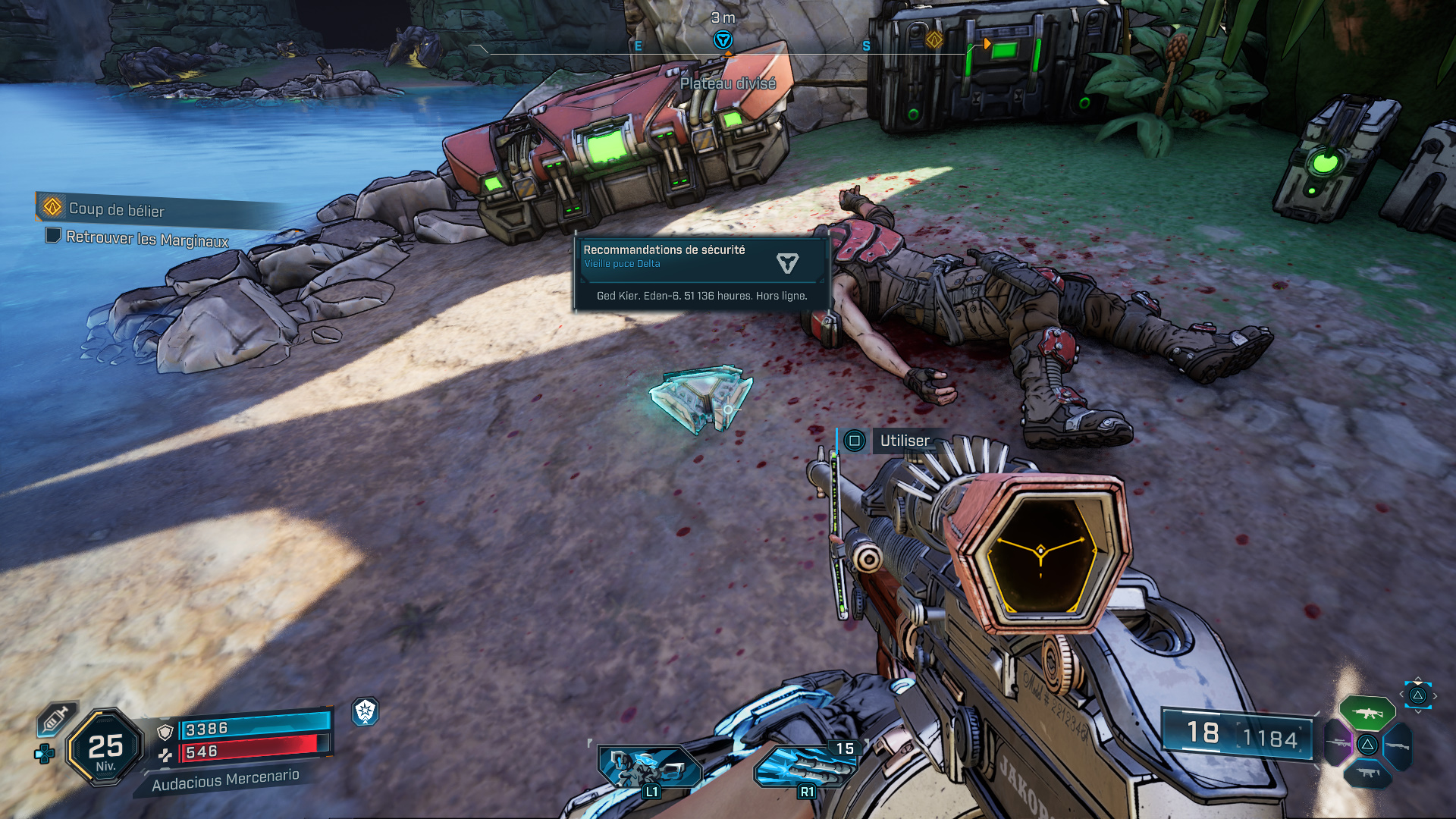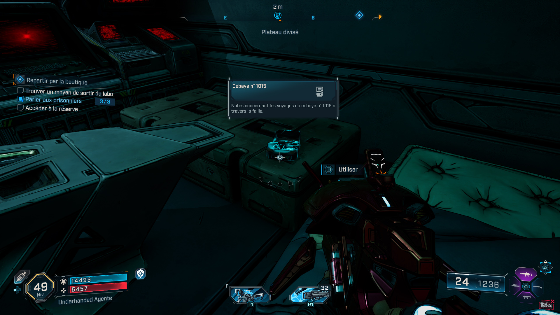 Emplacement : Vers l’est de la région, à l’intérieur de la faille déployée par Francis Lechelou dans le cadre de la mission secondaire « Repartir par la boutique« , sur une caisse dans une autre cellule à l’étage.