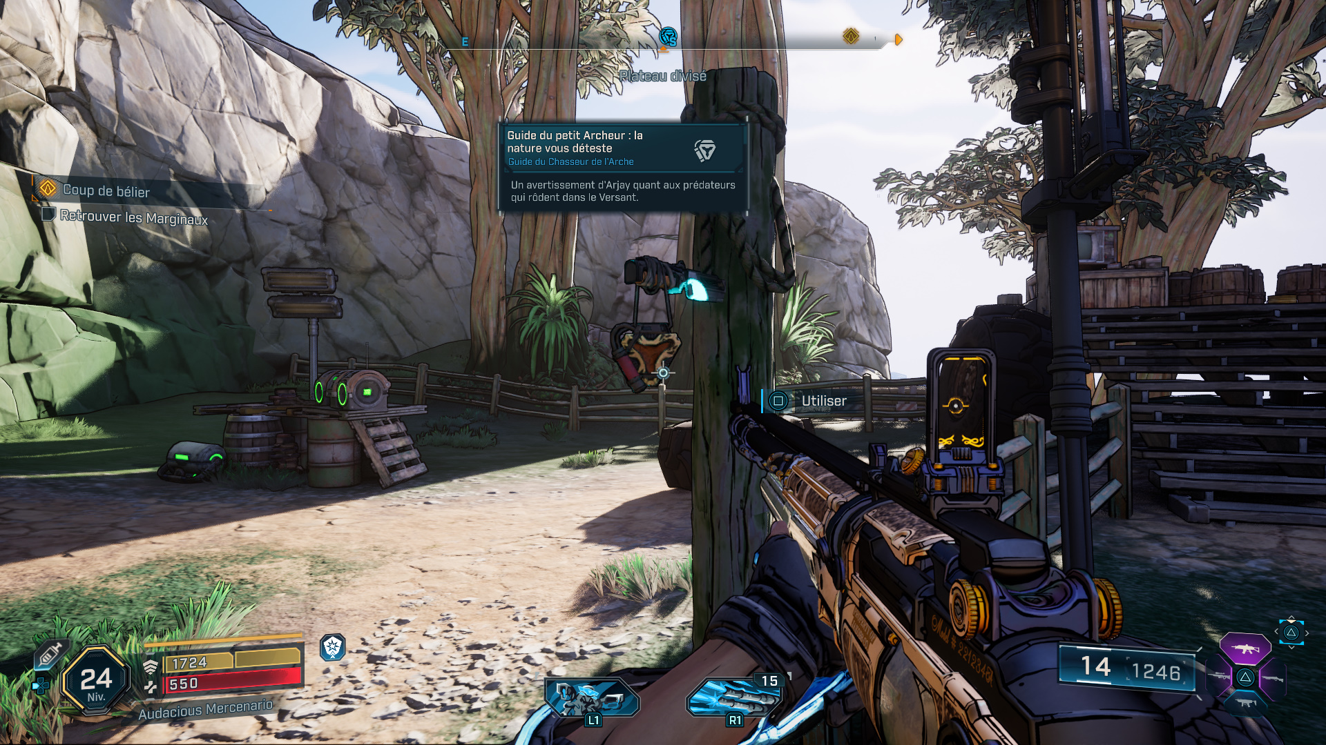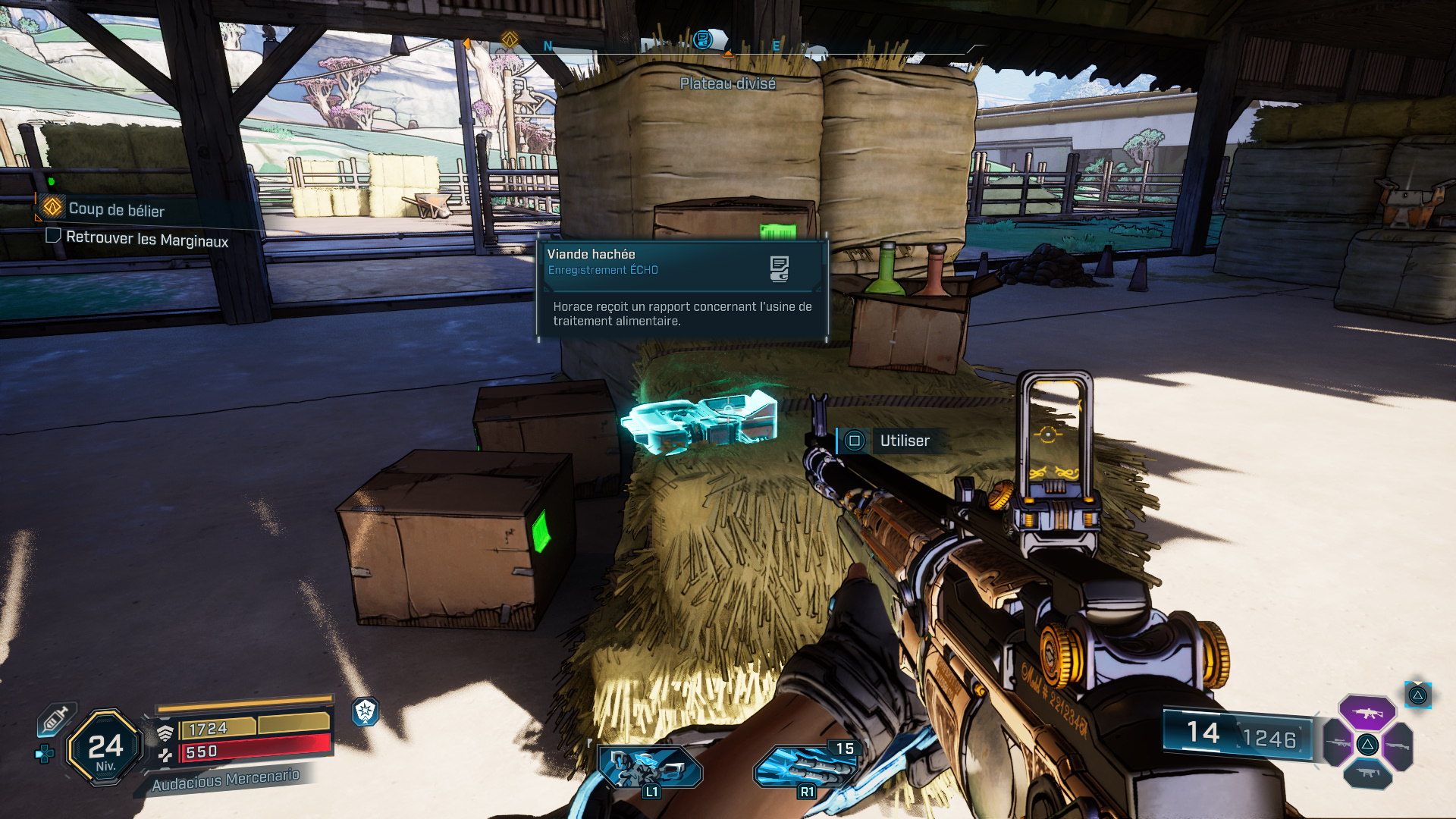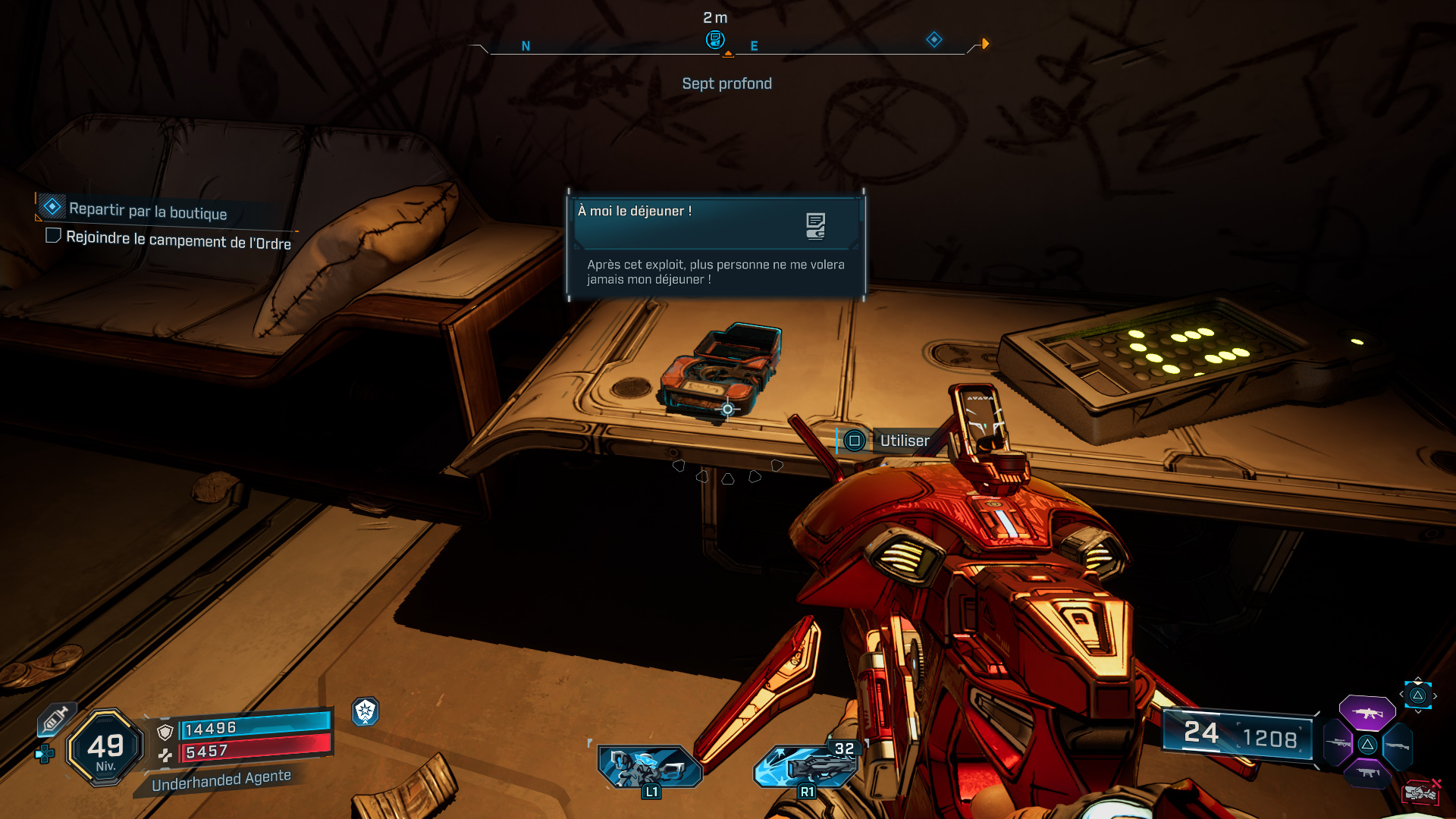 Emplacement : Vers l’est de la région, à l’intérieur de la faille déployée par Francis Lechelou dans le cadre de la mission secondaire « Repartir par la boutique« , sur la caisse tout juste devant vous en arrivant dans la réserve depuis le conduit d’aération.
