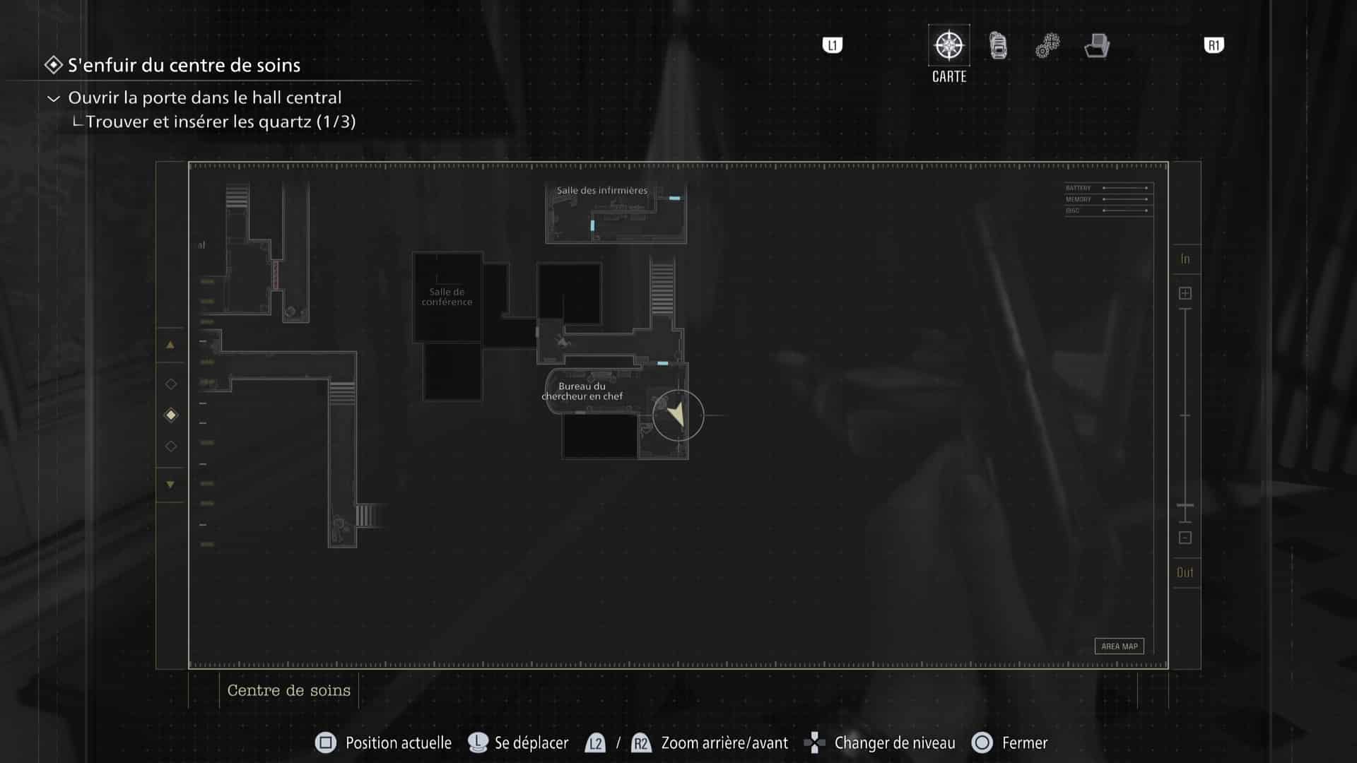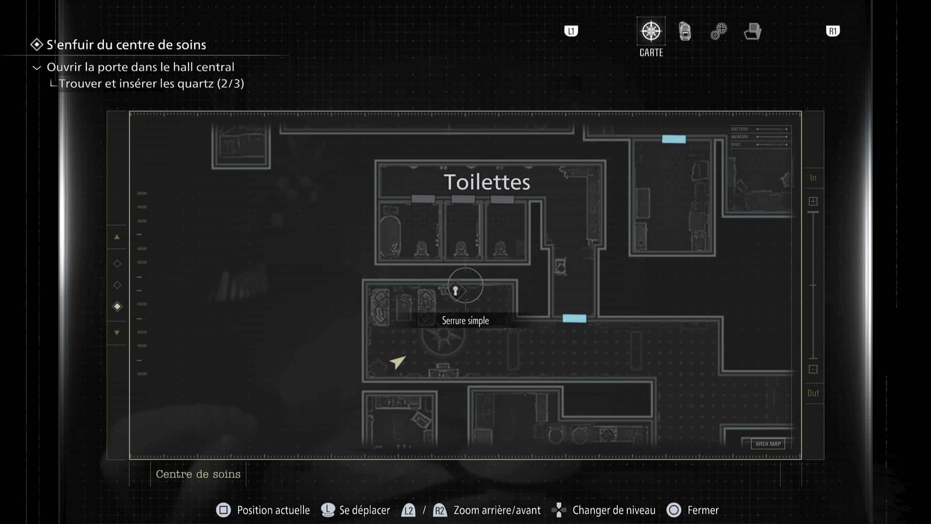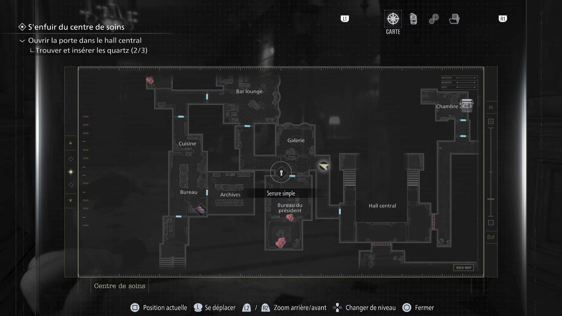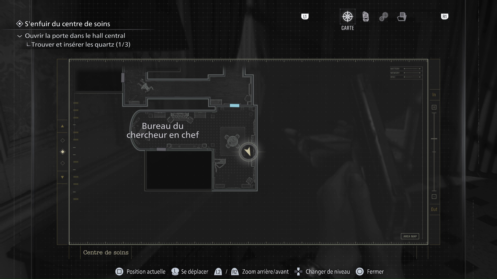 - Emplacement : Un deuxième tiroir à serrure simple se trouve au 1ᵉʳ étage de l’aile ouest du centre de soins, juste à côté de la porte d’entrée du Bureau du président.