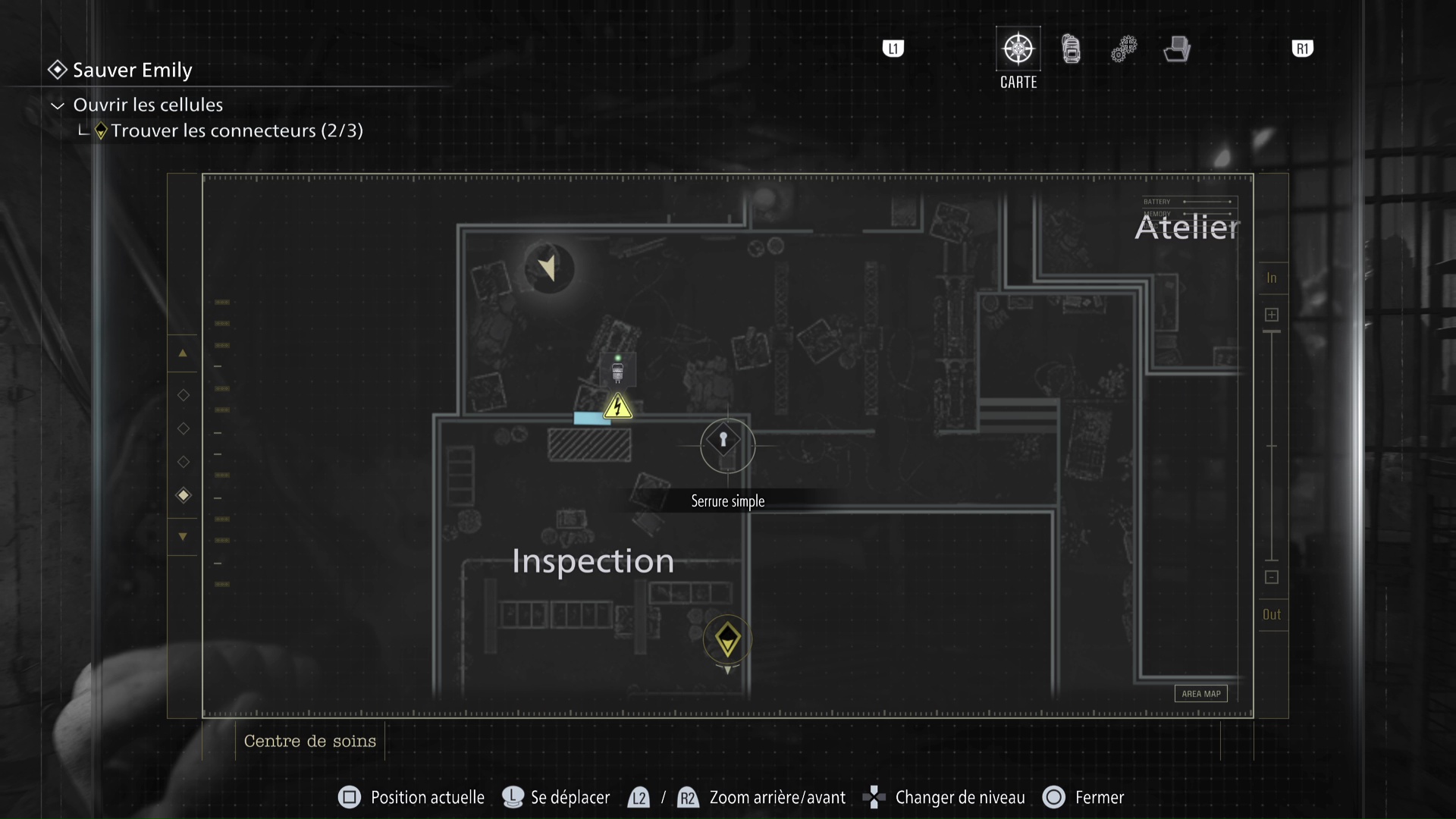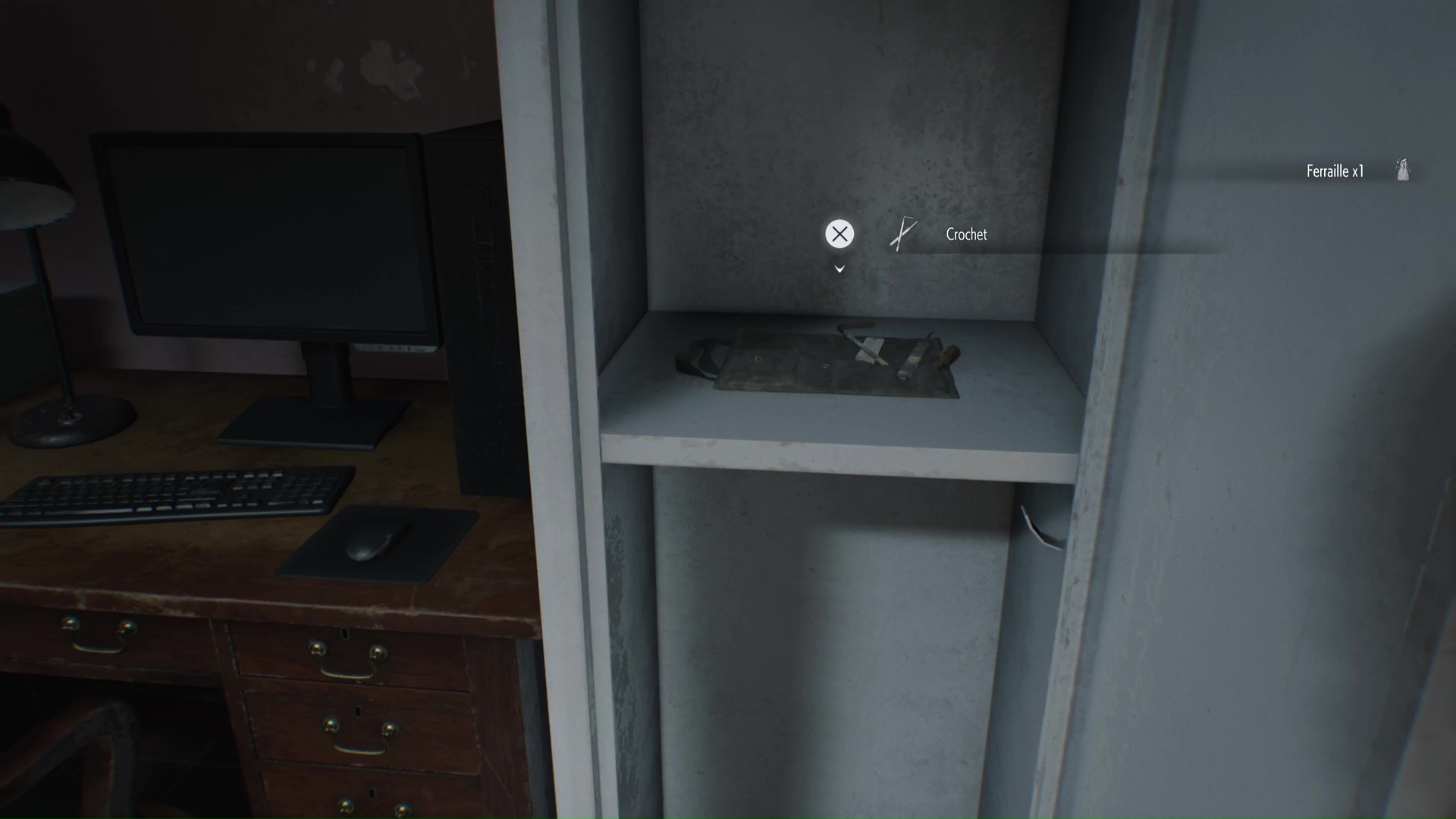 Se lancer dans le crochetage dans Resident Evil Requiem n’impose aucun mini-jeu particulier. En possession d’un crochet, il suffit d’interagir avec une serrure, de sélectionner l’outil, et le tour est joué. Il existe très exactement cinq crochets pour cinq serrures donc, à la différence d’un The Last of Us, nul besoin de calculer ses ressources pour déverrouiller tiroirs et casiers.