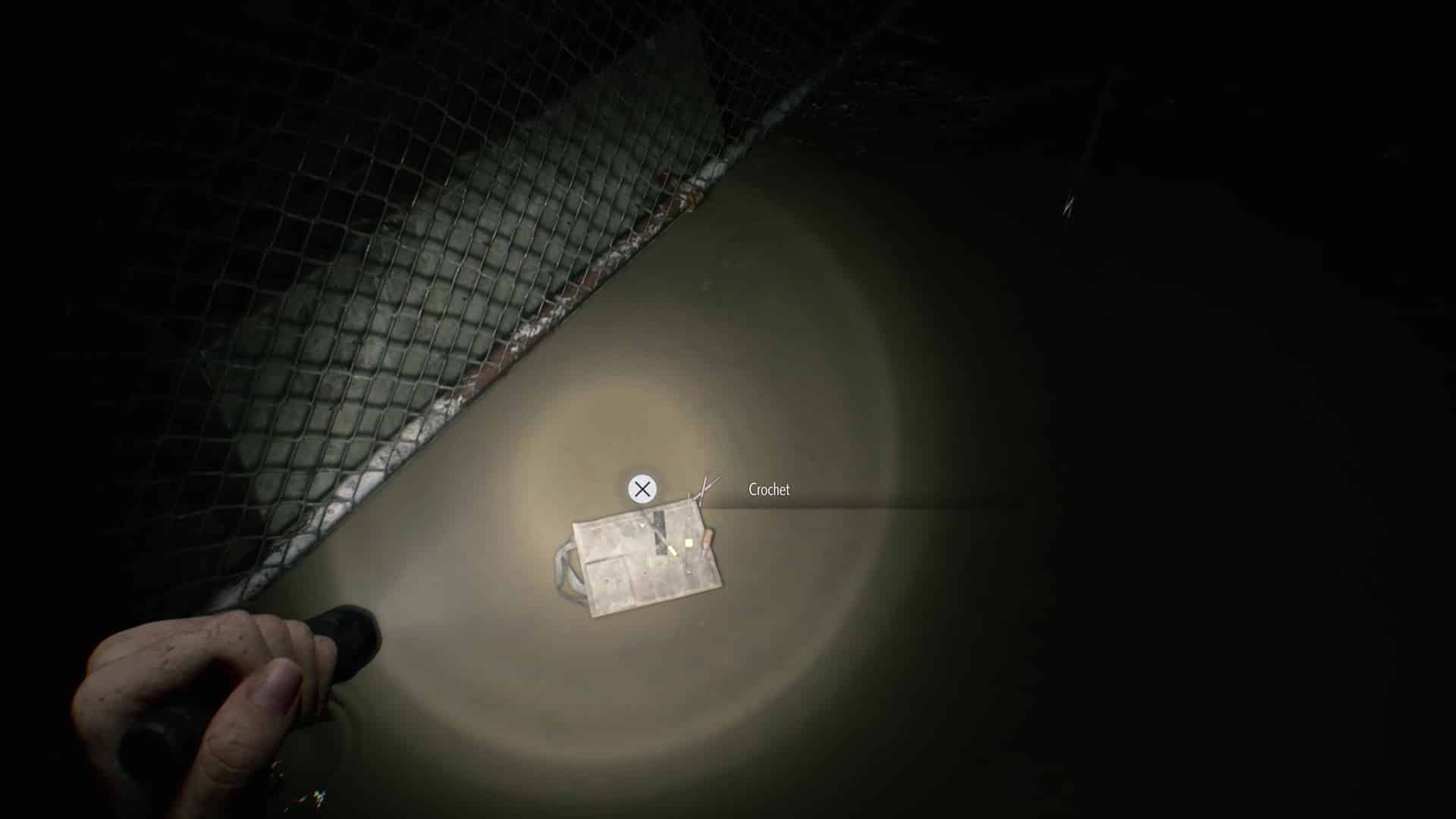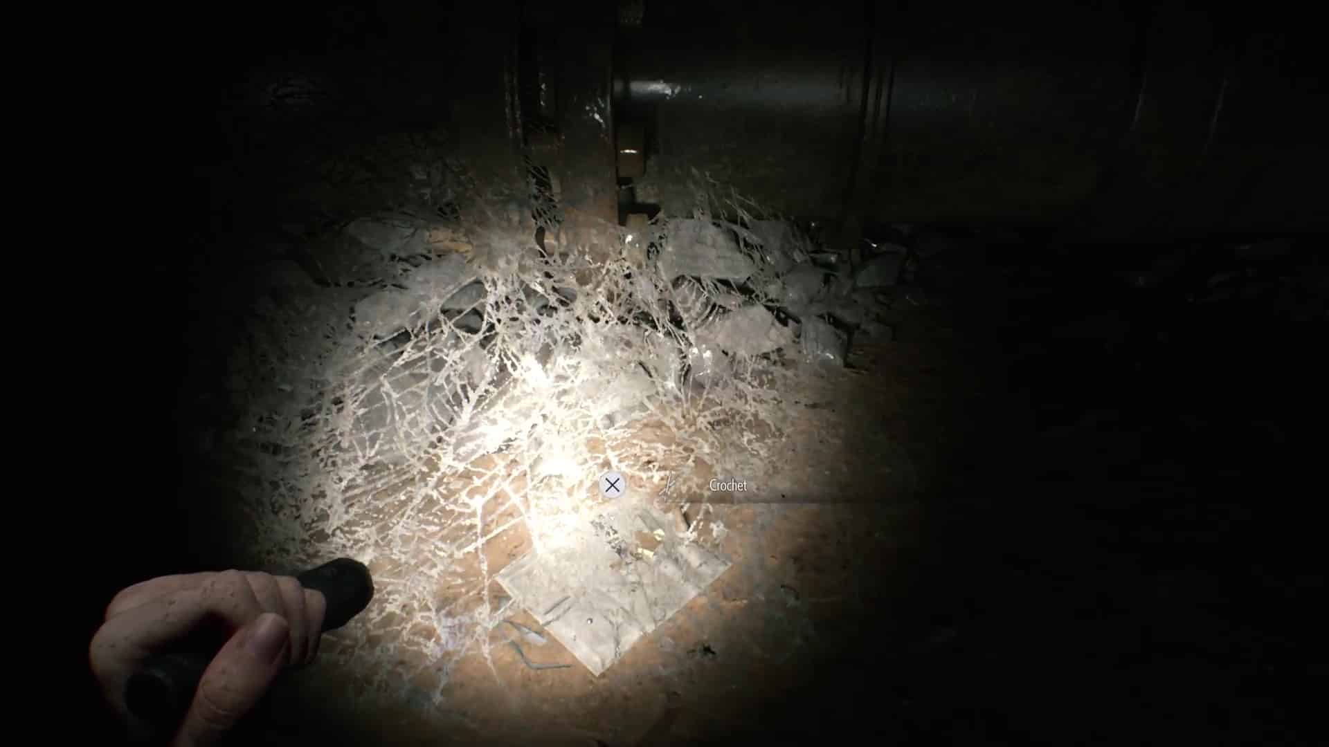 - Emplacement : Dernier crochet accessible au niveau du sous-sol du centre de soins de Rhodes Hill, il faut se rendre dans la salle du transpalette et du deuxième connecteur. Le crochet se trouve dans la ventilation au niveau du sol. Vous pouvez y accéder directement depuis cette zone ou bien passer par l’Atelier près des cellules, en déboulonnant la grille avec la clé en T. Quel que soit le moyen pour y accéder, le crochet vous attend dans un coin, caché par de la toile d’araignée.