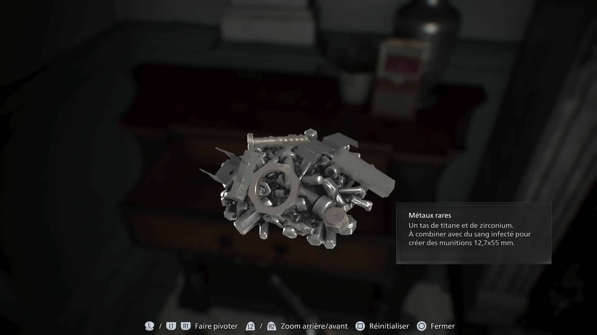 Notez qu’un meuble crocheté apporte toujours comme récompense une portion de métaux rares. Couplée à du sang, une dose de métaux rares vous permet de créer deux balles de Requiem. Un matériau extrêmement précieux, donc.