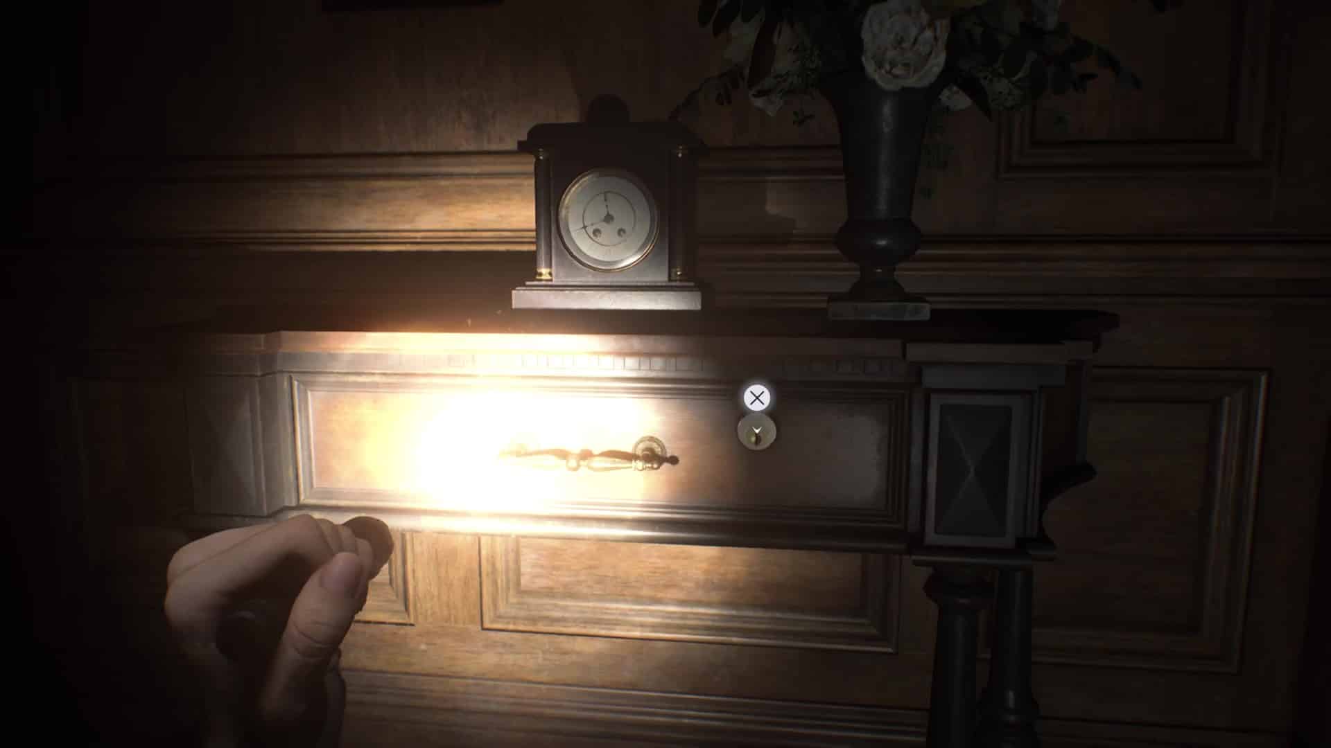 - Emplacement : Le premier tiroir à serrure simple que vous pouvez croiser se situe juste après la Cuisine du rez-de-chaussée du centre de soins de Rhodes Hill. Dans le couloir passant devant les Toilettes, allez au bout pour arriver à cul-de-sac. Le tiroir vous attend sur votre droite.