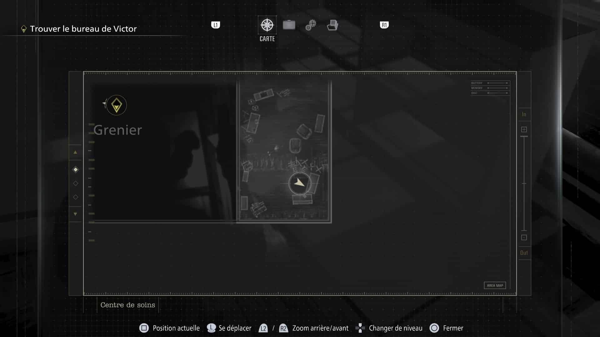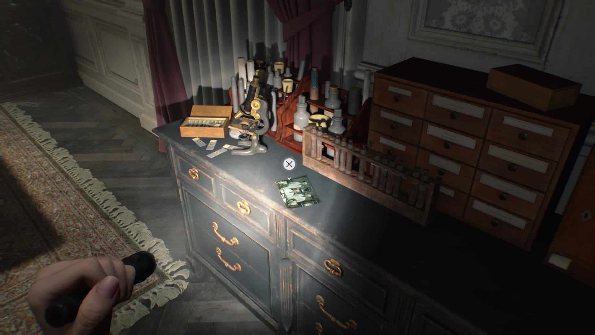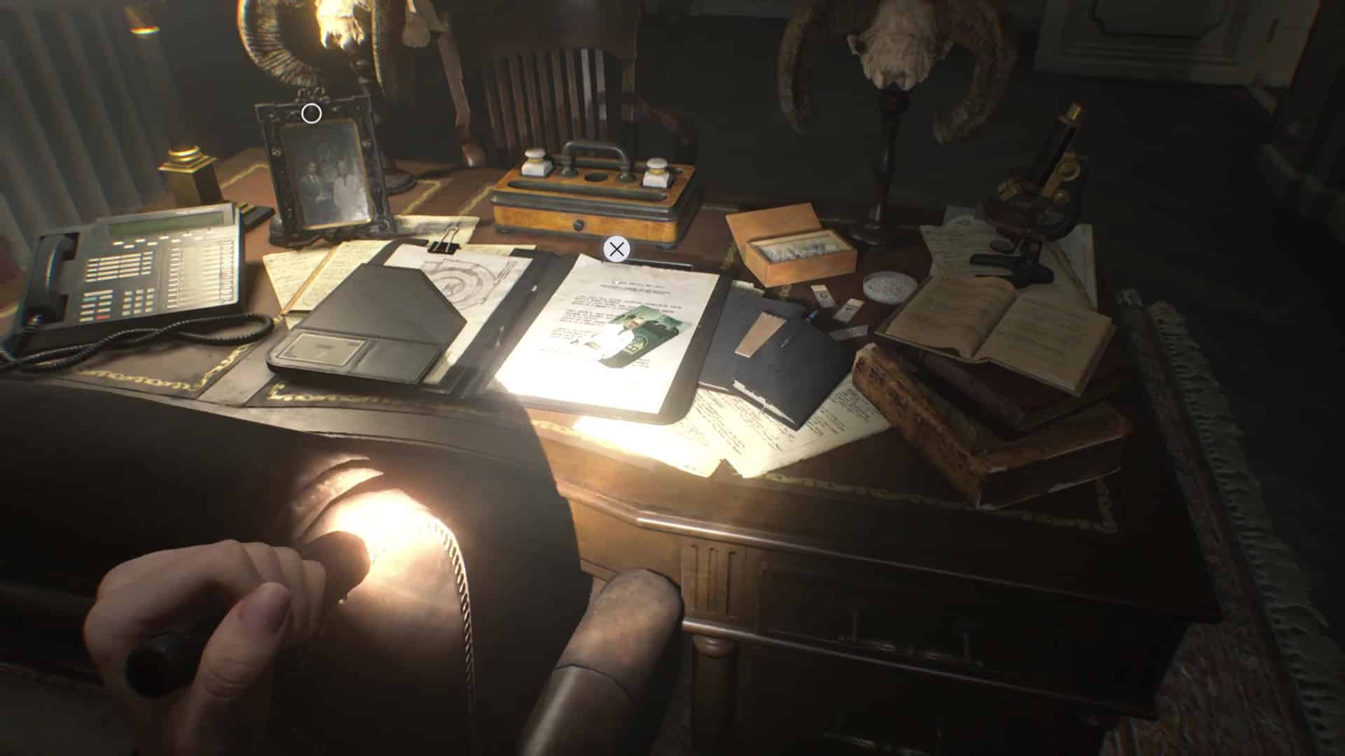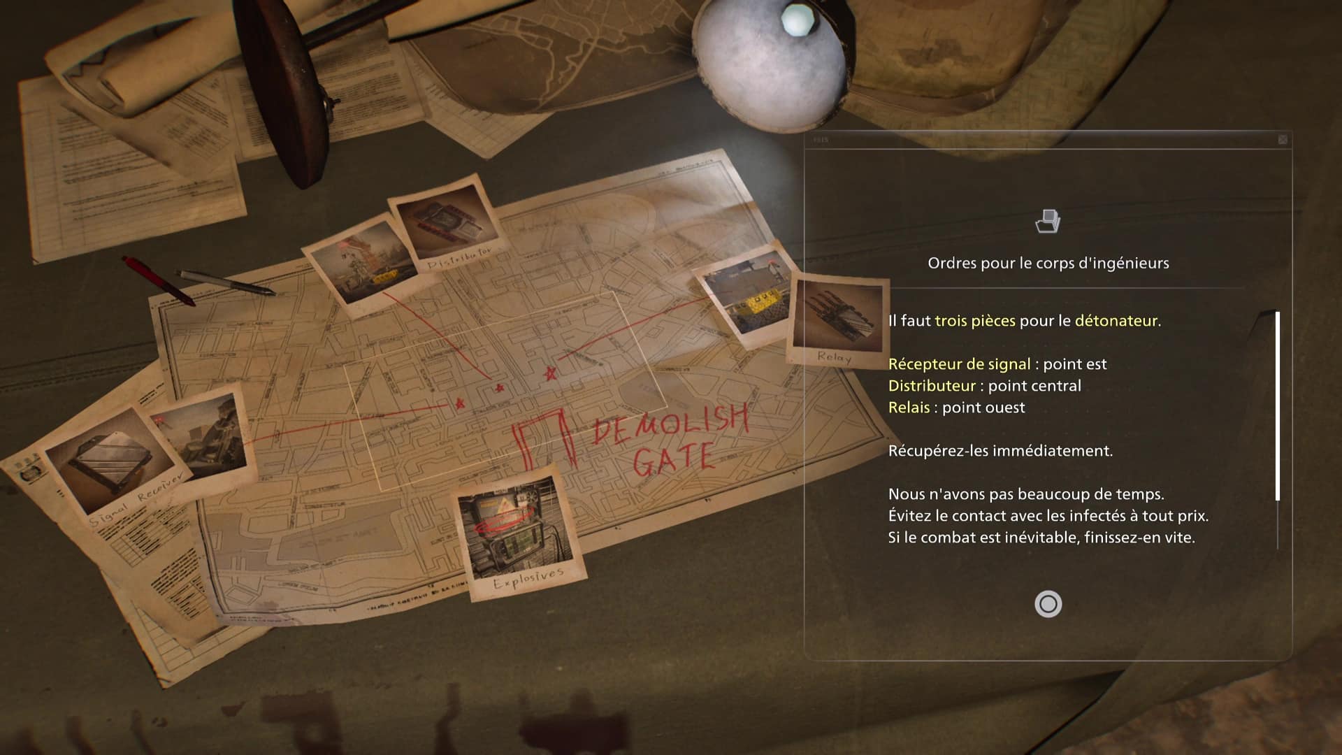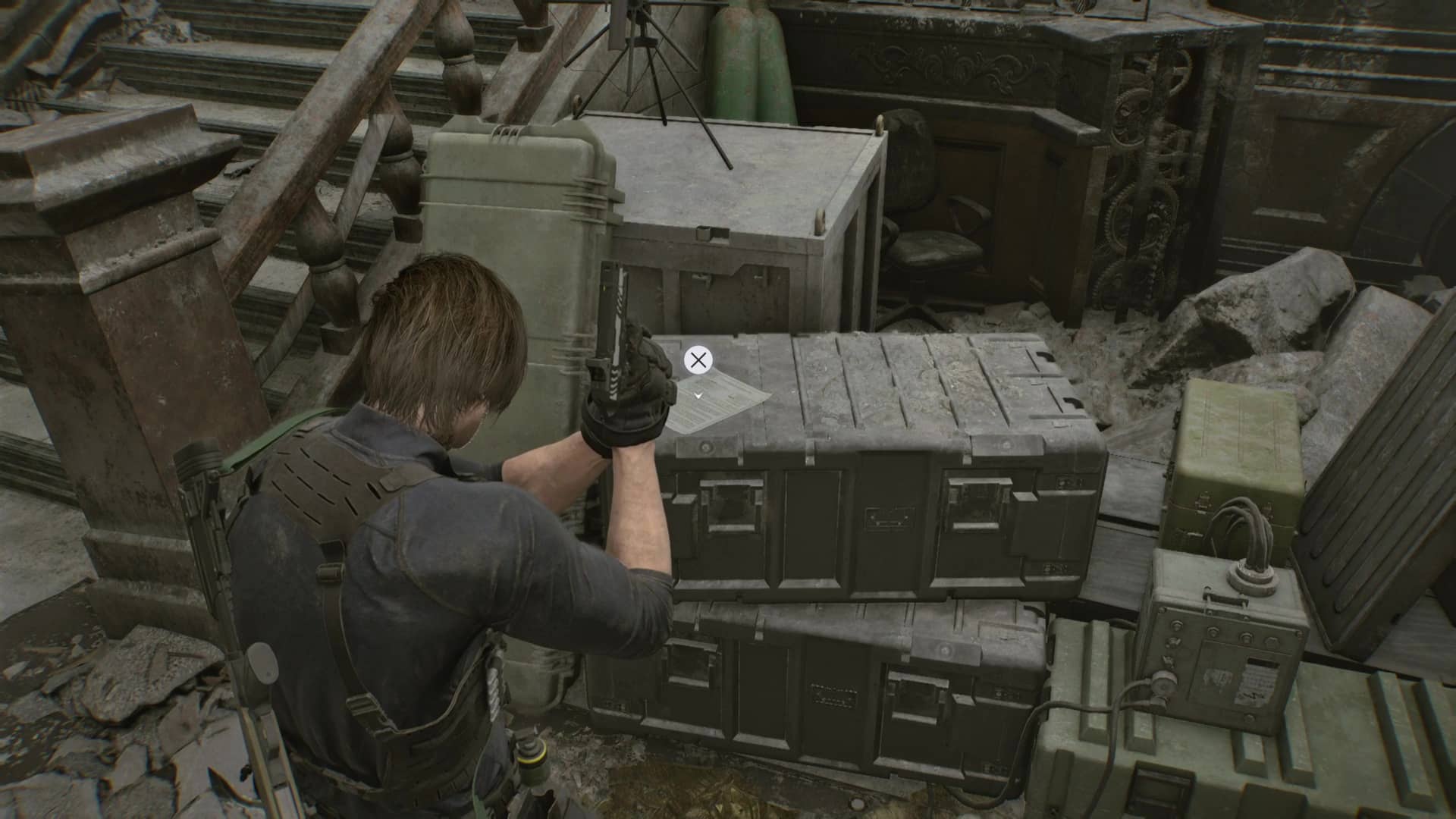 - Emplacement : Peu de temps après avoir repris le contrôle de Leon et AVANT de soulever un meuble pour vous faufiler dans le Grenier, tournez la tête vers la gauche pour trouver le document sur un bureau.
