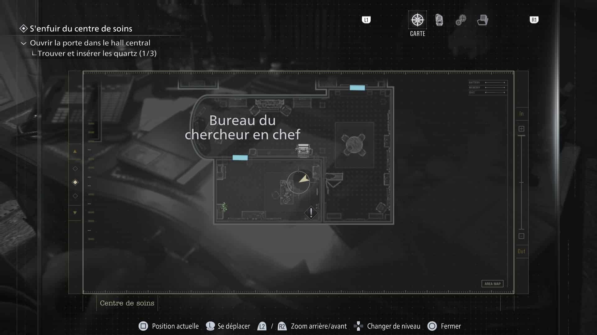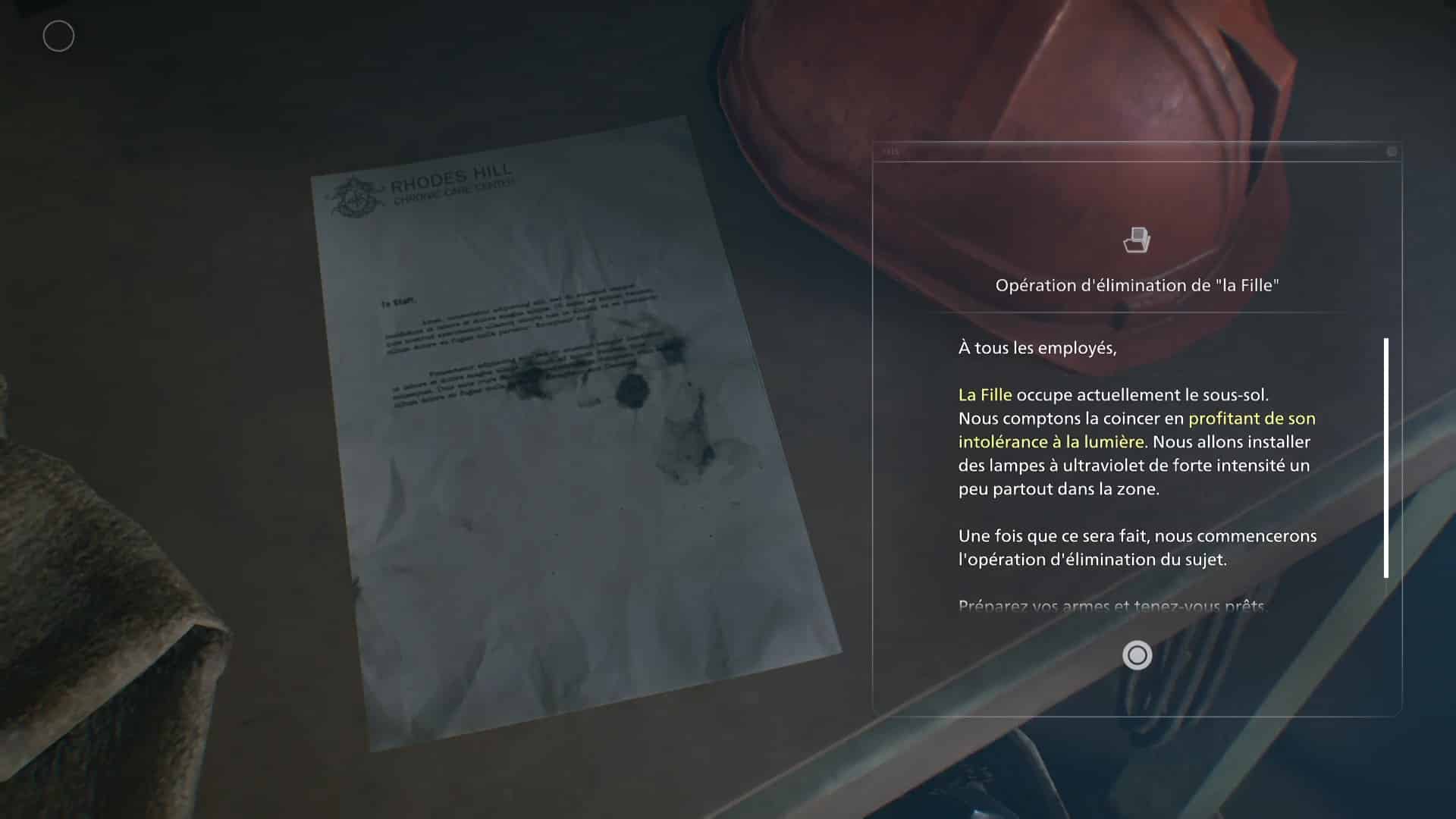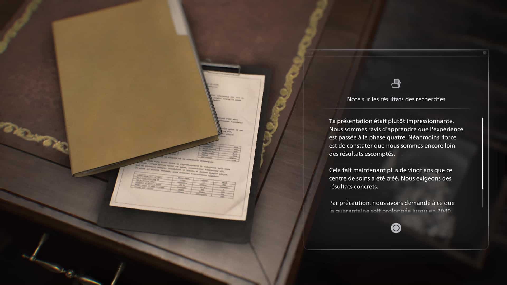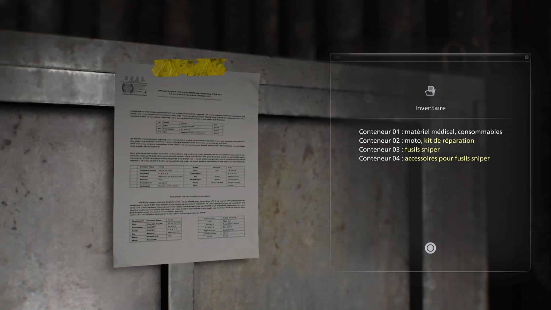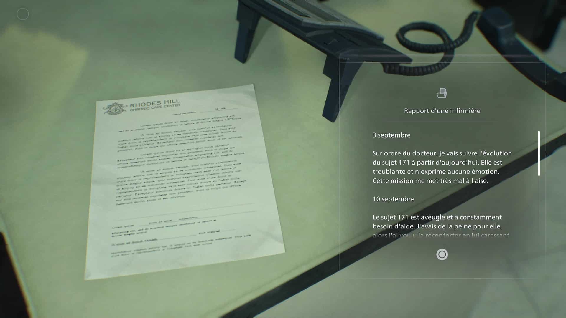 - Emplacement : Le document vous attend sur un bureau dans la Salle de sécurité, là où se trouve le point de sauvegarde de la zone.