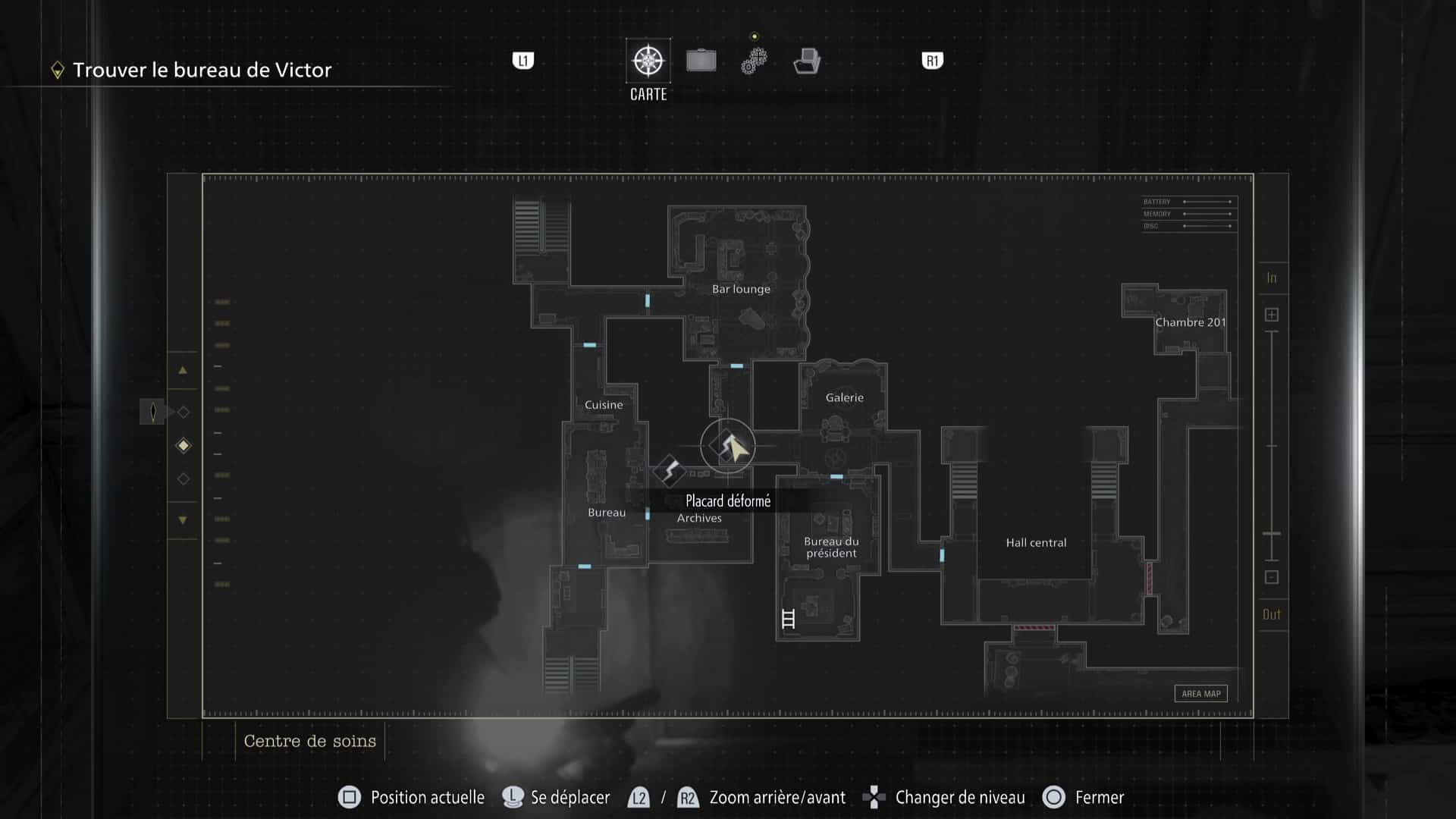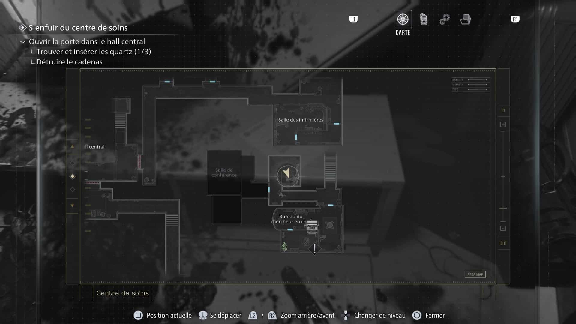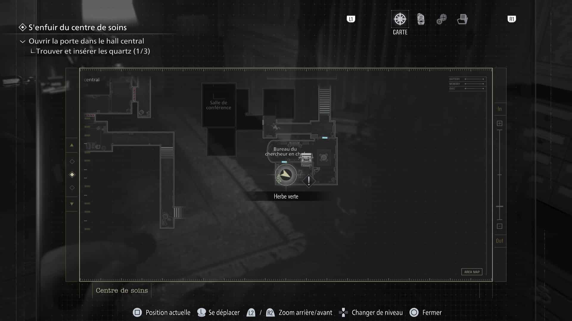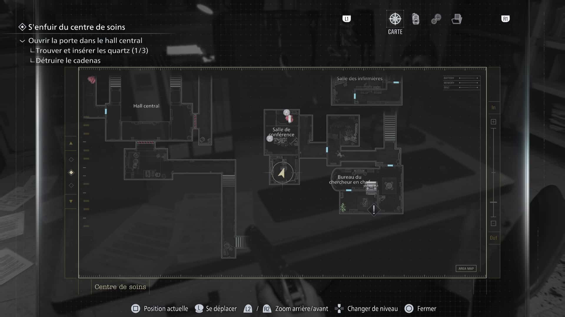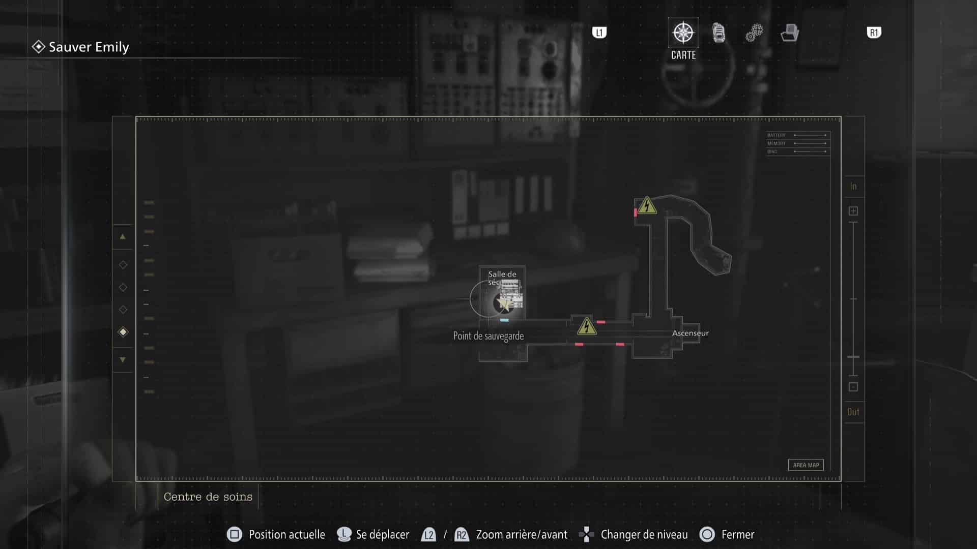 - Emplacement : En entrant dans la Salle du personnel, où se trouve le premier point de sauvegarde de la zone, il s’agit de l’écran sur le mur de droite.