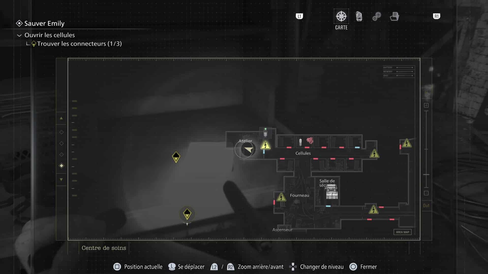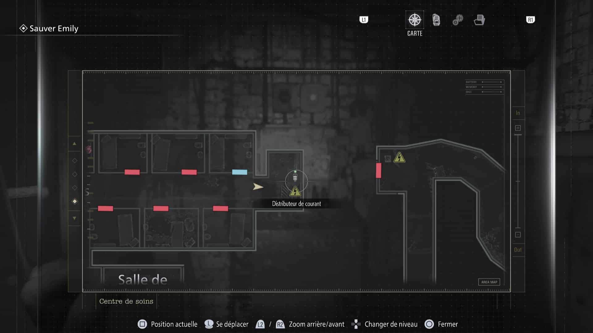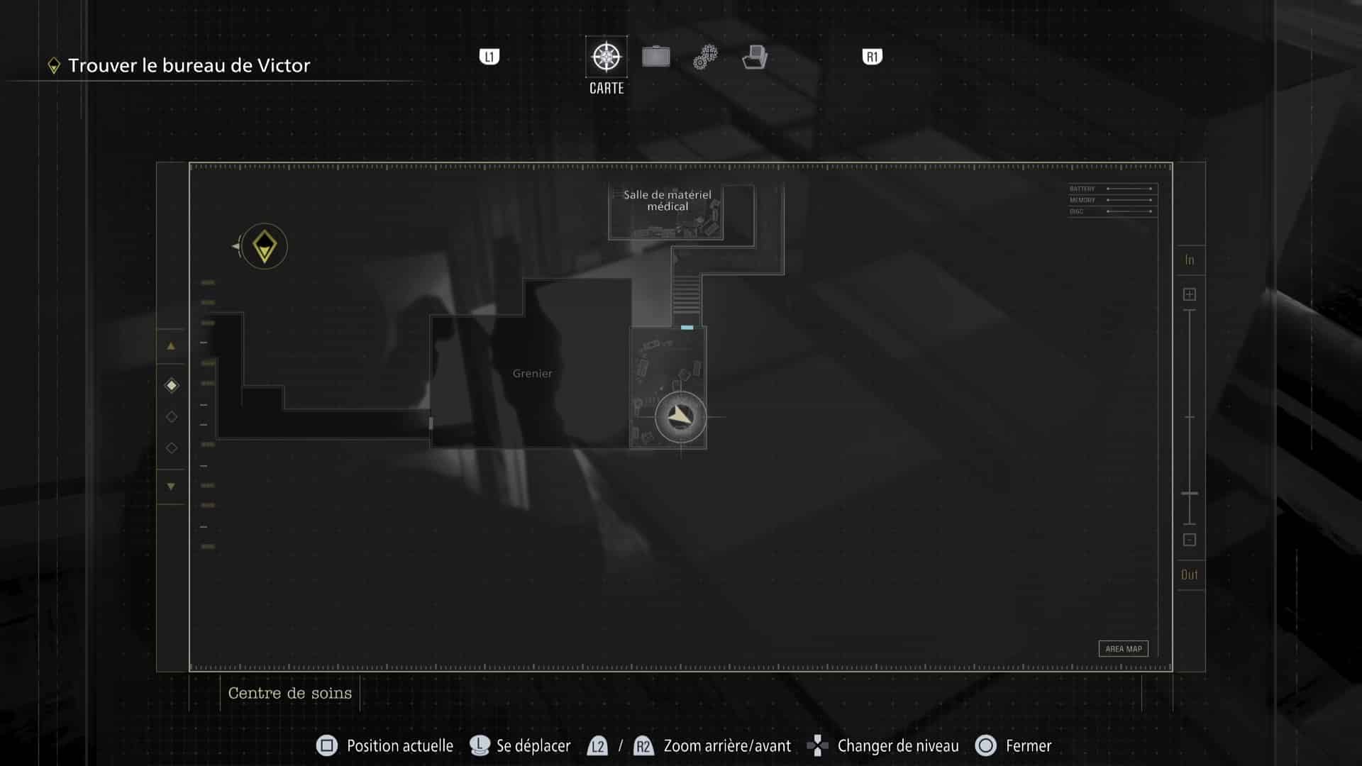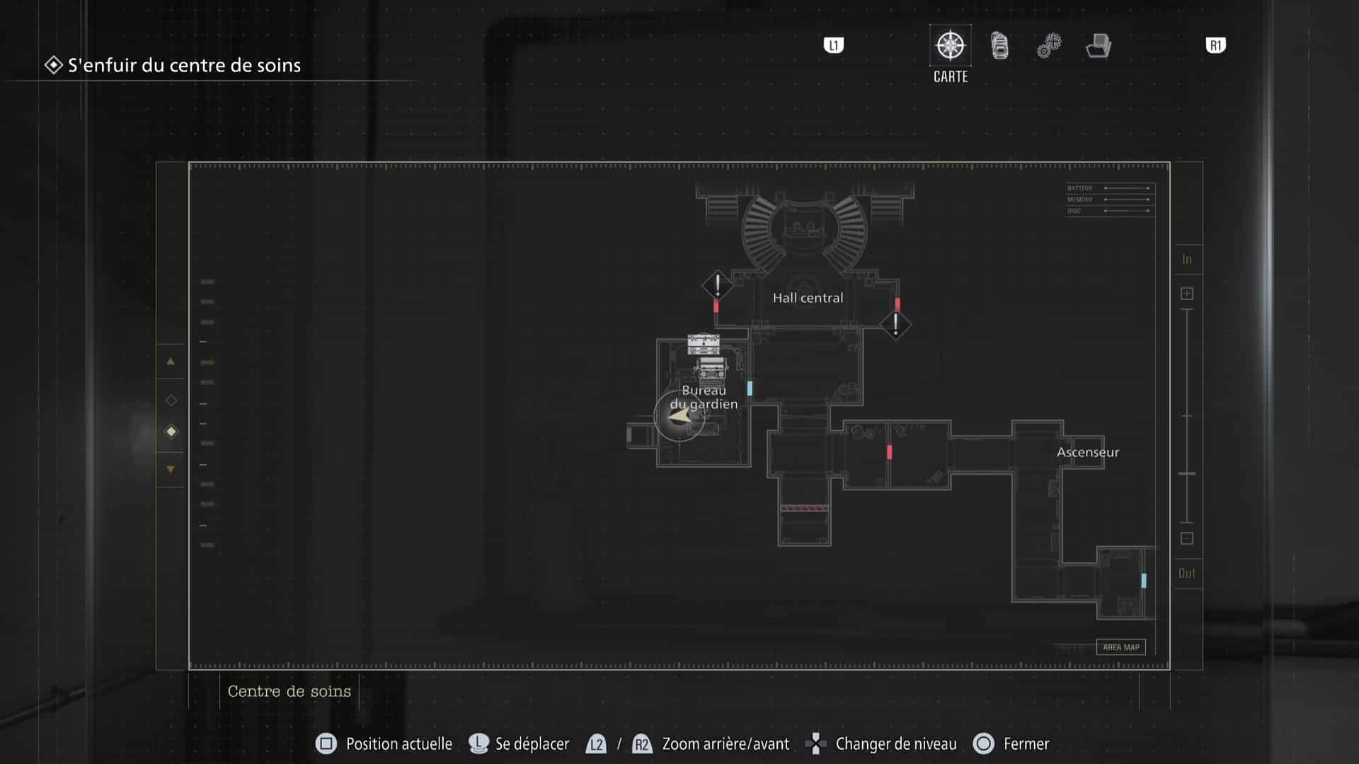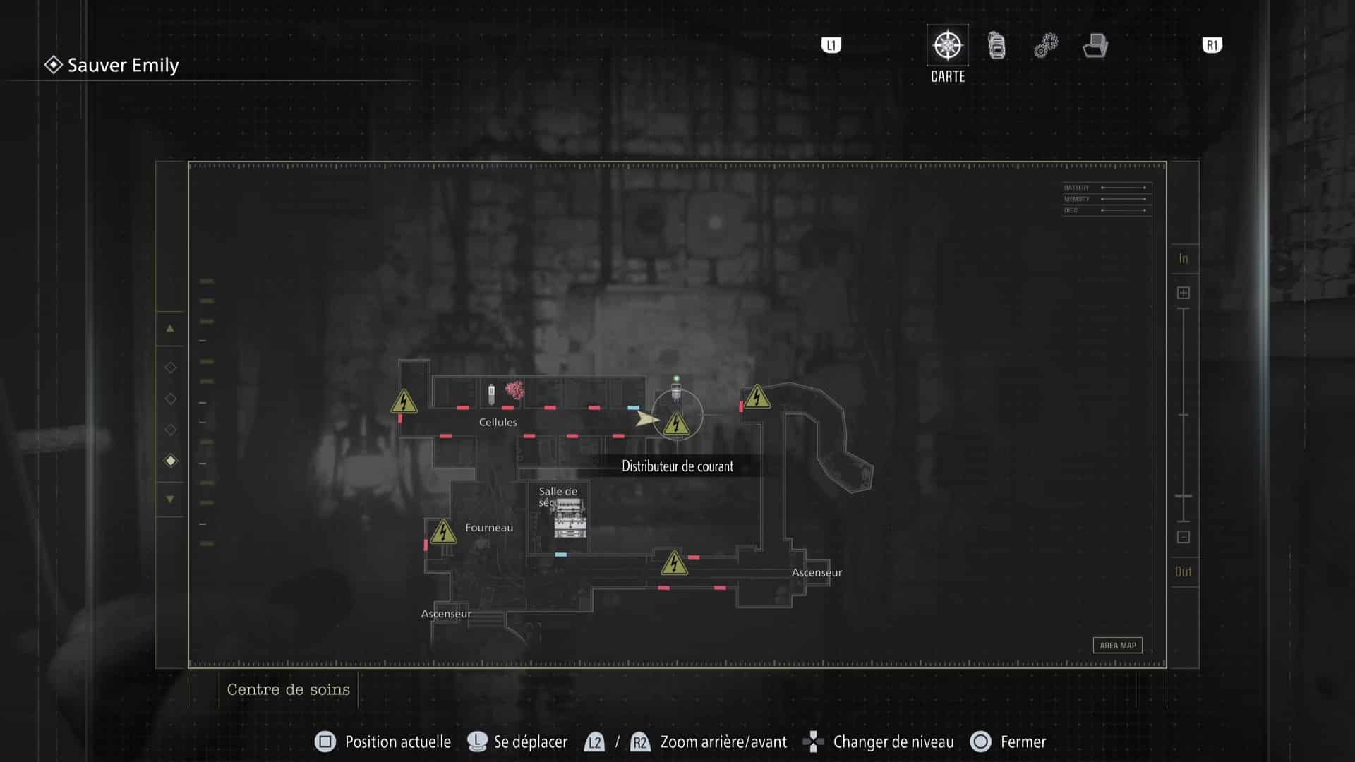 - Emplacement : En entrant dans la Salle du personnel, où se trouve le premier point de sauvegarde de la zone, il s’agit de l’écran sur le mur de droite.