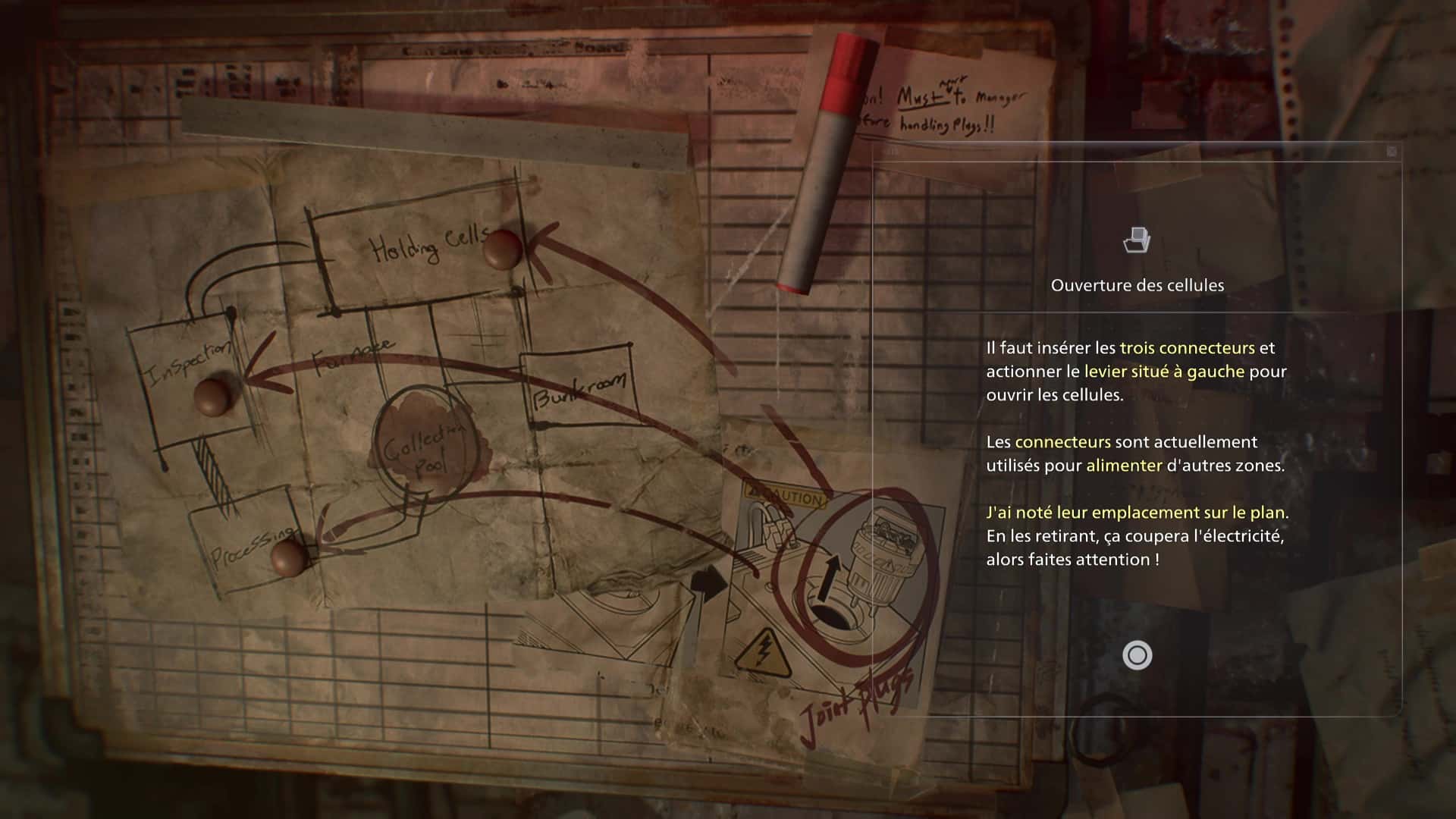 - Emplacement : Au bout du couloir des Cellules, sur le mur au-dessus des emplacements de connecteurs.