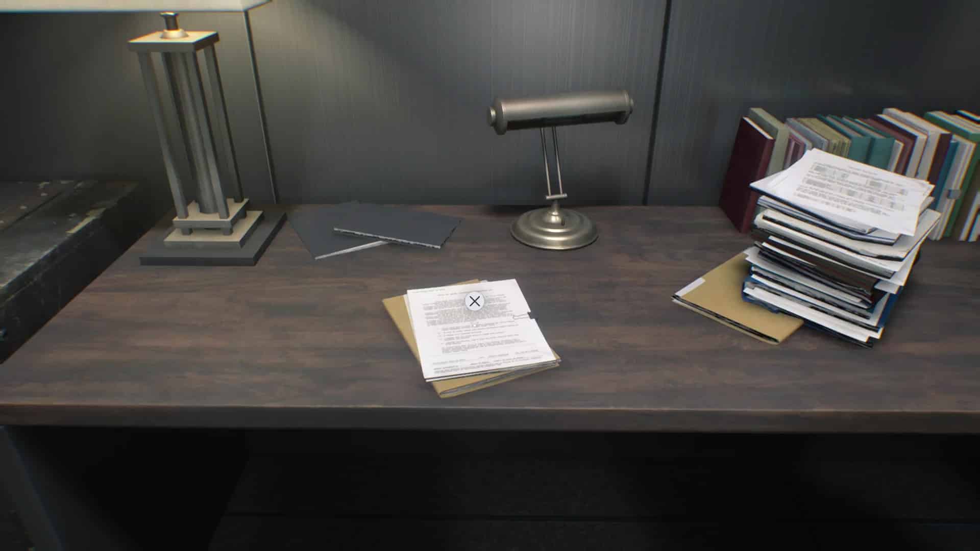 - Emplacement : Une fois Emily mise à l’abri dans la Zone de stockage, dirigez-vous vers le bureau. Le document est posé dessus.