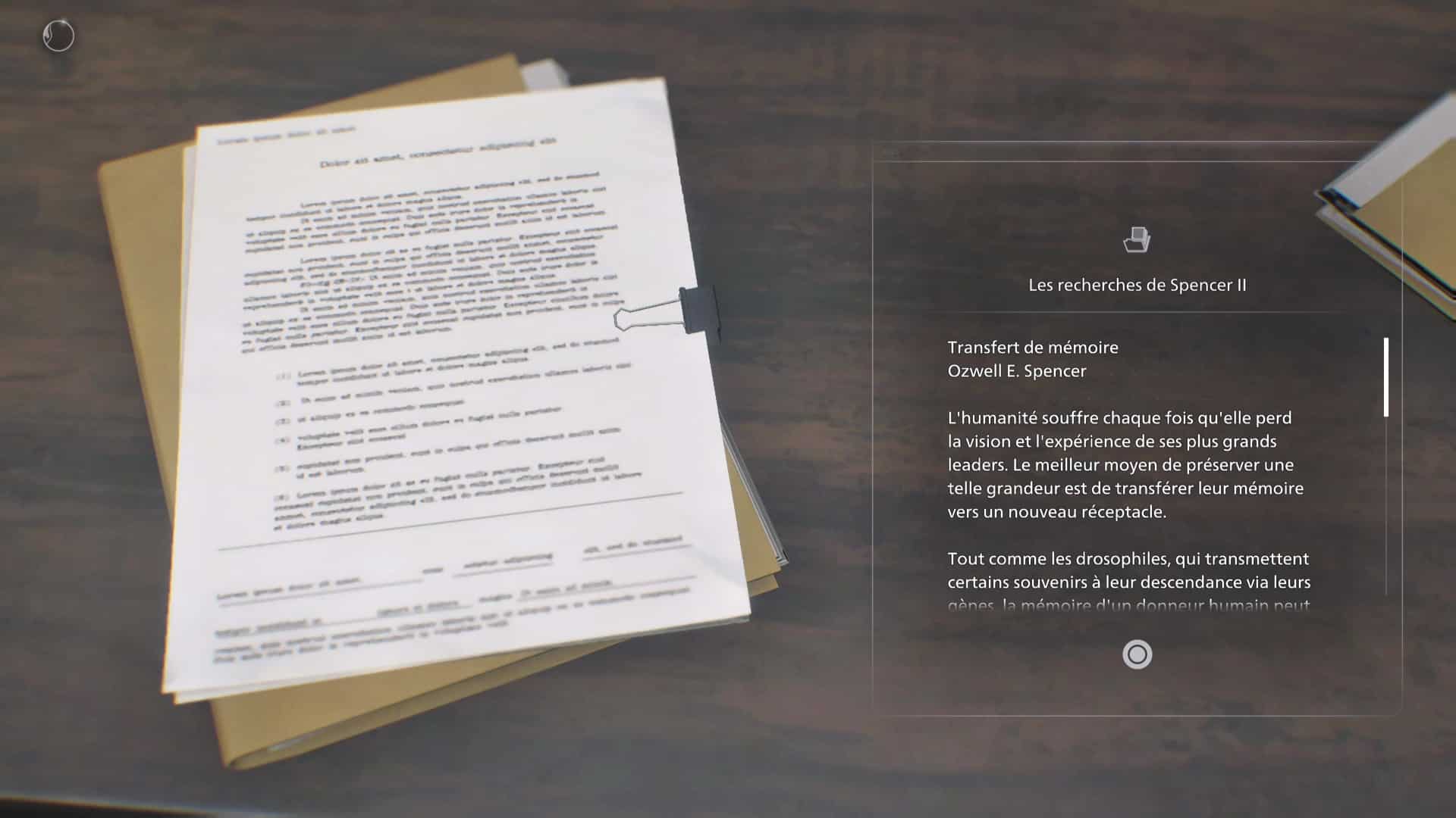 - Emplacement : Après le document précédent, progressez pour pénétrer dans le Salon VIP. Allez au fond de la pièce pour apercevoir un dossier sur le bureau. C’est la note que vous recherchez.