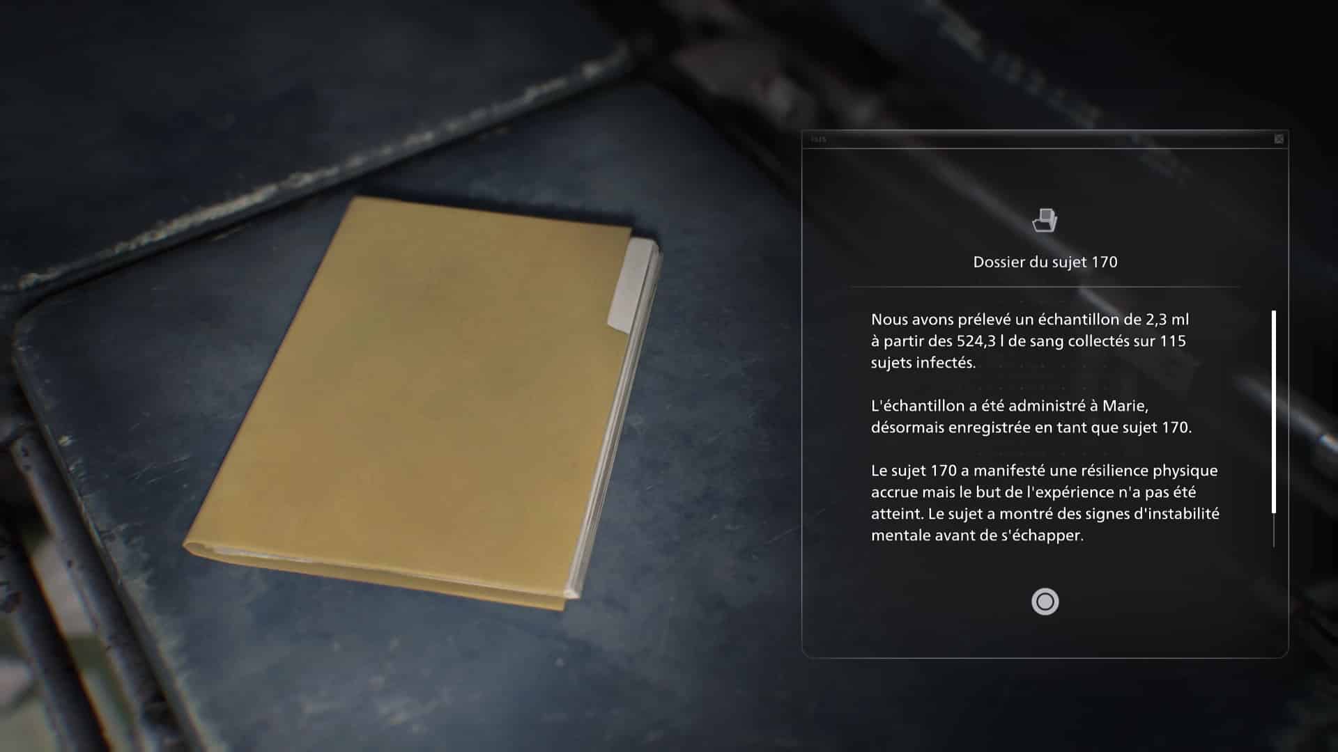 Comme la plupart des jeux de la licence, Resident Evil Requiem nous invite à lire pas mal de documents dans le but d’en apprendre plus sur les enjeux du scénario ou de découvrir des informations et secrets directement liés à celles et ceux qui les rédigent. Hormis ce que vous apprendrez sur chacun d’entre eux, dont parfois de précieuses combinaisons de coffre, récupérer tous les documents du jeu vous donnera le trophée/succès 🏆 Affaire classée.