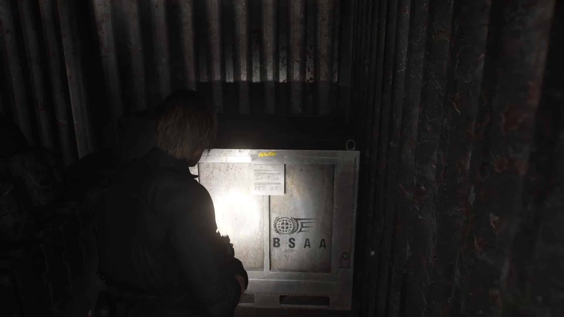 - Emplacement : Après avoir assisté à la cinématique de la mise à mort du groupe de soldats BSAA, entrez dans le conteneur juste à côté d’eux. Le document est sur une caisse BSAA.
