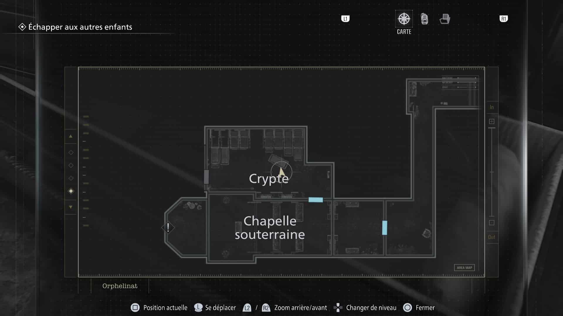 - Emplacement : En arrivant dans la Crypte, interagissez avec le cercueil. Une carte repose au fond. Ramassez-la, faites-la pivoter puis lisez la carte pour valider le document.