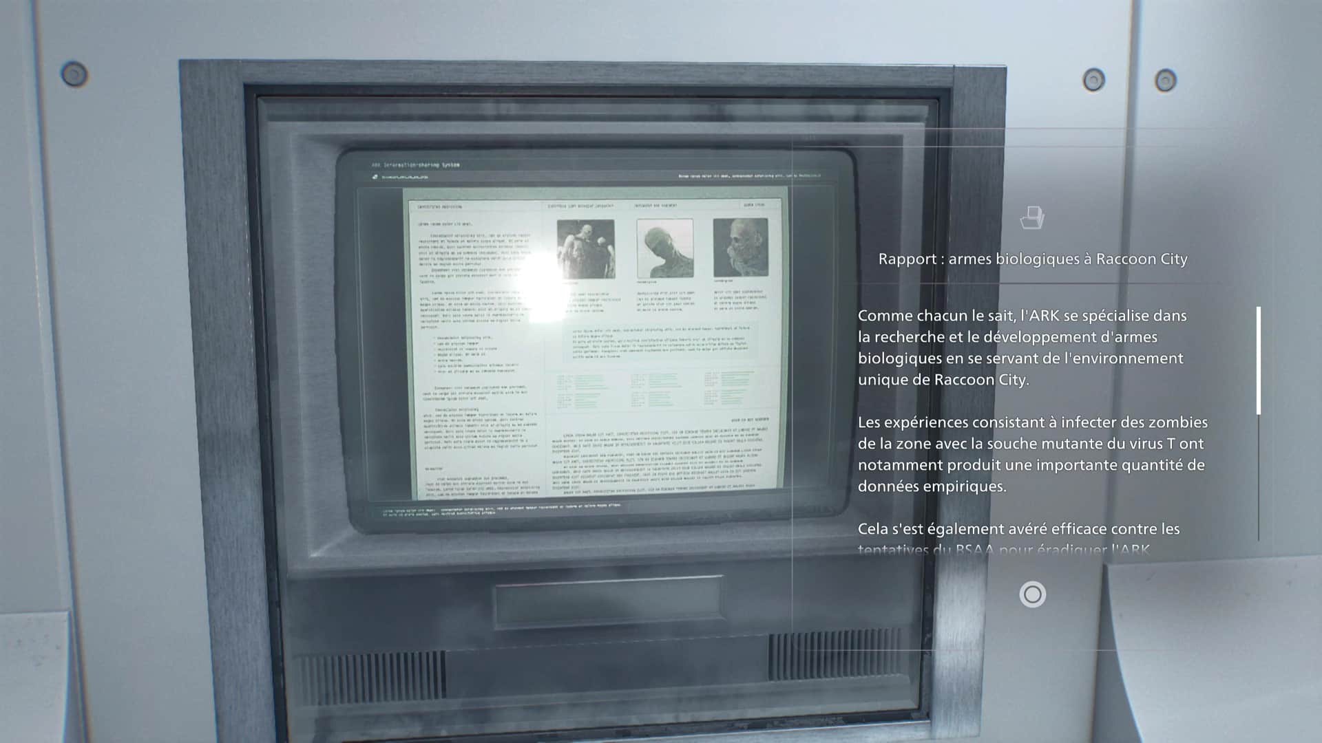 10 documents sont à récupérer dans la zone de l’ARK, dont 1 obtenu automatiquement. Les séquences de Leon et de Grace sont indépendantes l’une de l’autre. Pensez donc bien à tout ramasser avant d’aller plus loin dans le scénario avec chaque personnage.