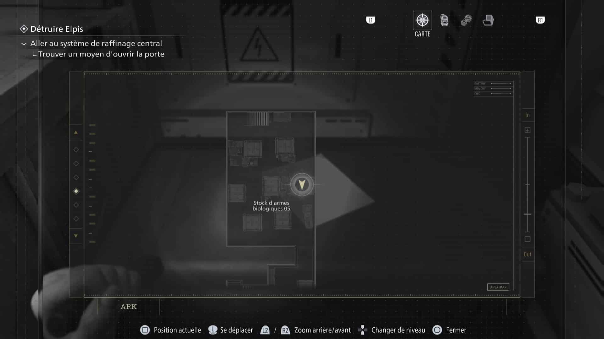 - Emplacement : Dans la salle Stock d’armes biologiques 05, vous trouverez le document dans un conteneur situé au milieu de la pièce, le plus à droite lorsque vous regardez la carte.