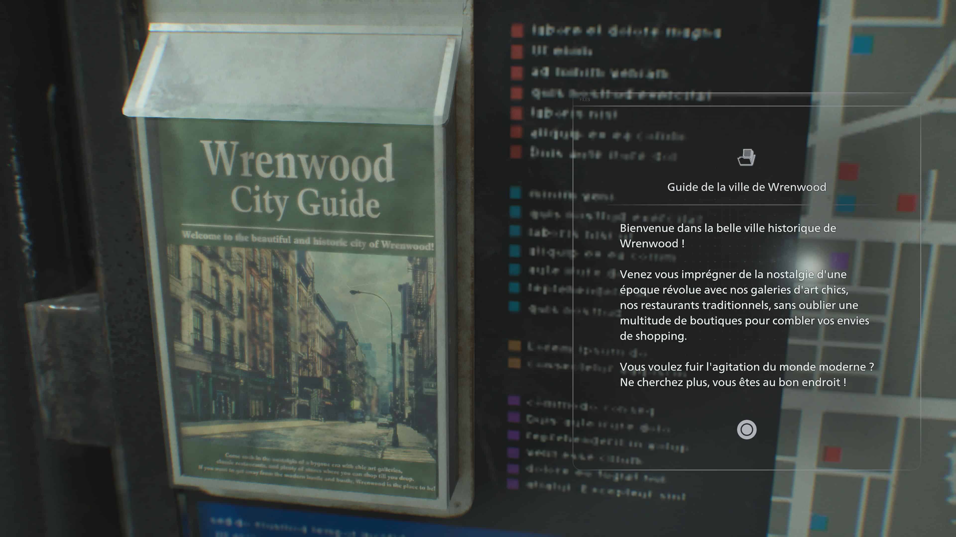 - Emplacement : Disponible uniquement après la séquence souvenir de l’orphelinat. Une fois la course-poursuite avec le Tyran terminée, retournez-vous pour voir la brochure posée sur un banc capitonné.