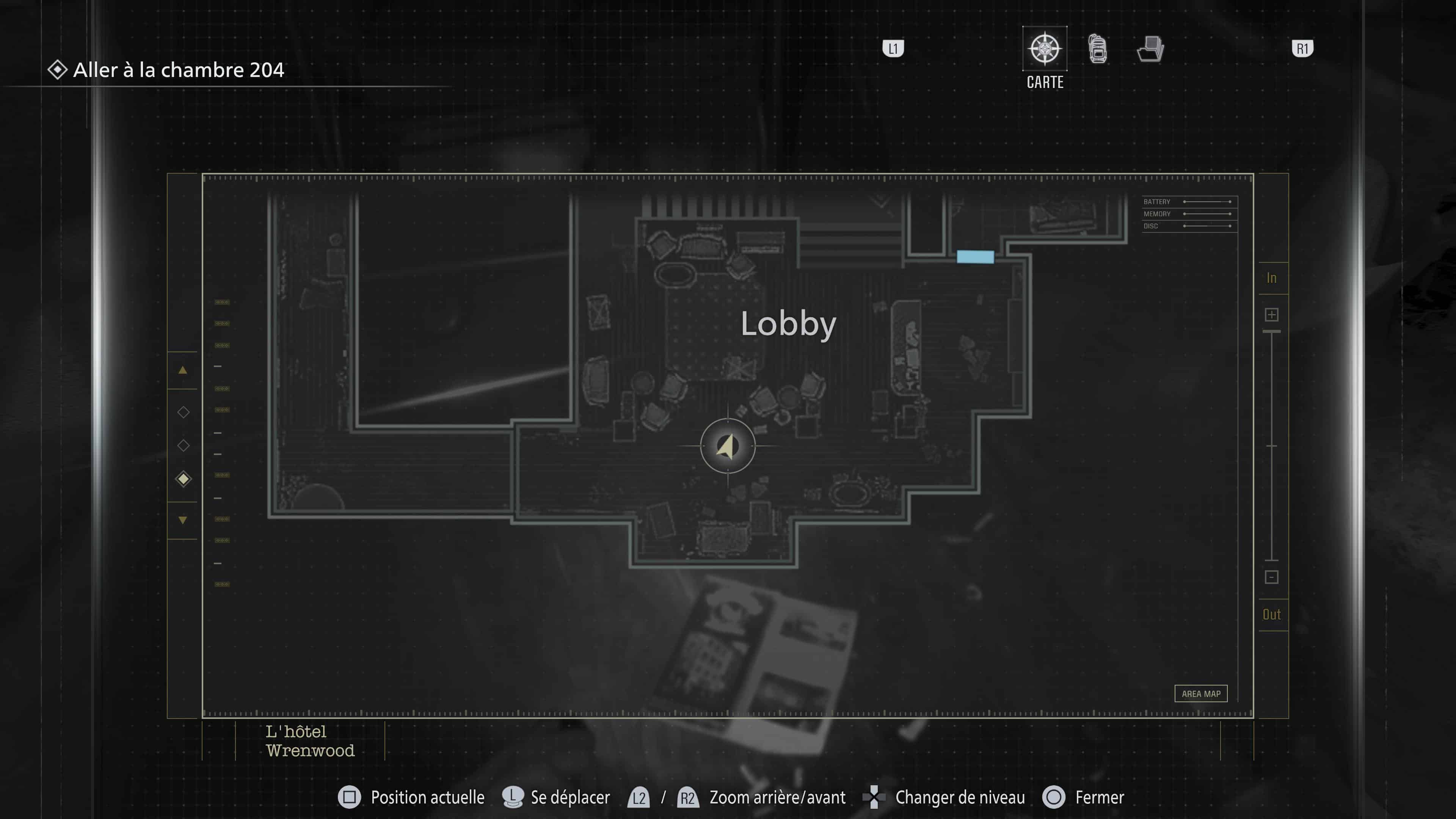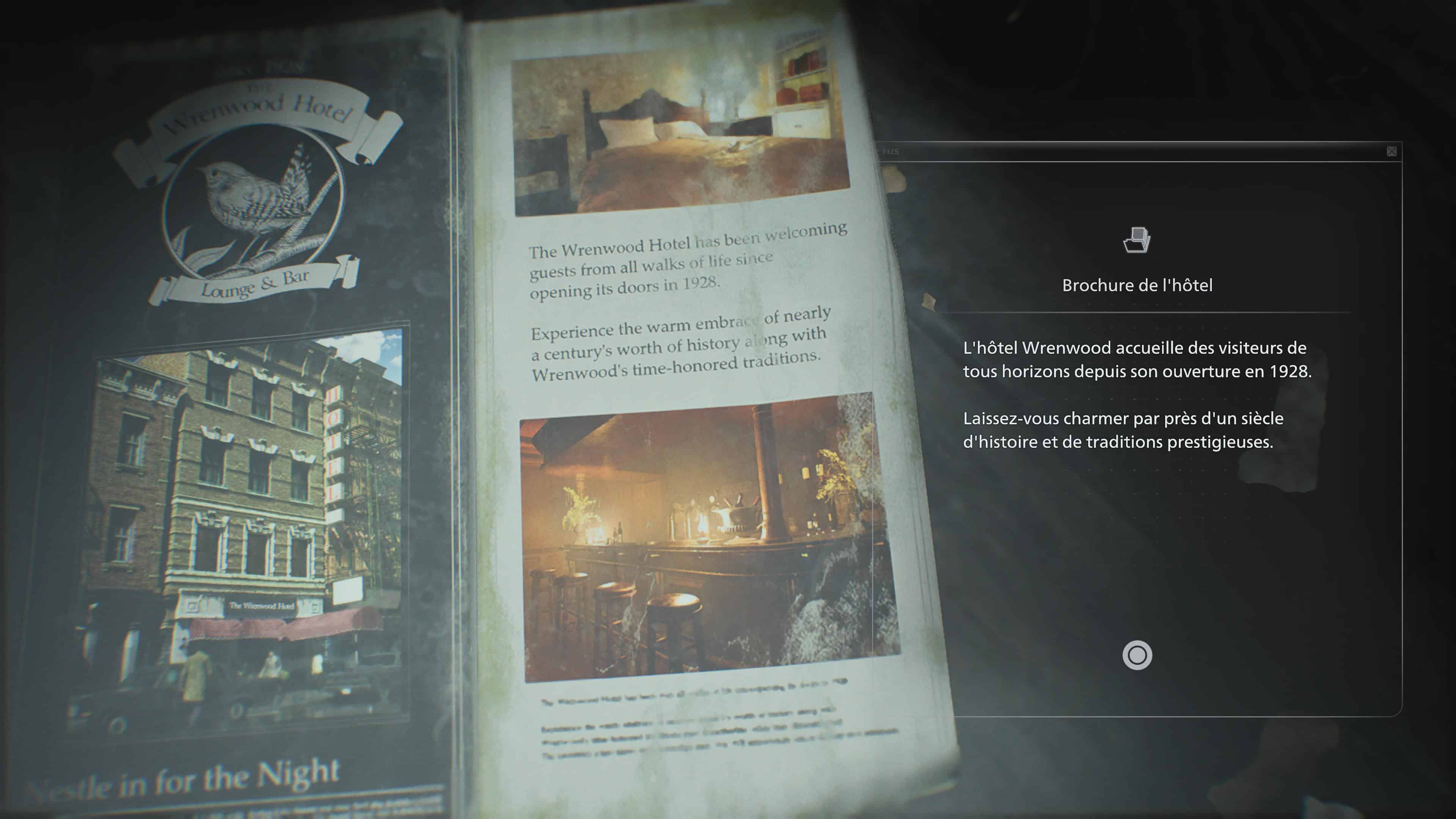 - Emplacement : En entrant dans le Lobby après avoir traversé le couloir au rideau pris dans un courant d’air, regardez par terre, près d’un chariot, la brochure se trouve au sol.