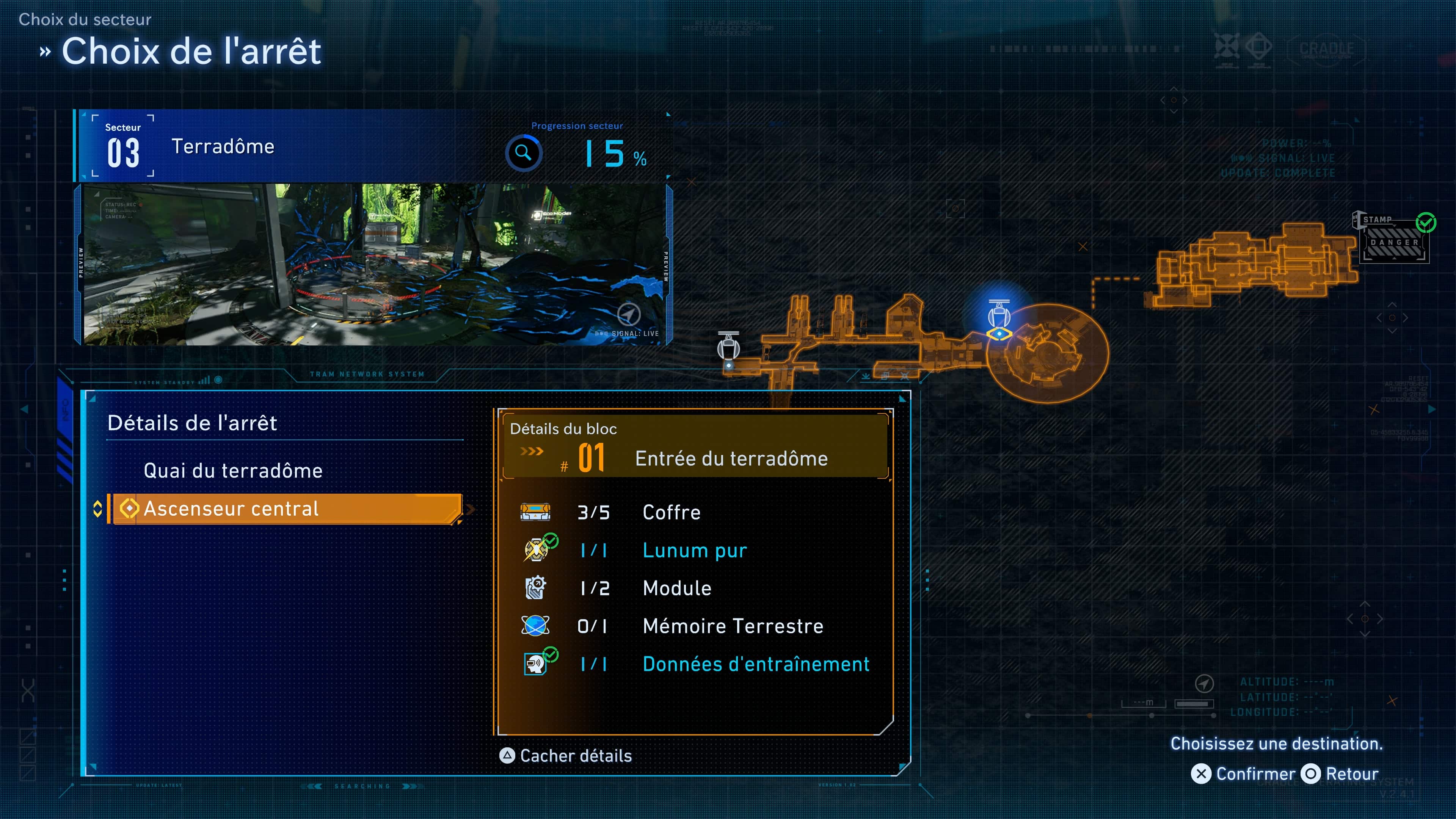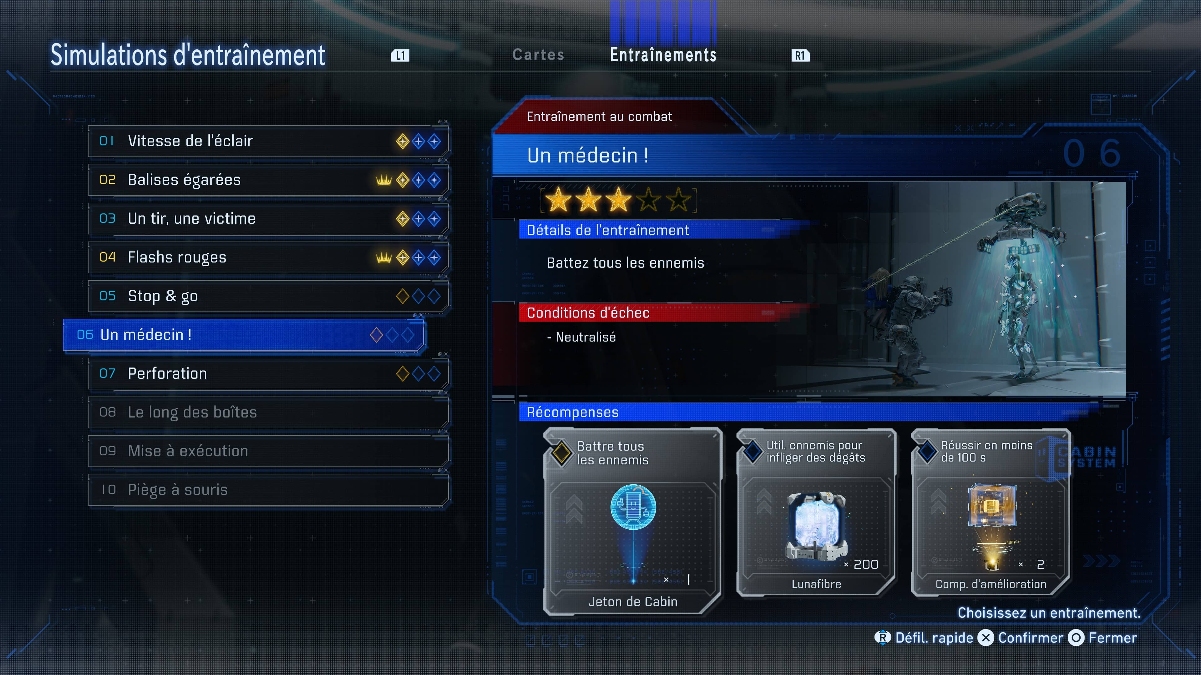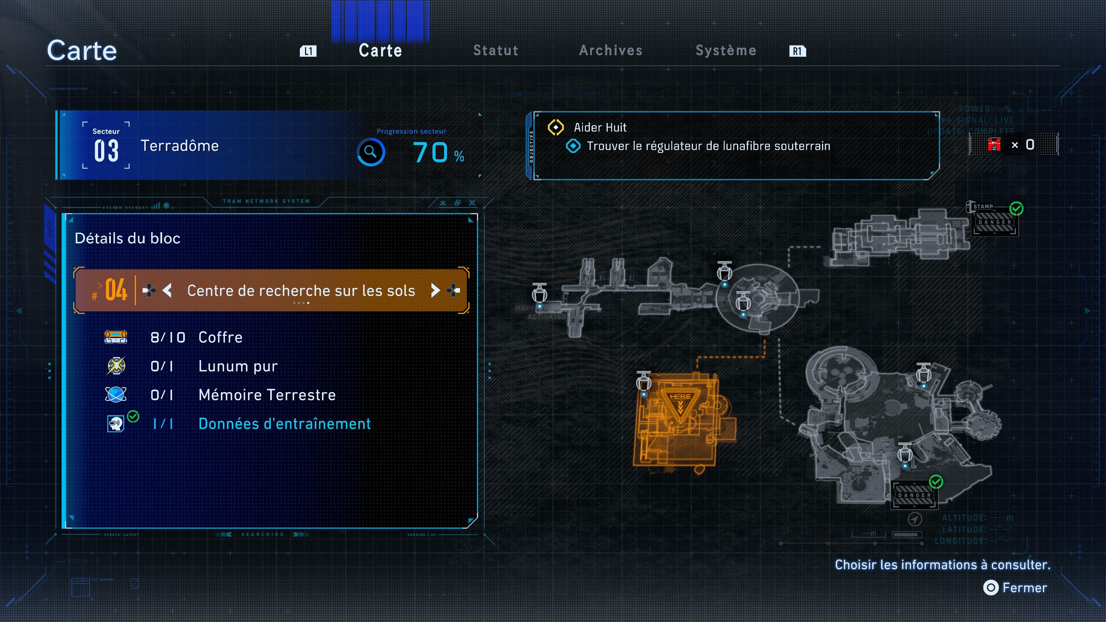 En suivant la campagne principale, vous finirez par arriver dans une zone accueillant notamment des hologrammes d’animaux à observer, dans le Bloc n°1 du secteur nommé « Entrée du Terradôme » (accessible aussi par l’intermédiaire de la Trappe de secours/l’Arrêt « Ascenseur central »). Une petite pièce se trouve en face. Allez dedans pour récupérer des Données d’entrainement, non loin d’un coffre contenant un Module. Celles-ci vous permettront de débloquer l’accès aux Simulations n°5 : « Stop a go », n°6 : « Un médecin ! », et n°7 : « Perforation », au Refuge.