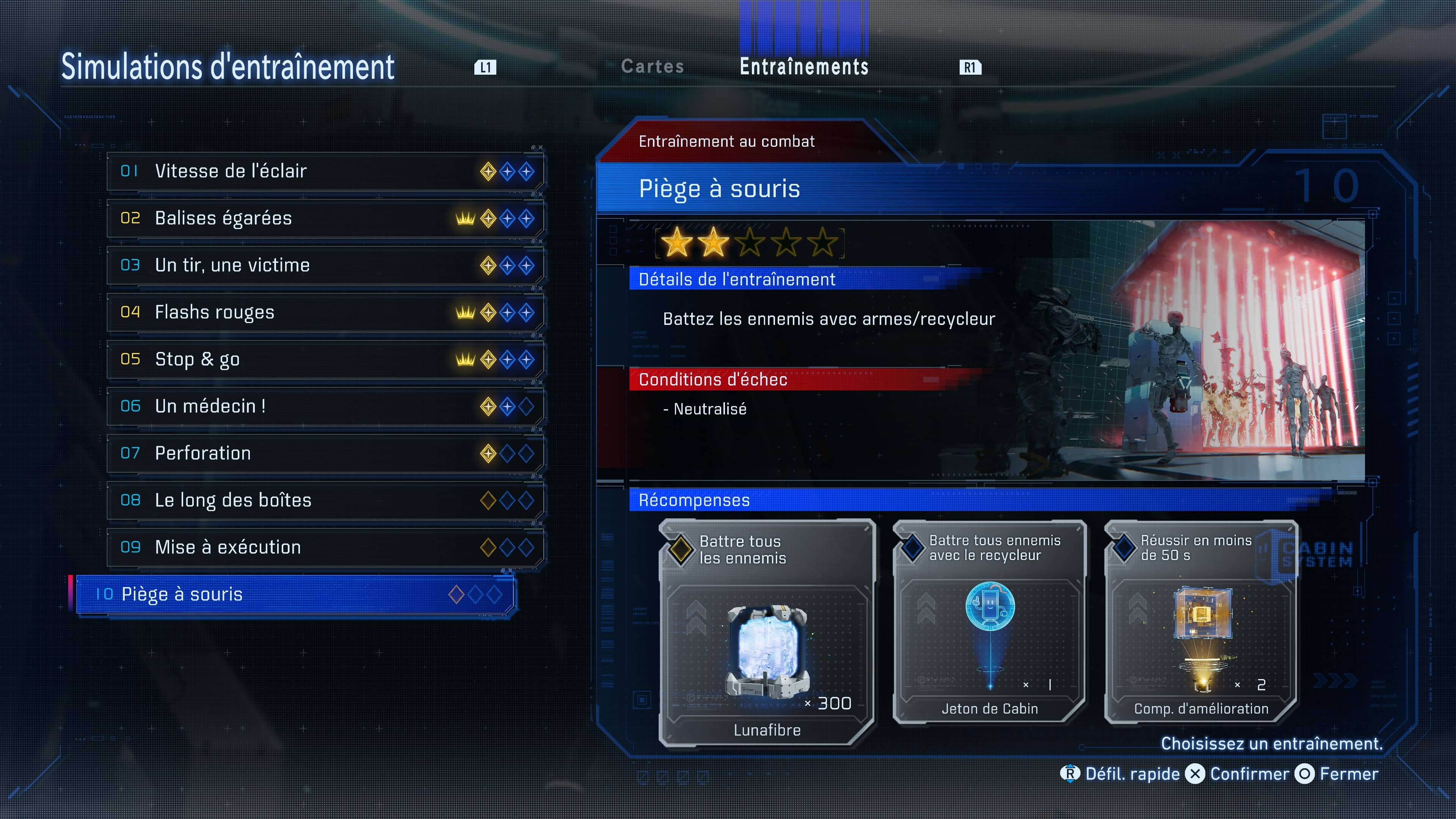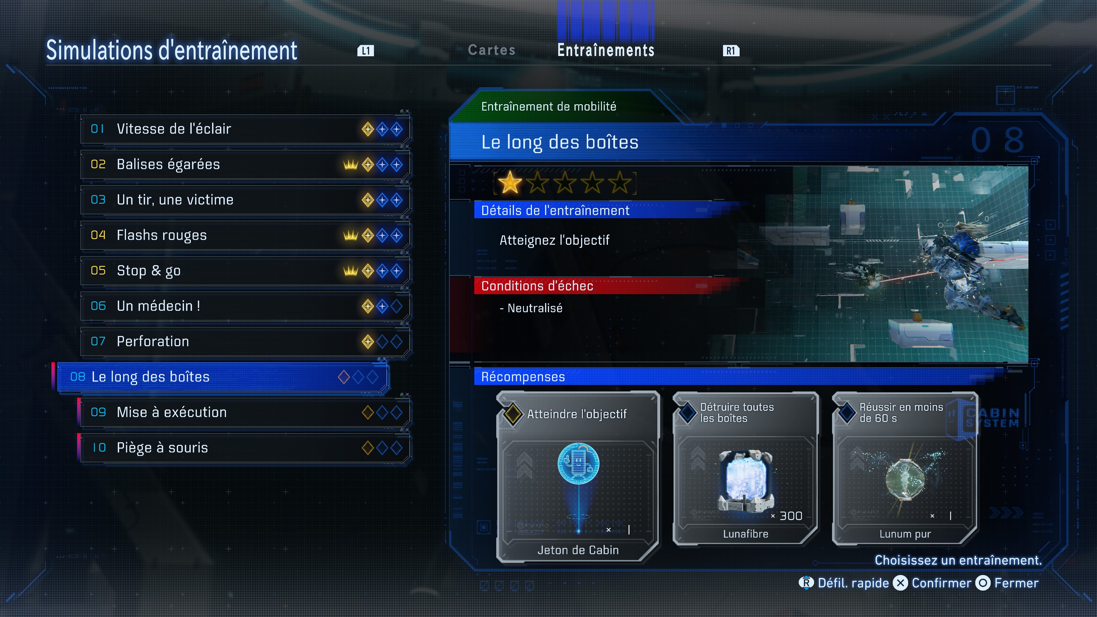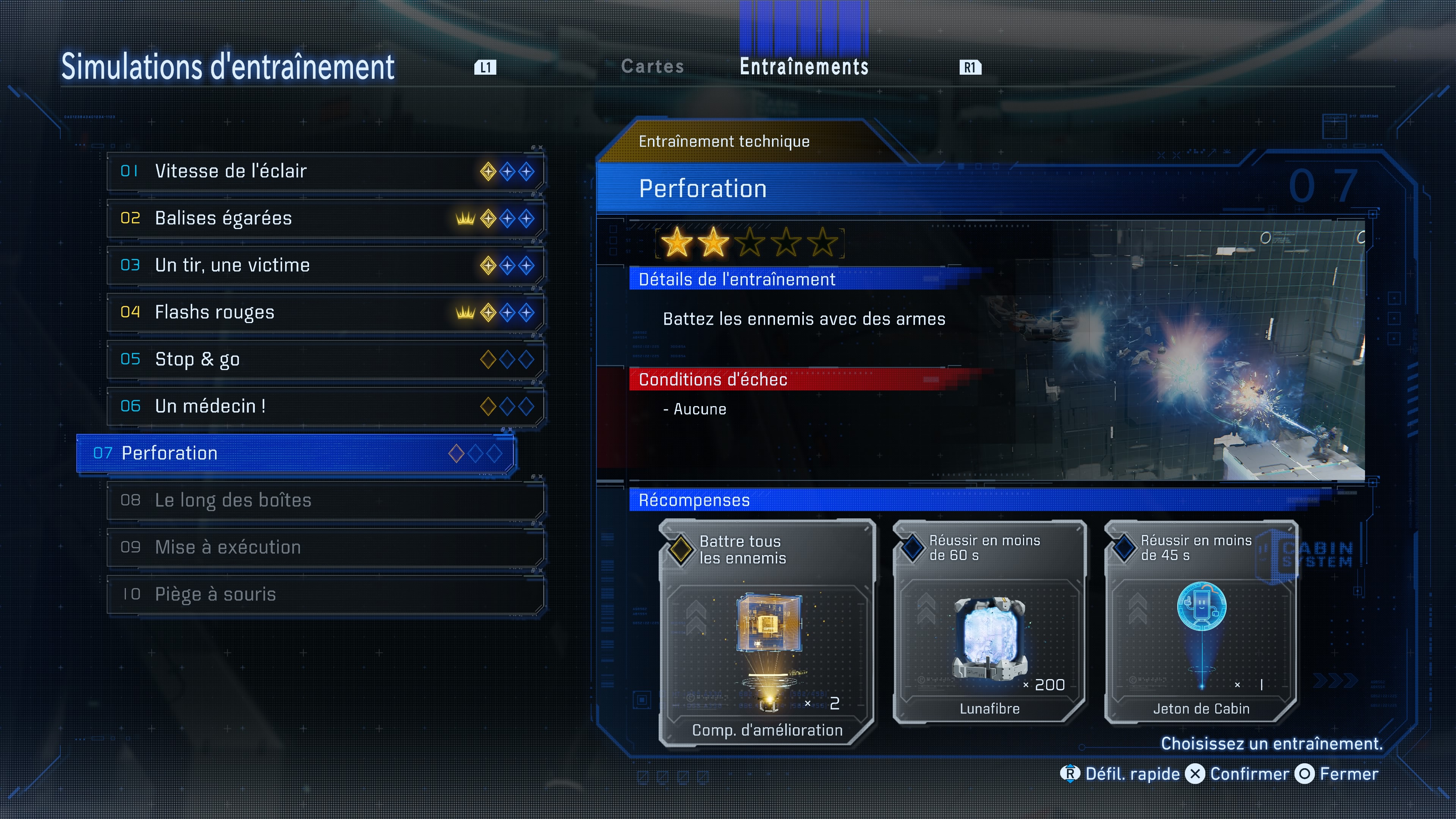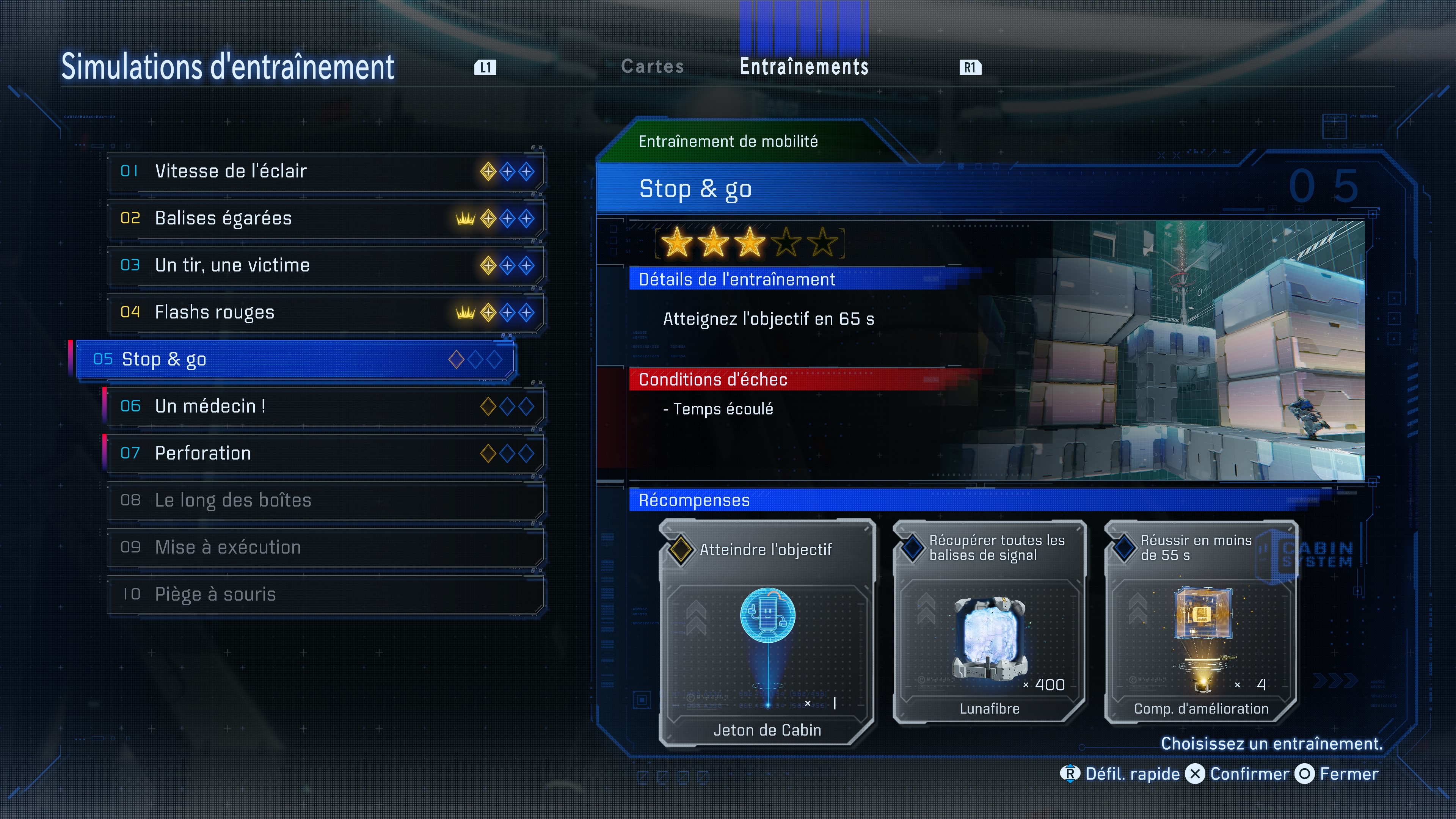 En suivant la campagne principale, vous finirez par arriver dans une zone accueillant notamment des hologrammes d’animaux à observer, dans le Bloc n°1 du secteur nommé « Entrée du Terradôme » (accessible aussi par l’intermédiaire de la Trappe de secours/l’Arrêt « Ascenseur central »). Une petite pièce se trouve en face. Allez dedans pour récupérer des Données d’entrainement, non loin d’un coffre contenant un Module. Celles-ci vous permettront de débloquer l’accès aux Simulations n°5 : « Stop a go », n°6 : « Un médecin ! », et n°7 : « Perforation », au Refuge.