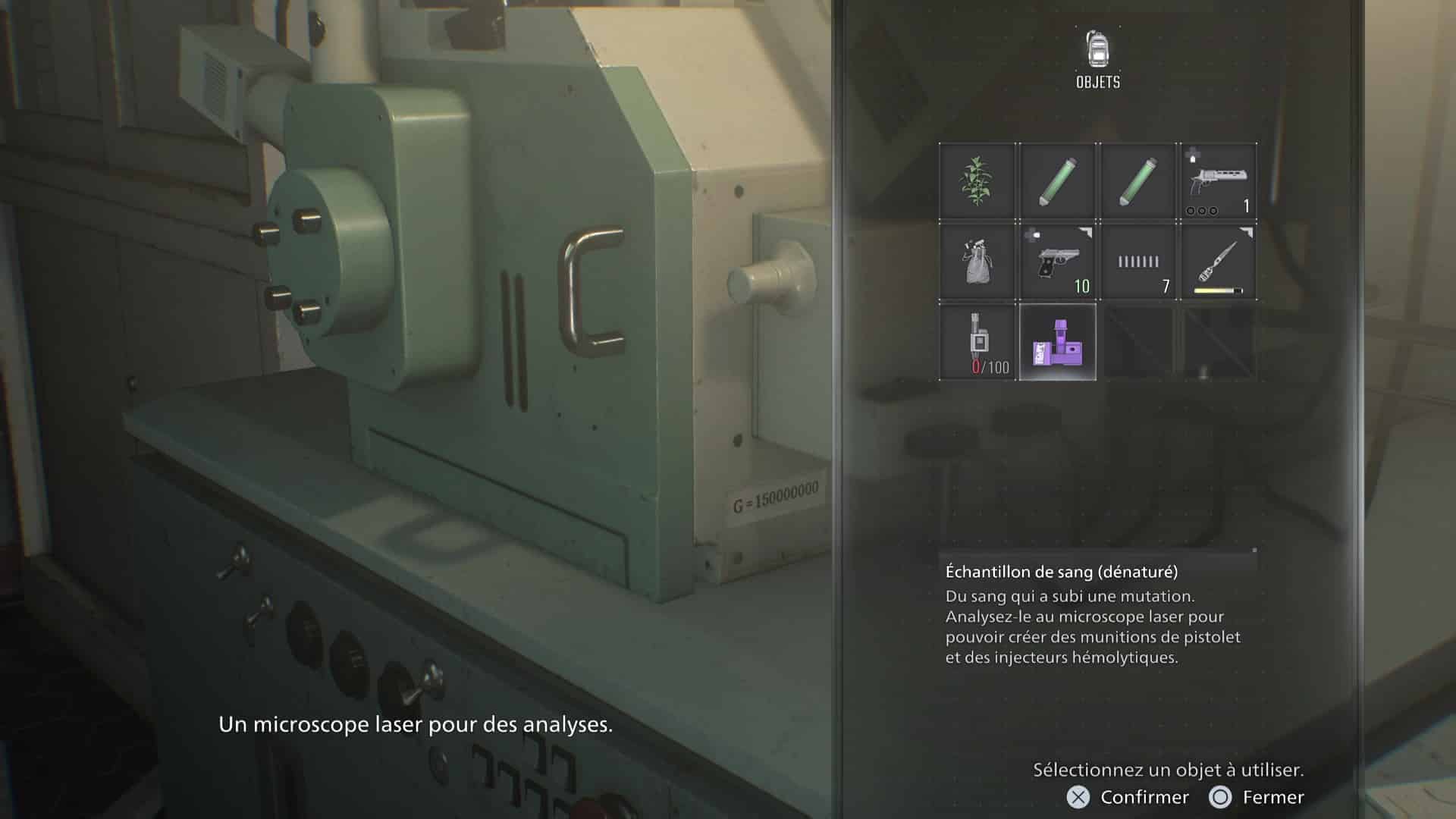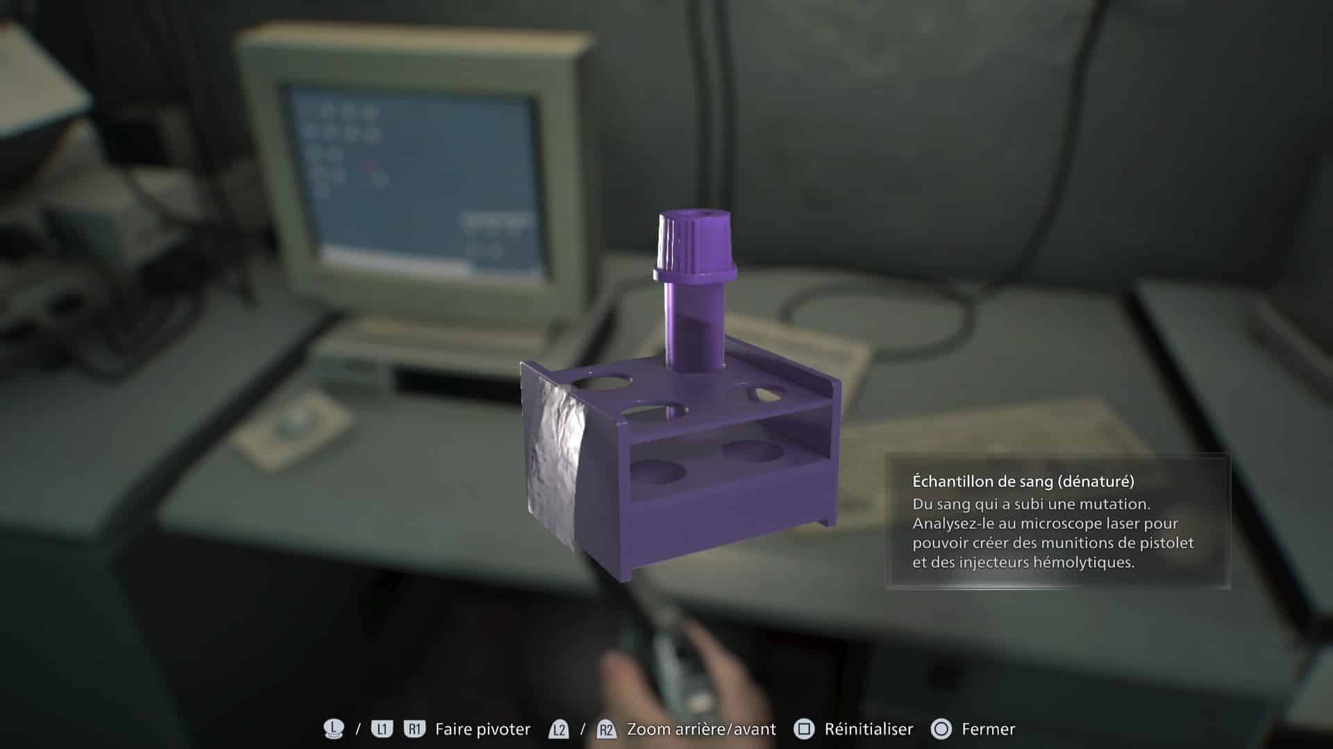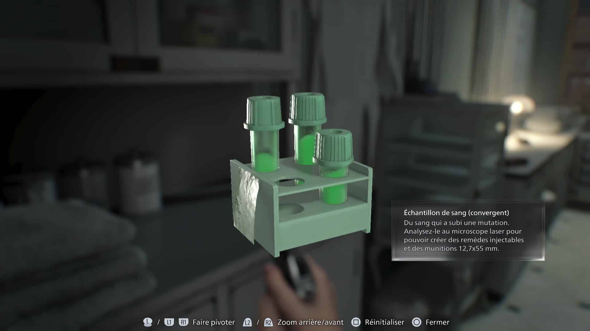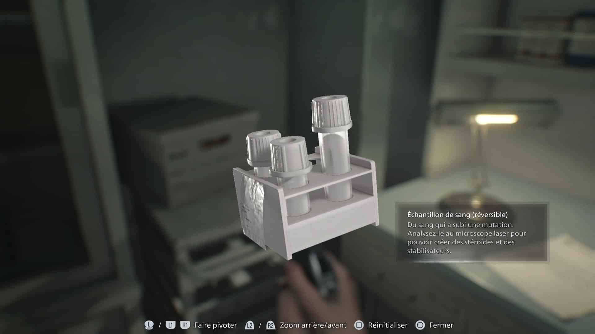 Tous les échantillons de sang, formules de fabrication et injecteurs vides – Resident Evil Requiem